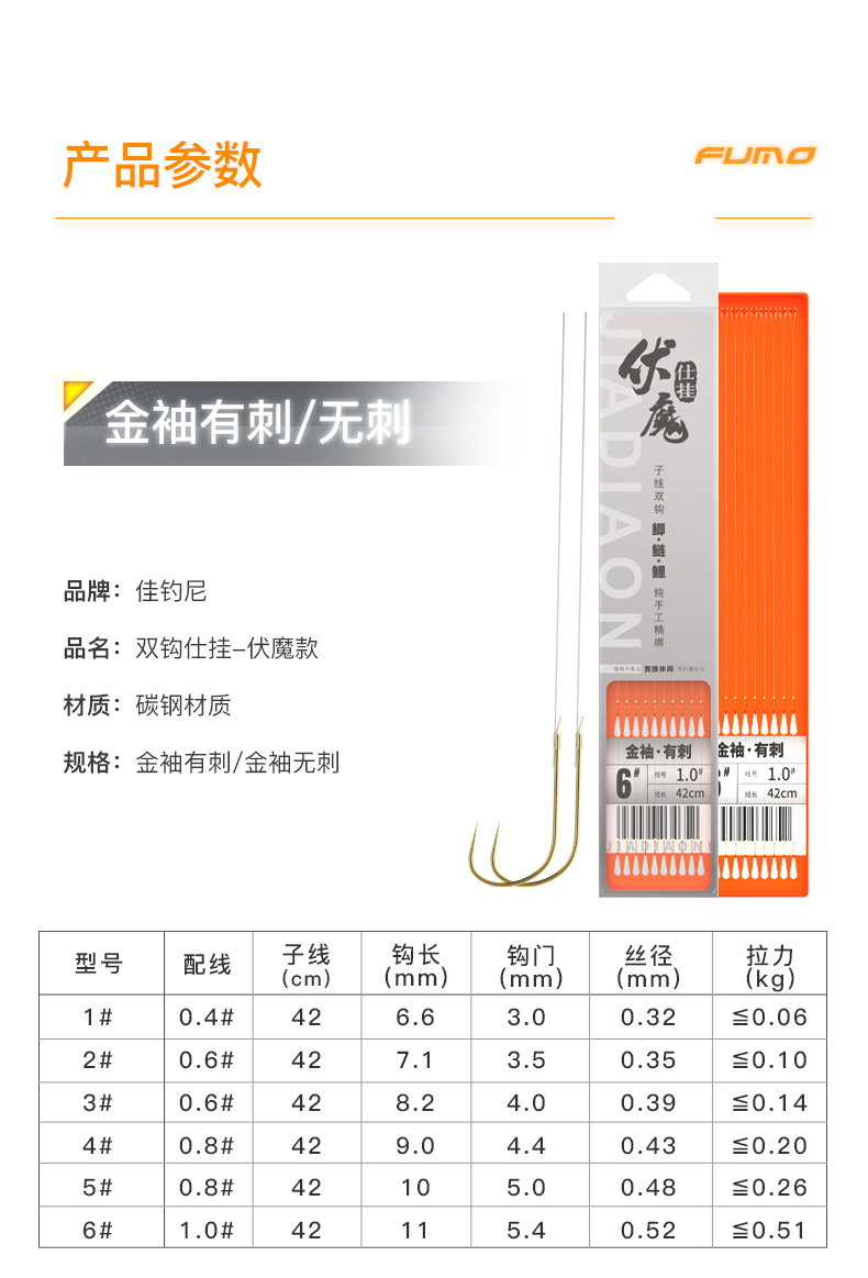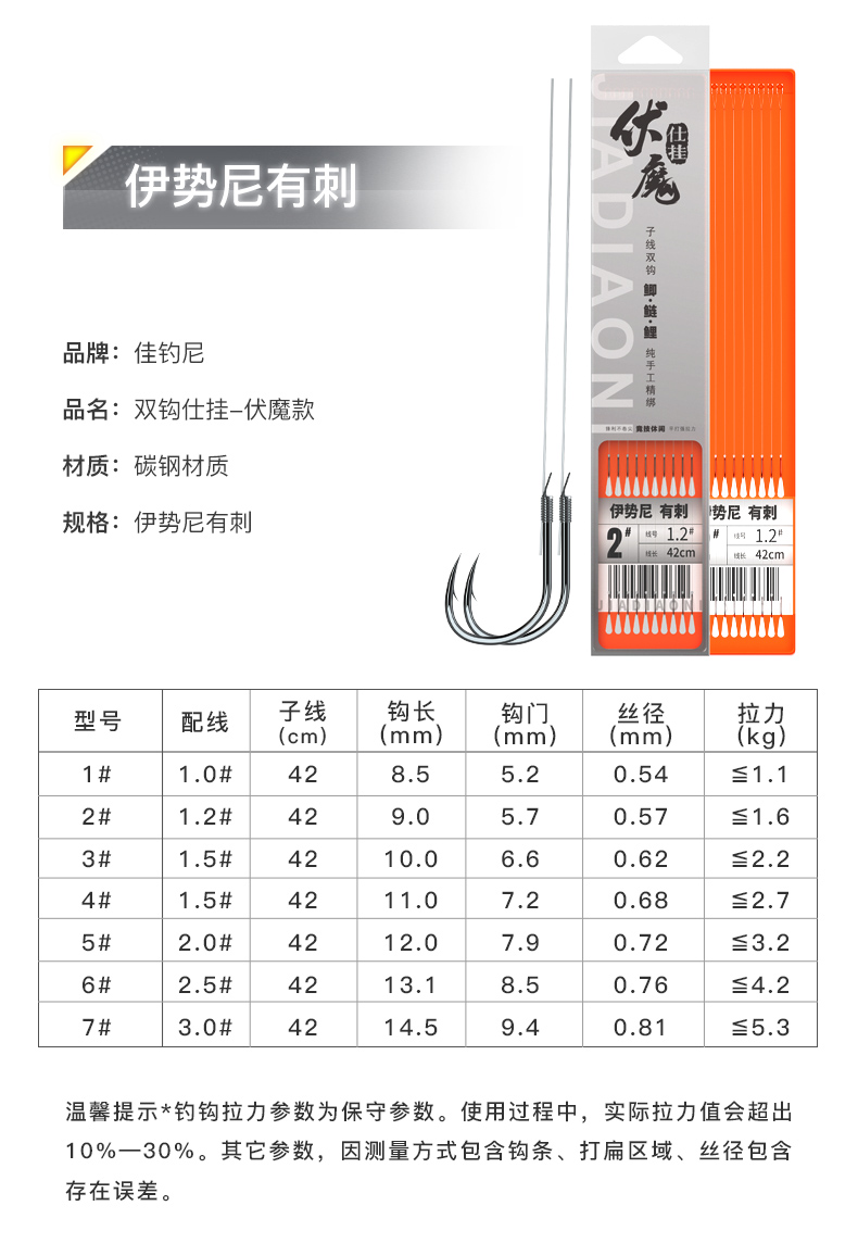 佳钓尼伏魔双钩仕挂金袖伊势尼成品套装鲫鱼垂钓耐磨子线双钩