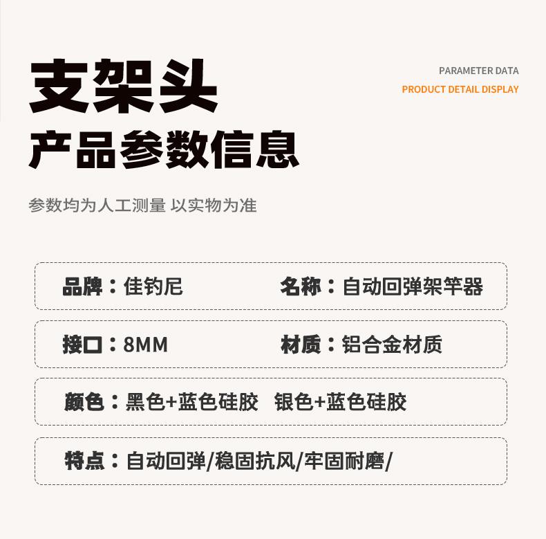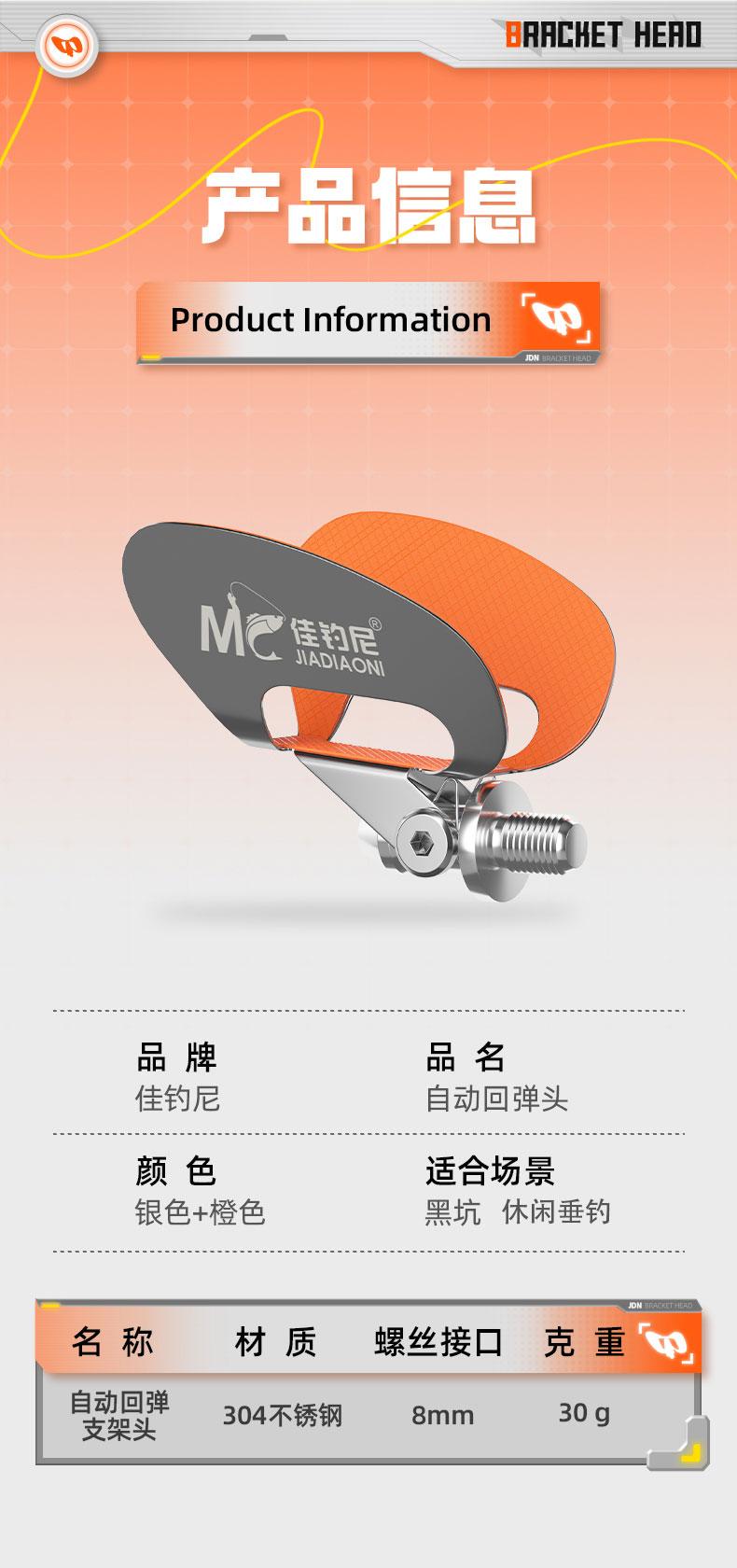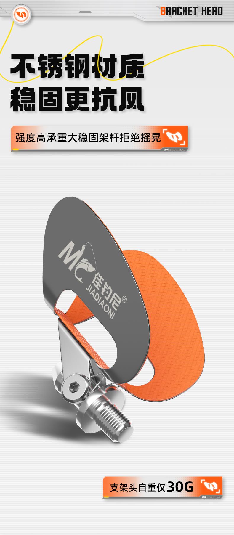佳钓尼不锈钢自动回弹支架头通用加长耐用耐磨蝴蝶稳固支架头垂钓