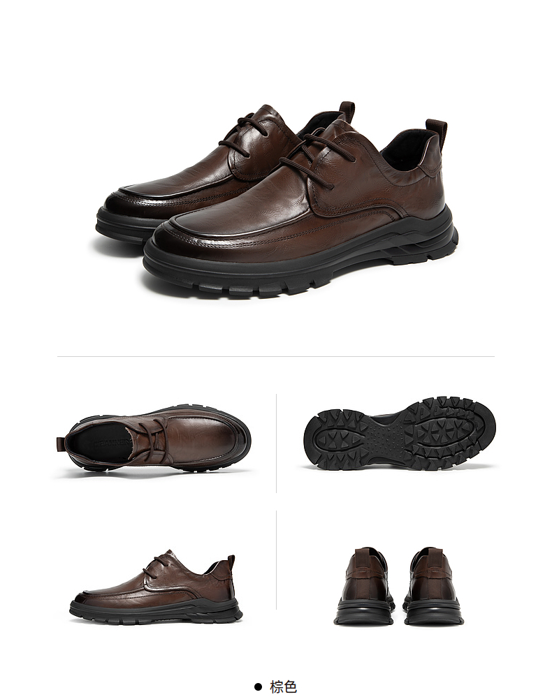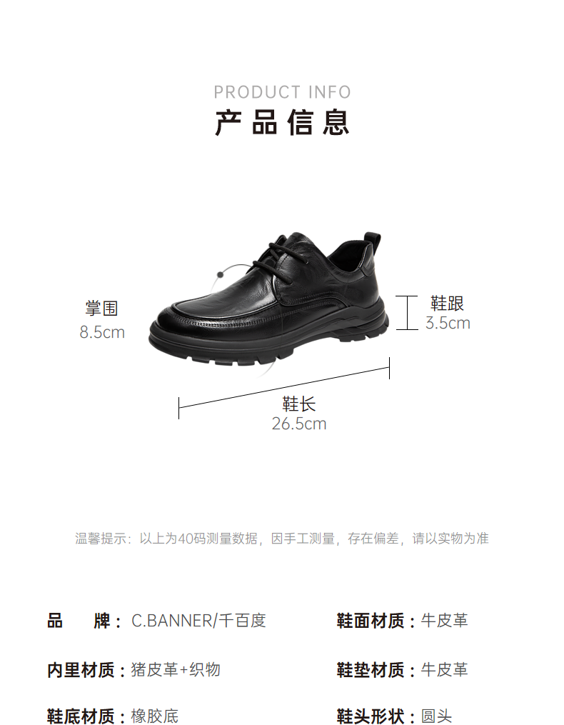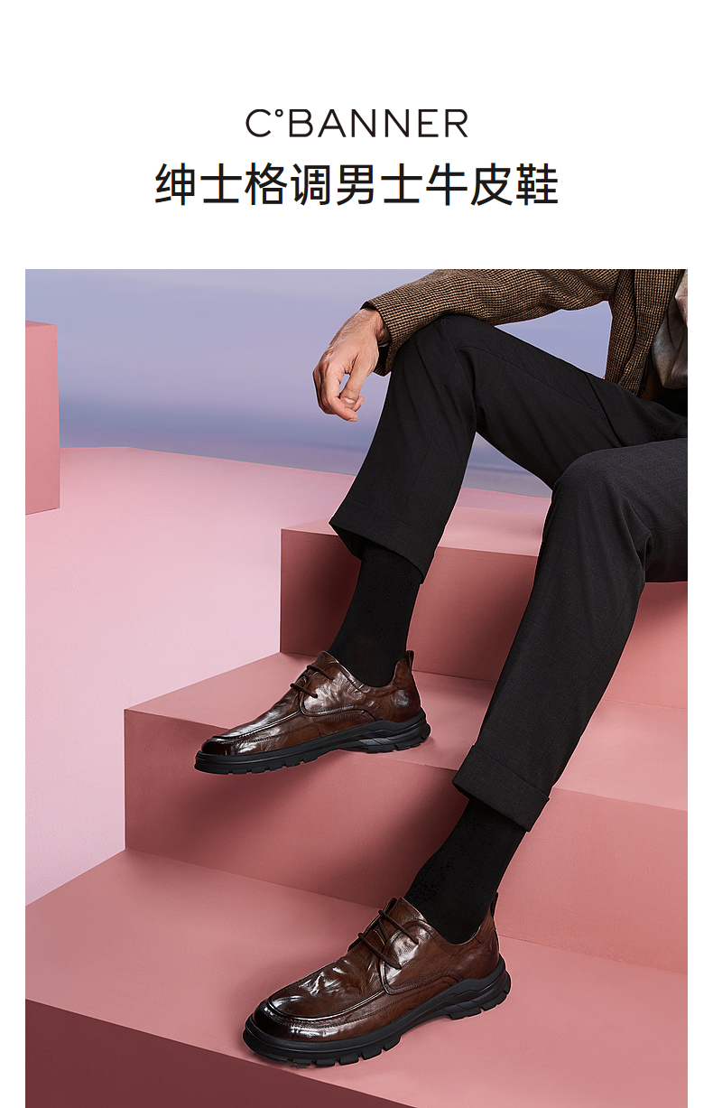 千百度男鞋英伦风男士商务休闲系带厚底增高真皮皮鞋一脚蹬正装A24423781
