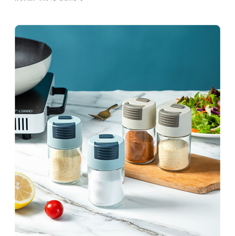 抖音爆款装盐罐子定量调料瓶按压撒盐神器玻璃盐瓶家用厨房调味罐国庆清明出游