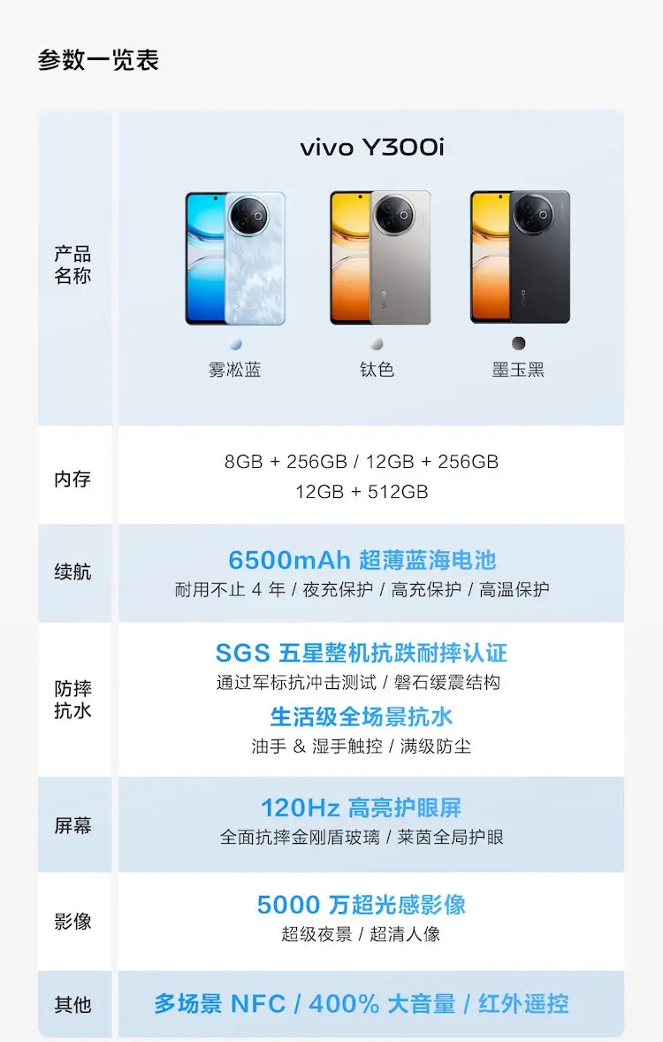 vivo Y300i 全网通5G版 雾凇蓝 12GB+256GB