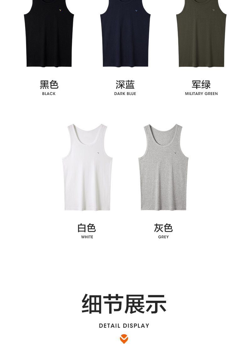 柒牌男士背心男款纯棉夏季跨栏运动内穿吊带内衣男式全棉打底汗衫 124F70060