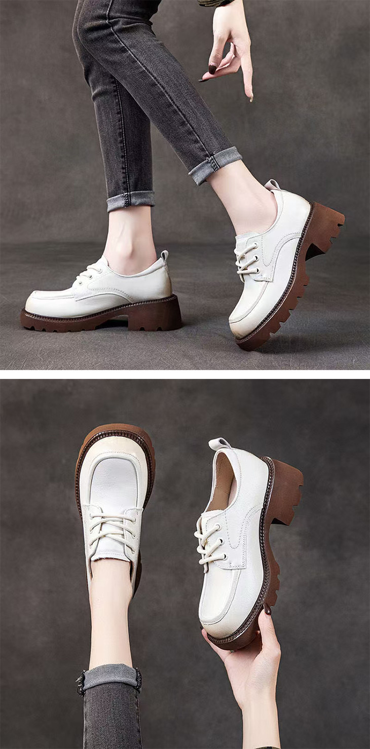 【实付满399送保温杯】【轻便系带厚底乐福鞋】复古休闲女士皮鞋 通勤百搭单鞋
