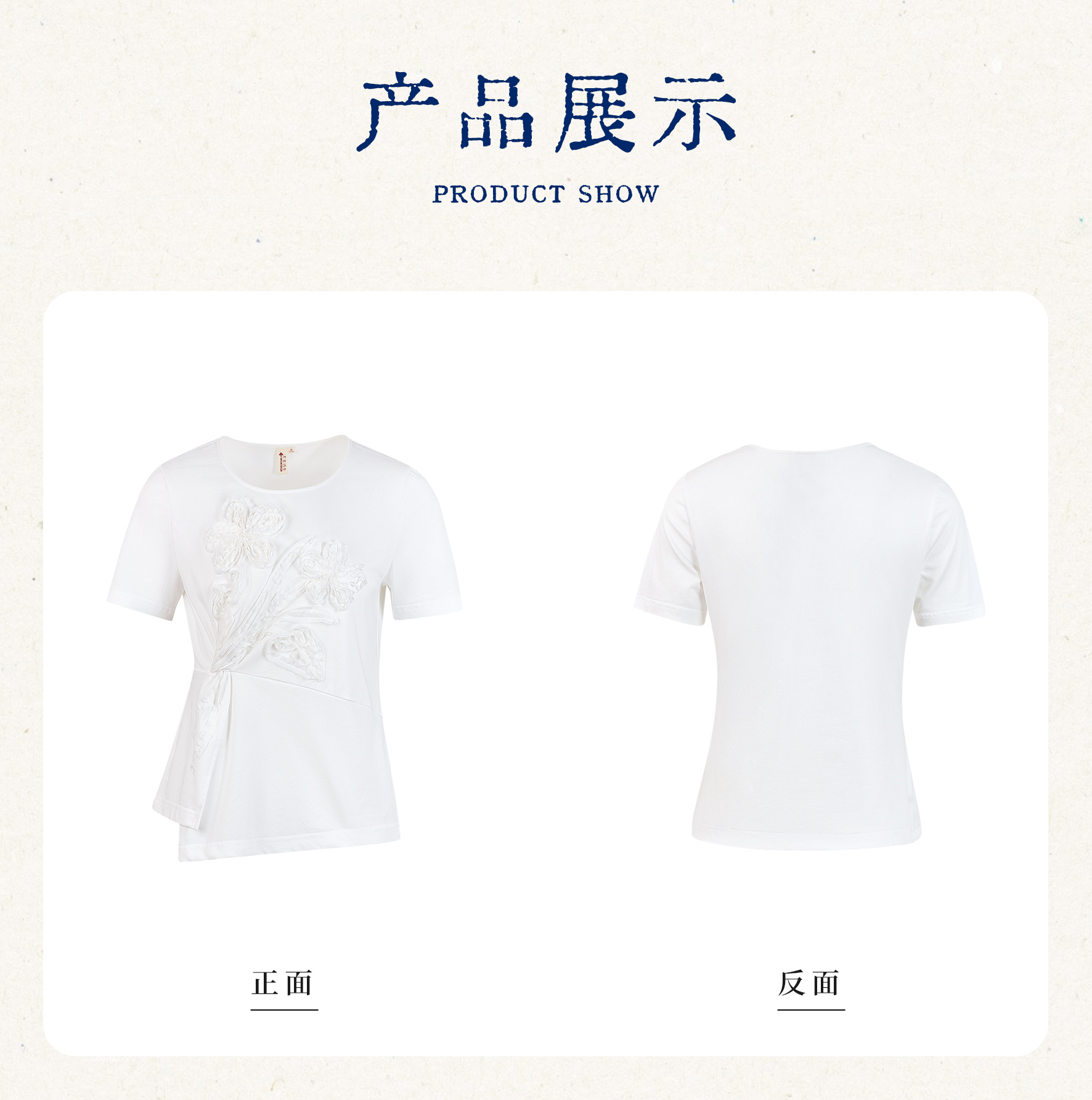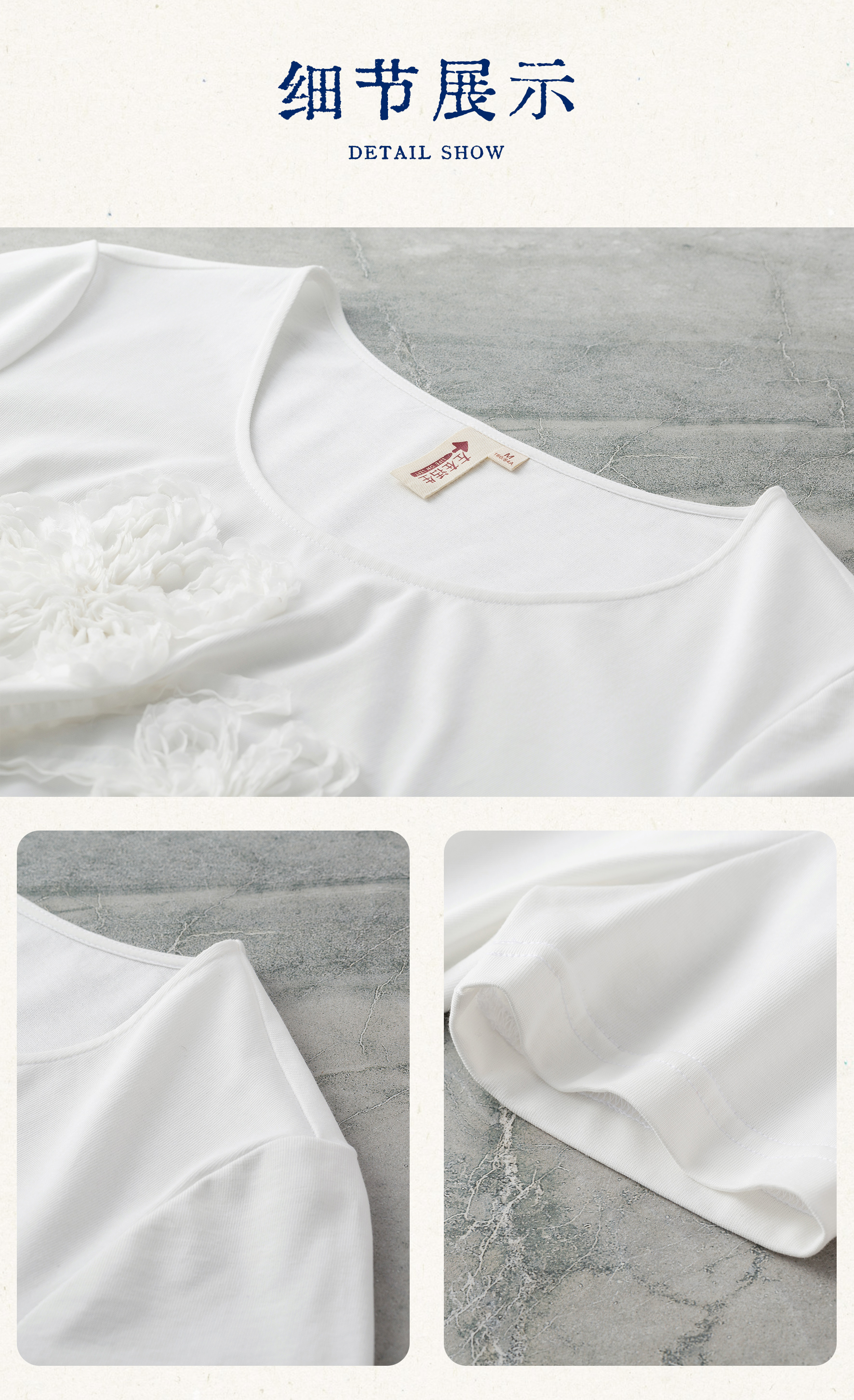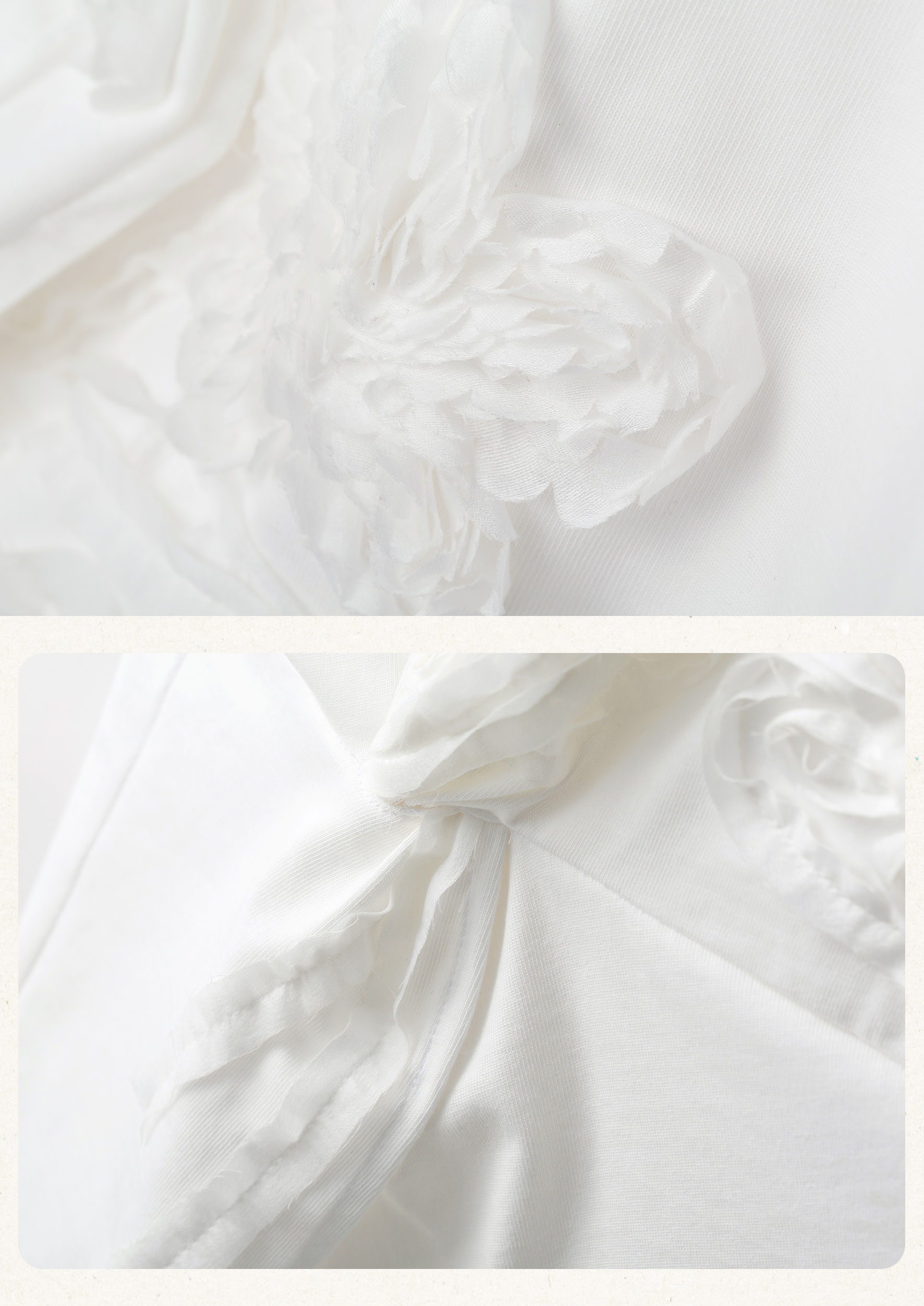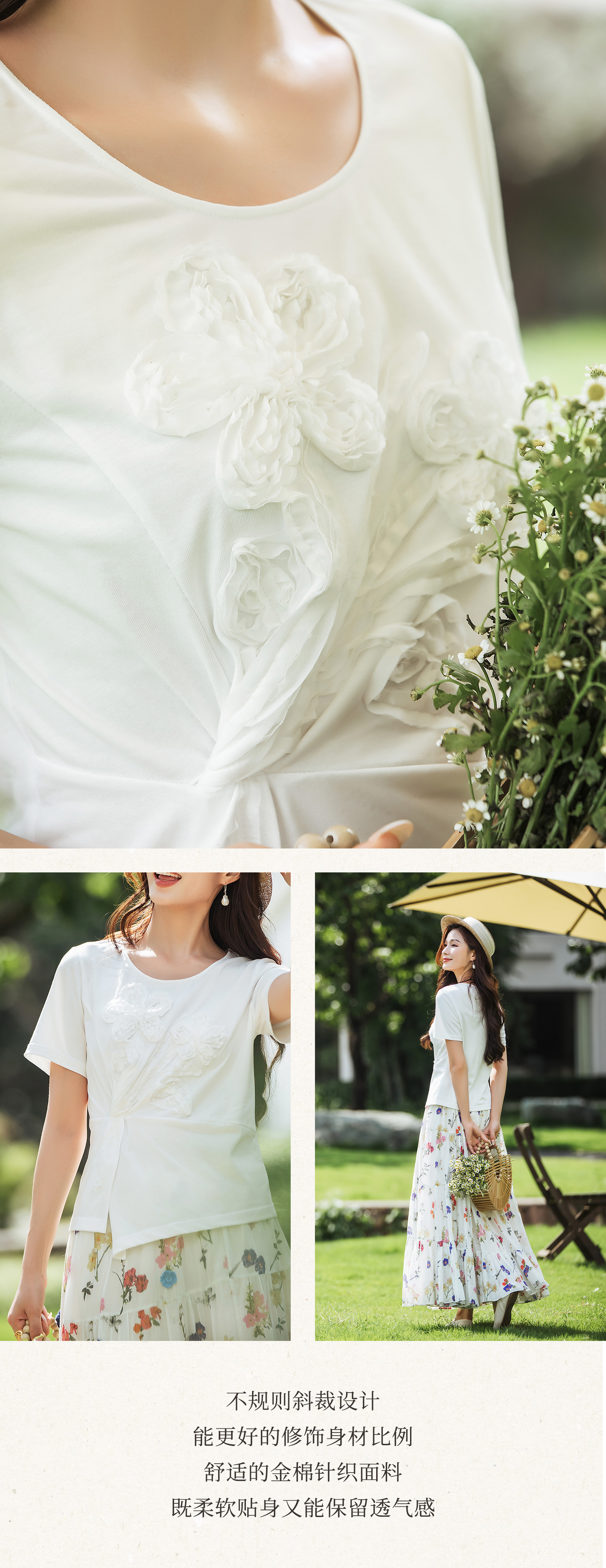 【林栖设计小店】(现货)【林栖推荐】重工立体花朵显瘦上衣100%纯棉白色T恤N1953175