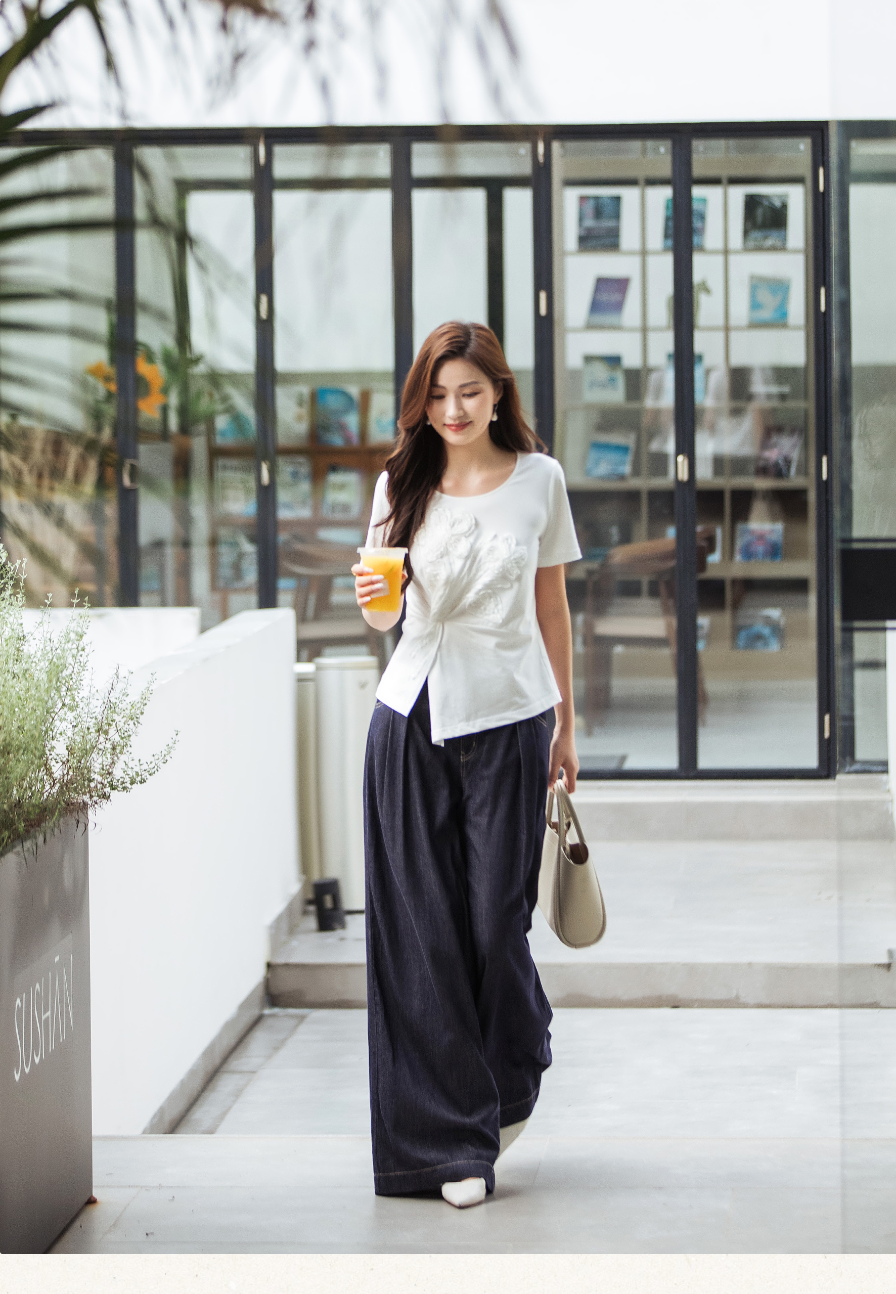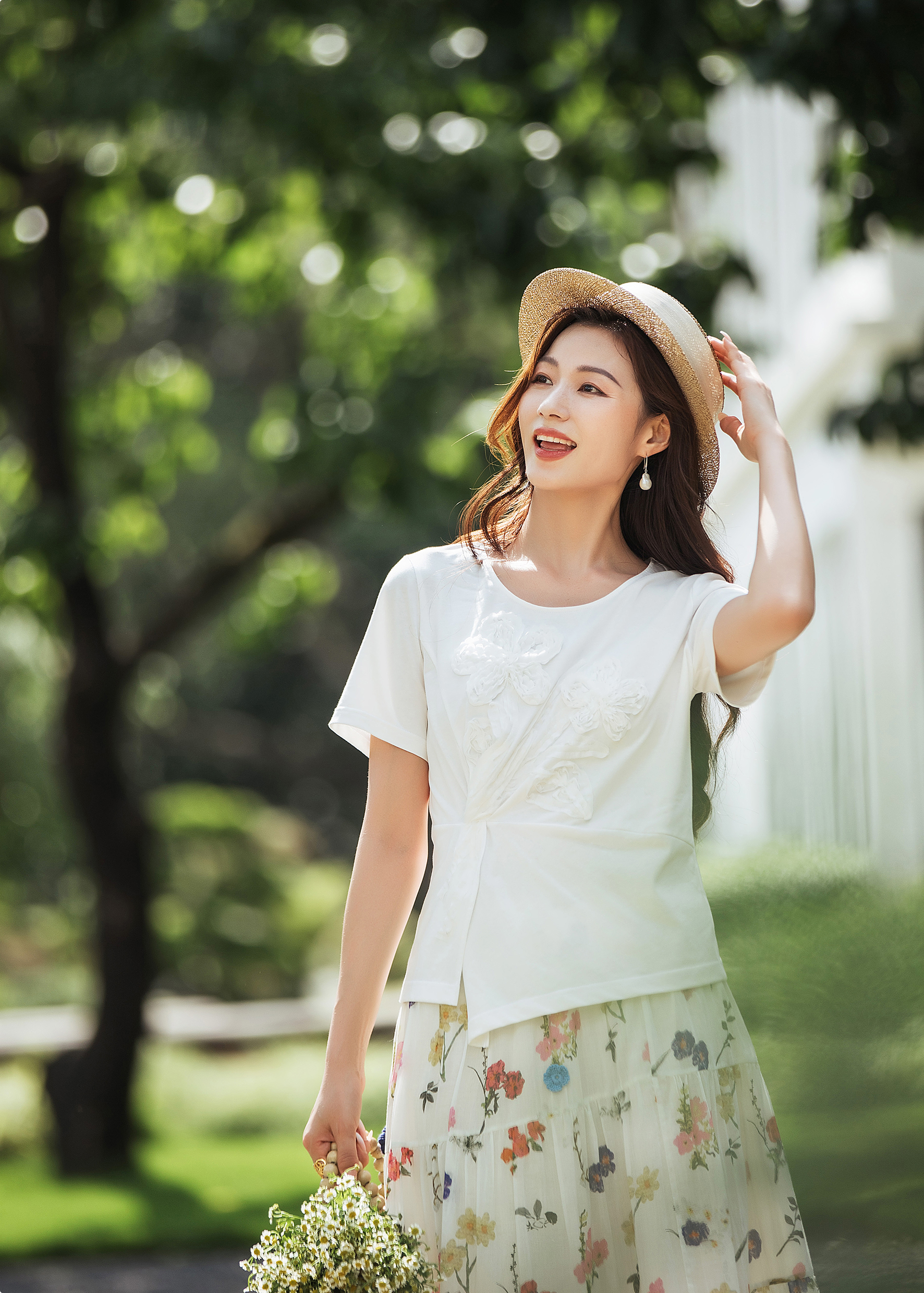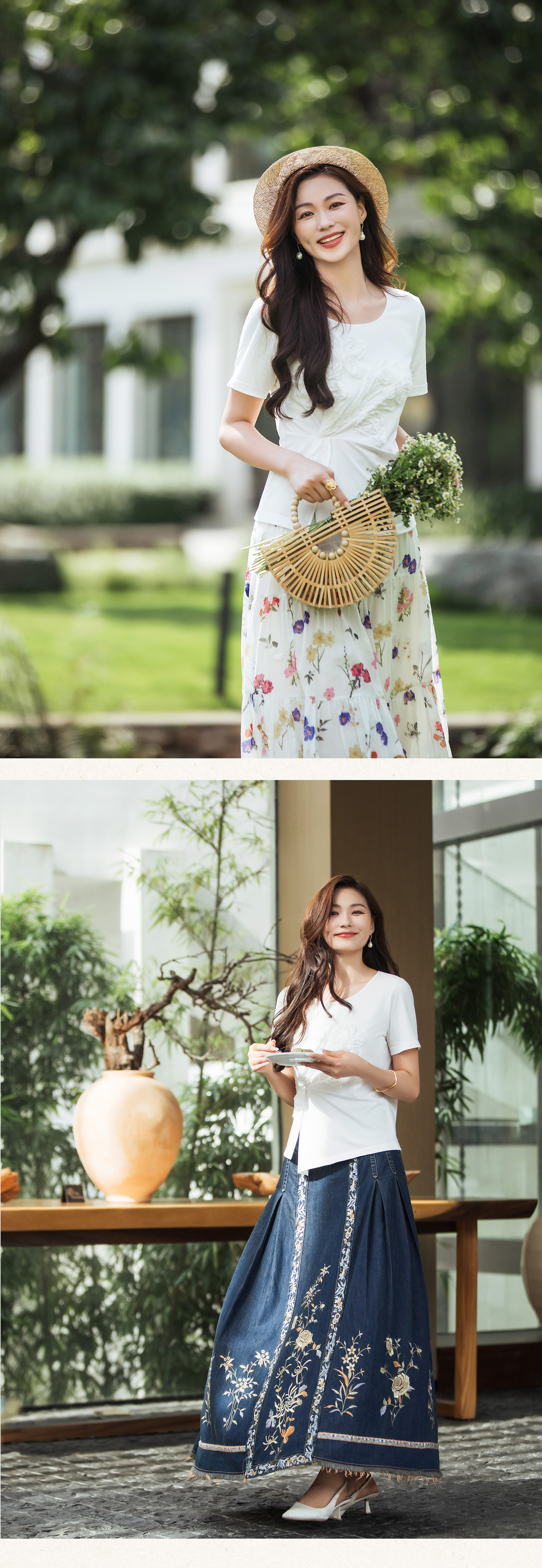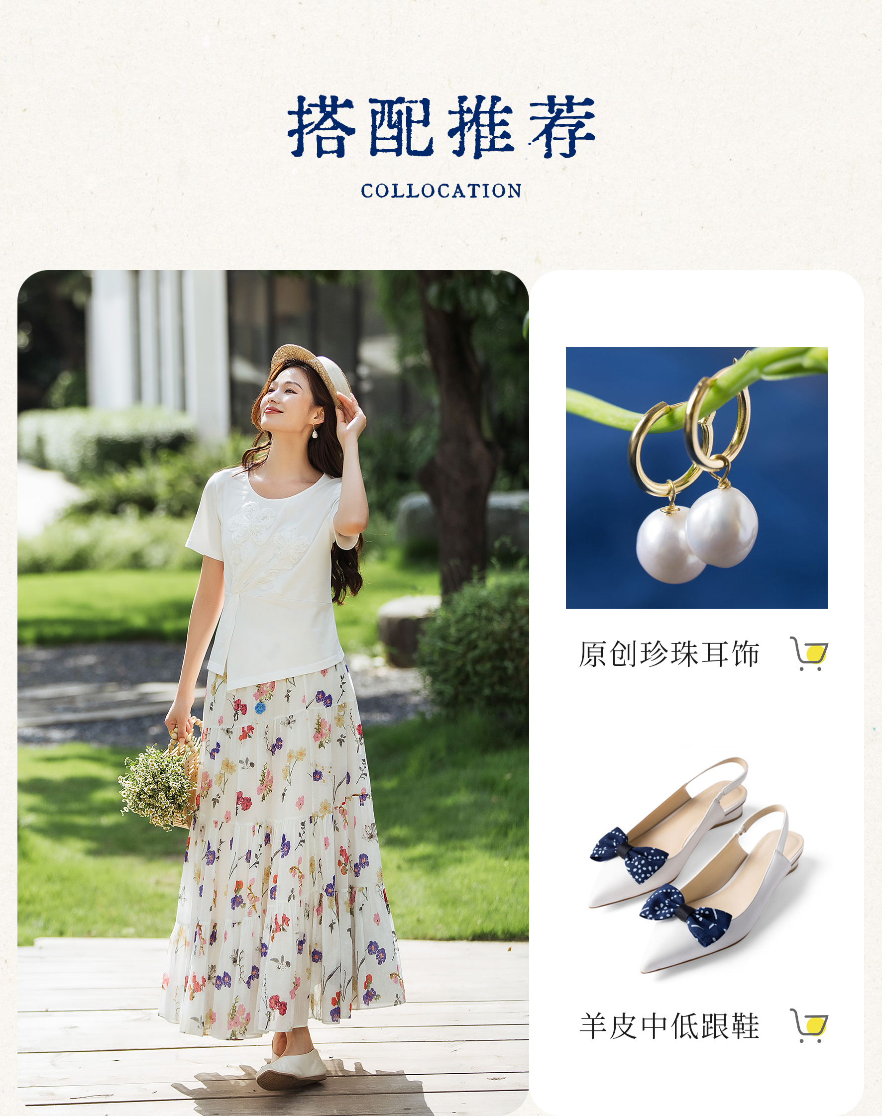 【林栖设计小店】(现货)【林栖推荐】重工立体花朵显瘦上衣100%纯棉白色T恤N1953175