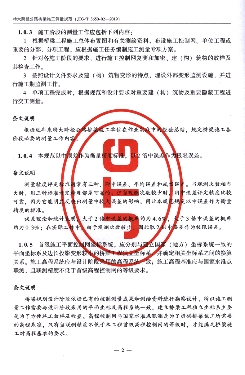 特大跨径公路桥梁施工测量规范(JTG/T 3650-02—2019)