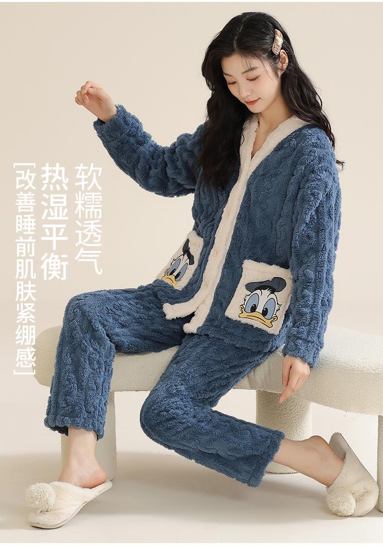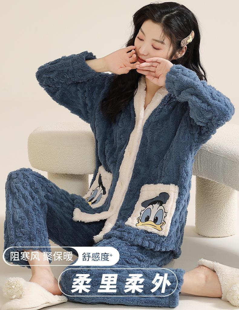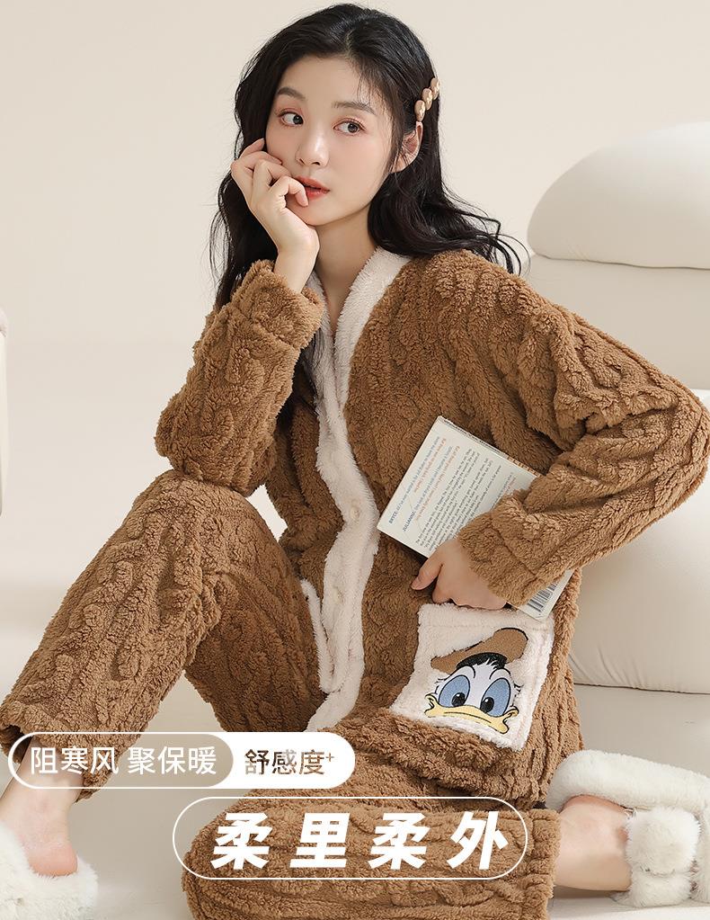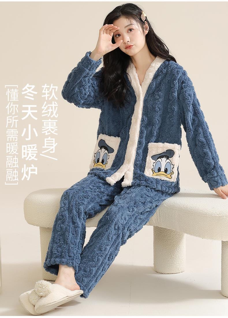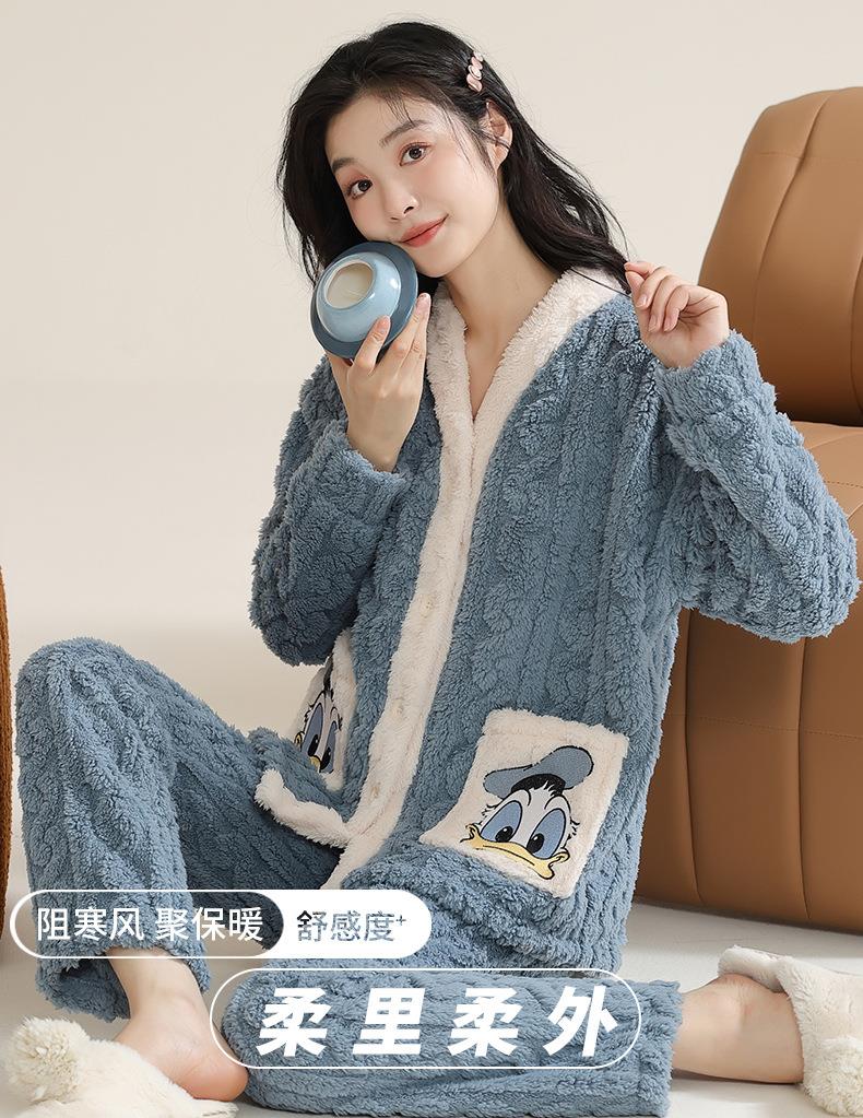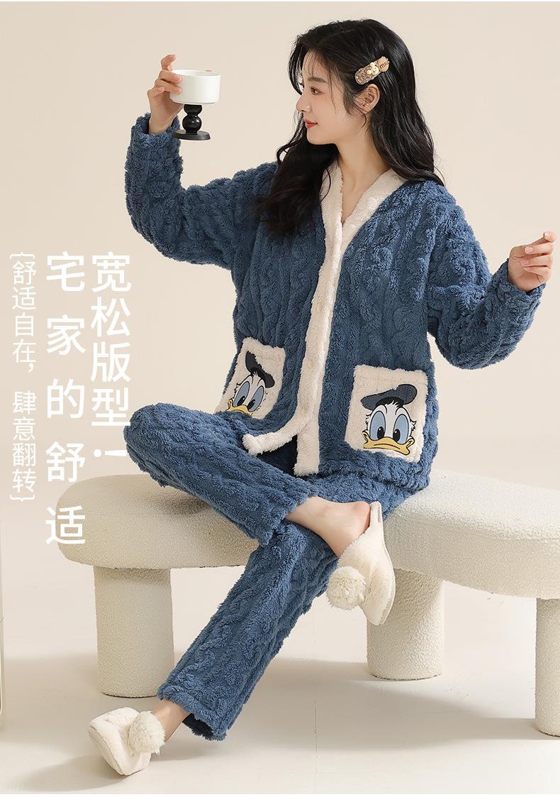 冬季法兰绒睡衣女长袖加绒加厚套装学生甜美可爱卡通珊瑚绒家居服