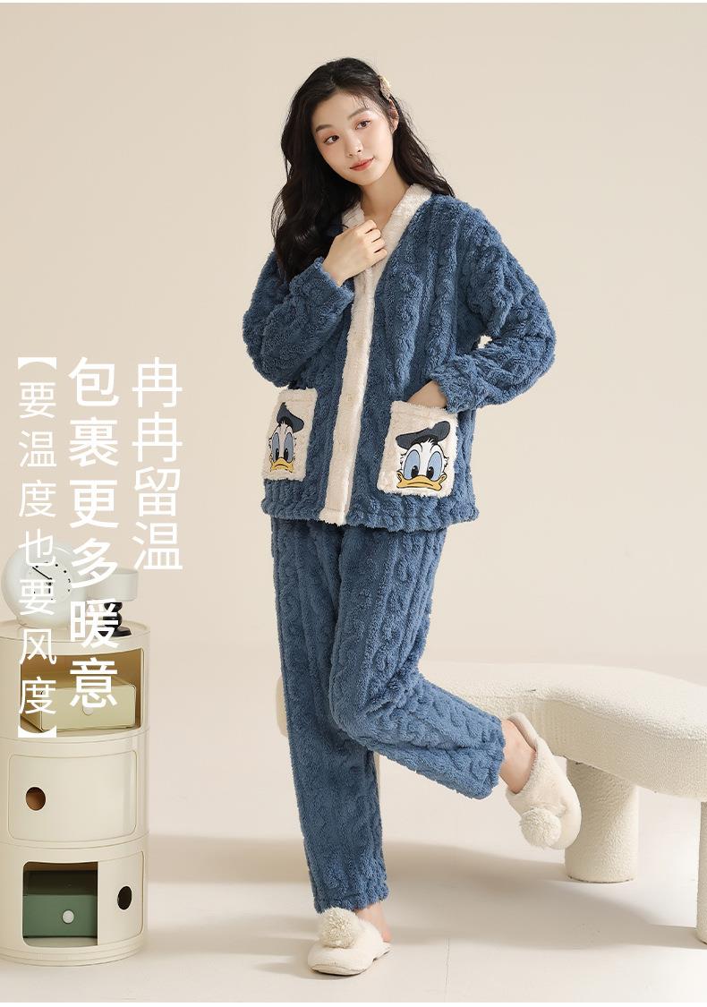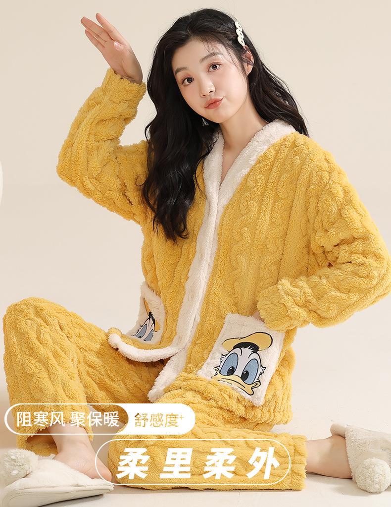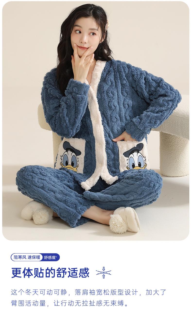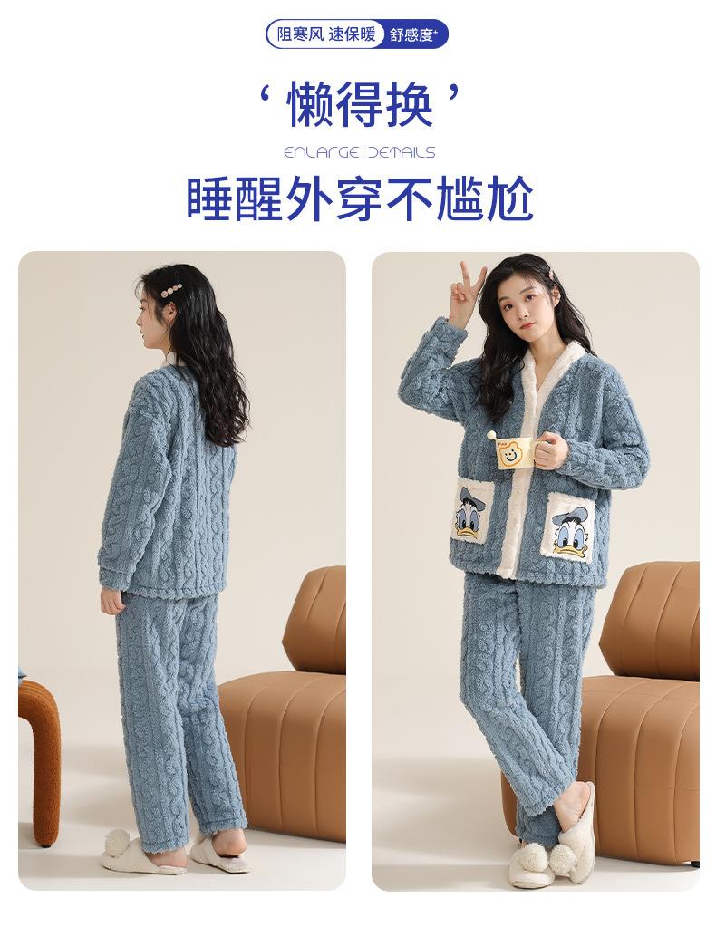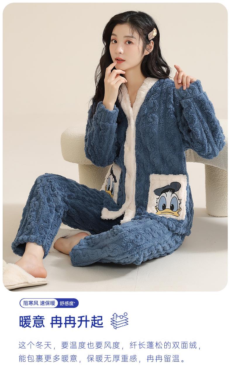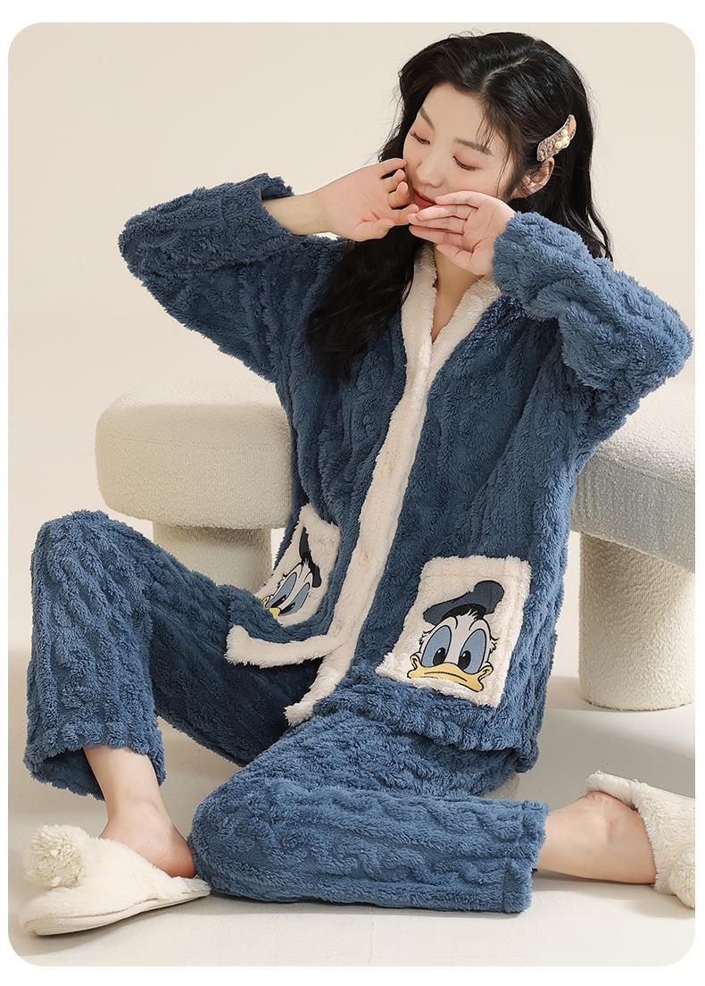 冬季法兰绒睡衣女长袖加绒加厚套装学生甜美可爱卡通珊瑚绒家居服