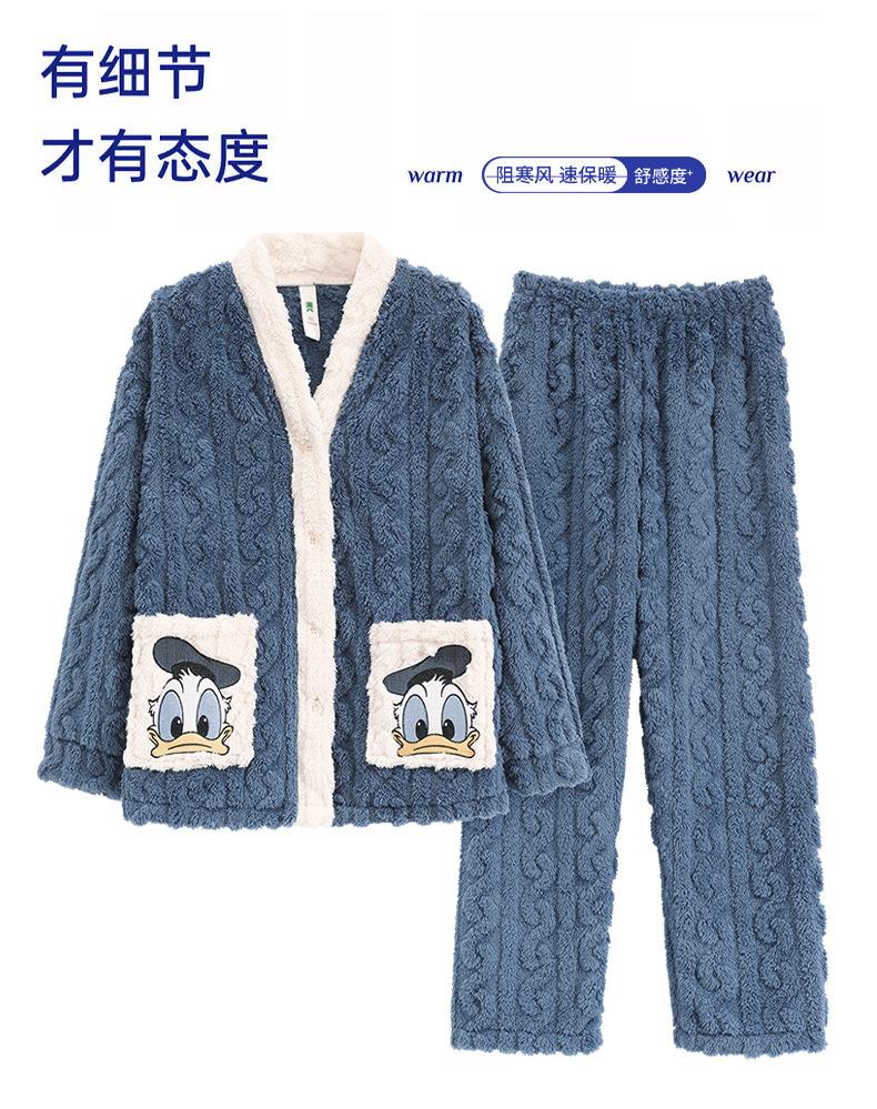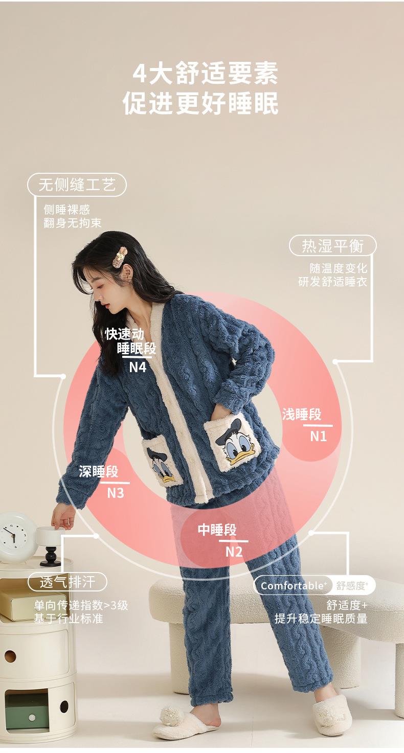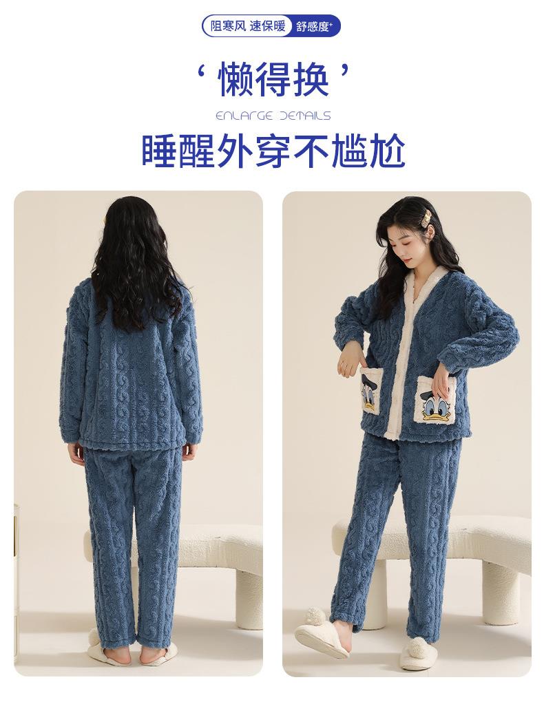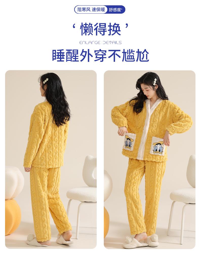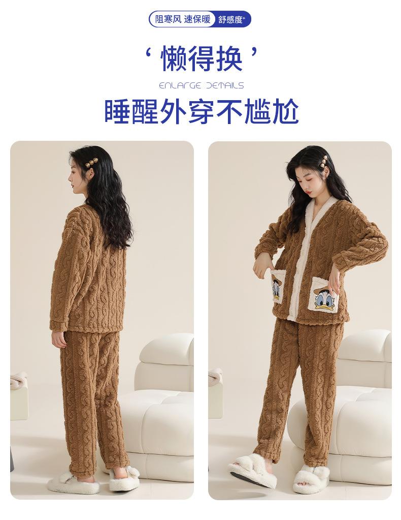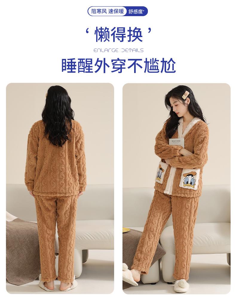冬季法兰绒睡衣女长袖加绒加厚套装学生甜美可爱卡通珊瑚绒家居服