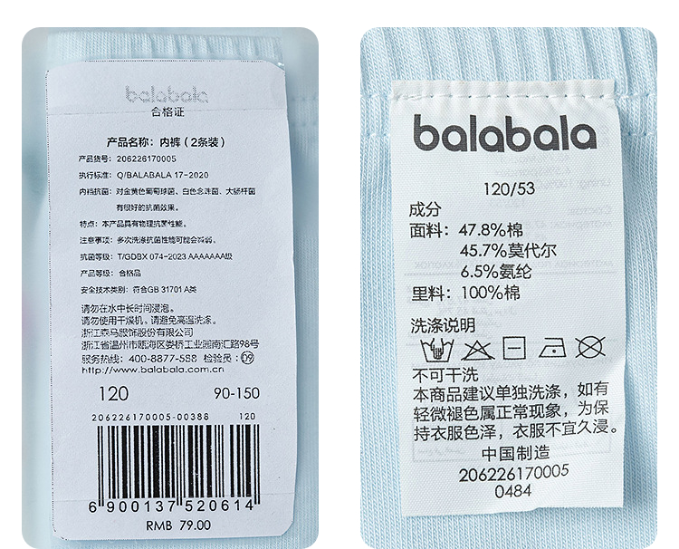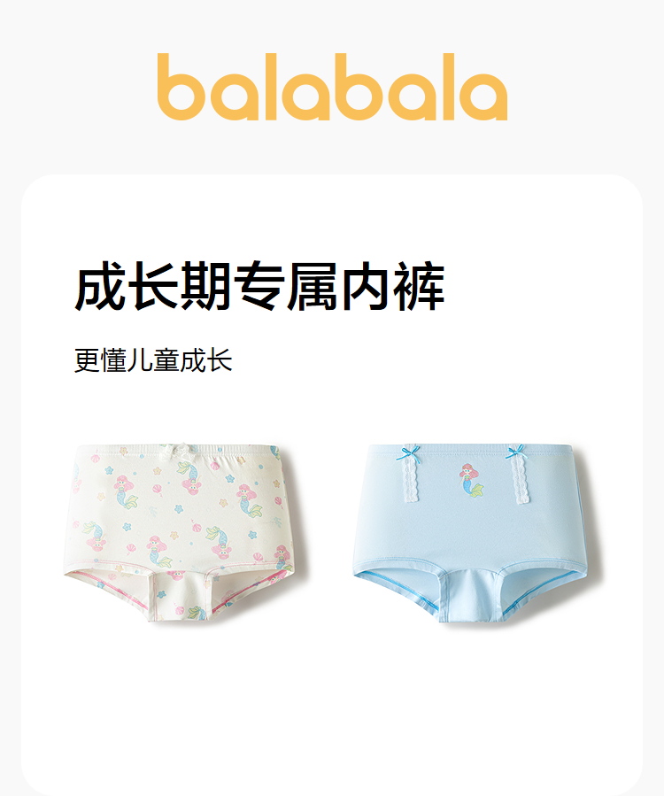 【商场同款】巴拉巴拉儿童内裤平角女童四角短裤莫代尔抗菌两条装