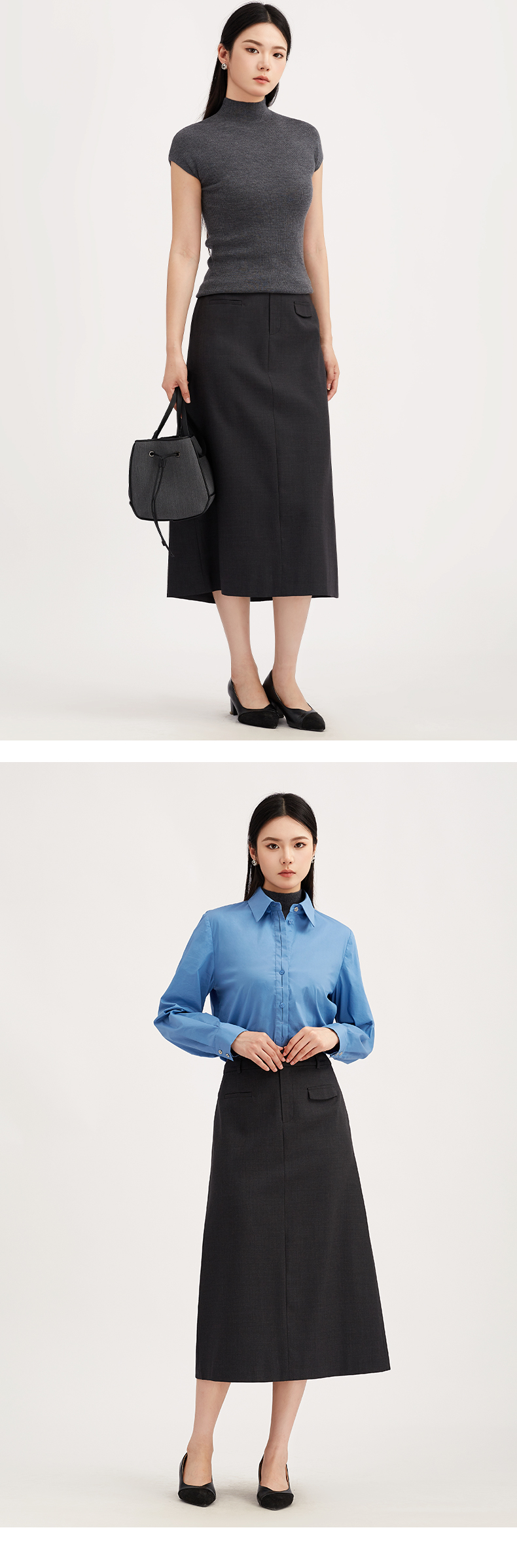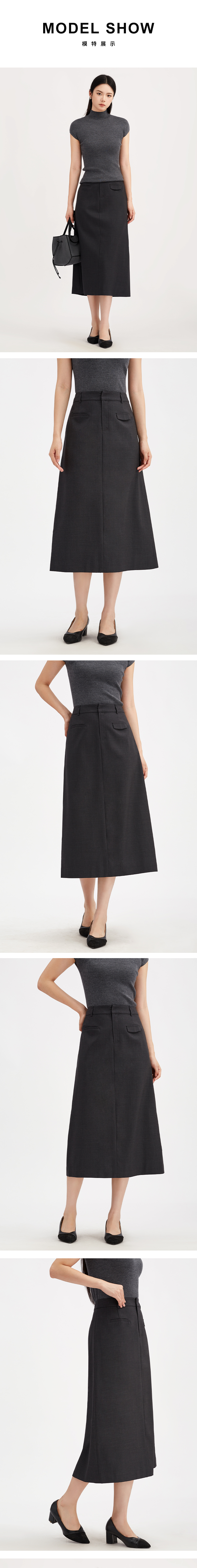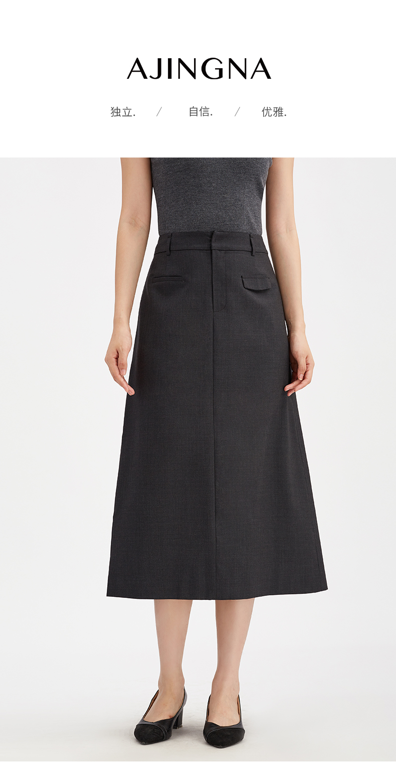 【商场同款】阿菁娜秋季新款A字显瘦羊毛裙 澳洲高支美丽诺中长款西装裙 法式优雅通勤半身裙A30Q113006