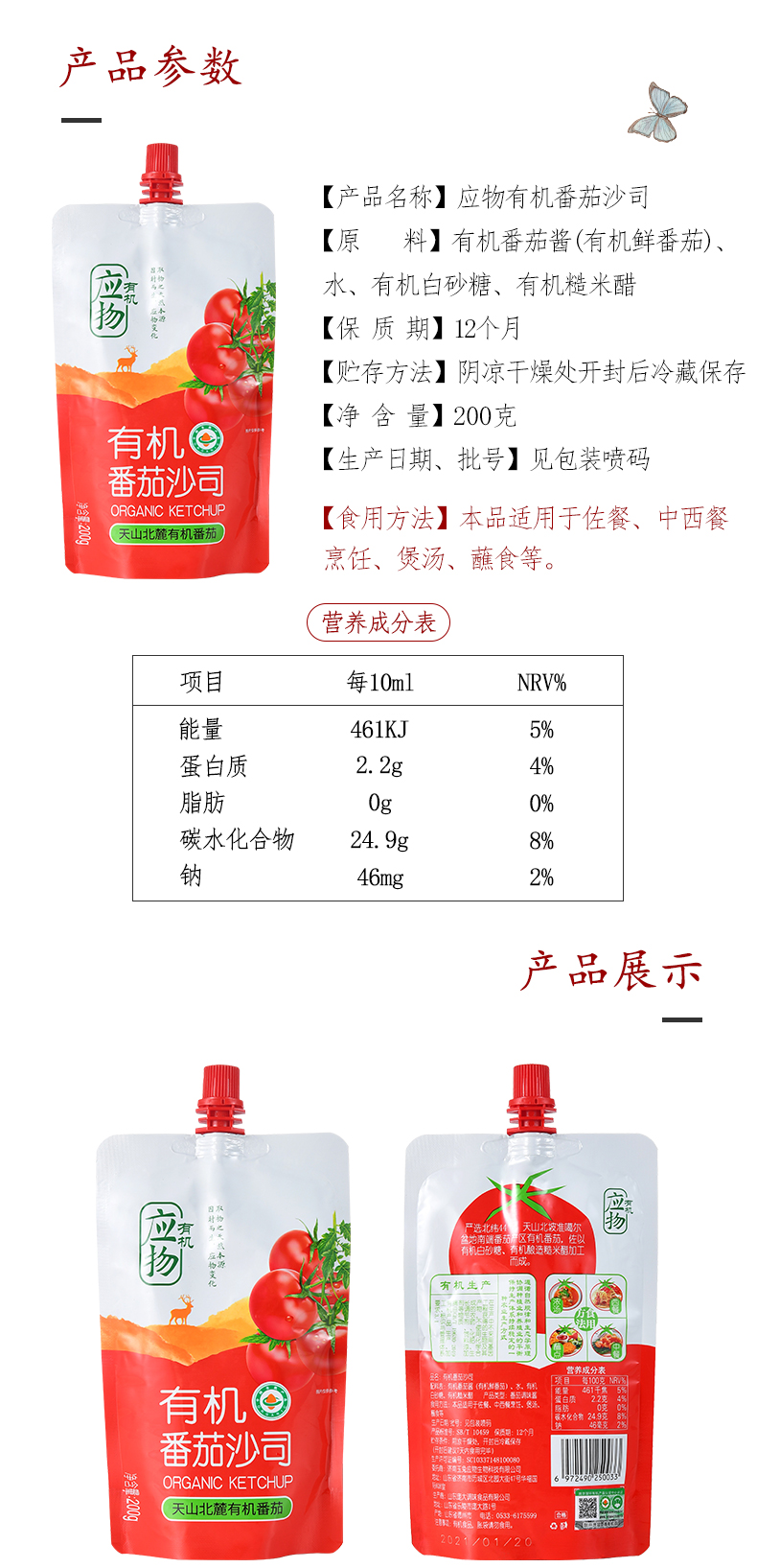 有机番茄酱200克 番茄沙司沙拉酱0脂零添加