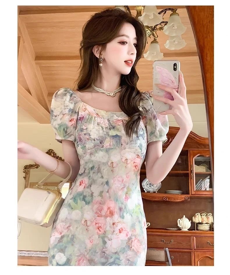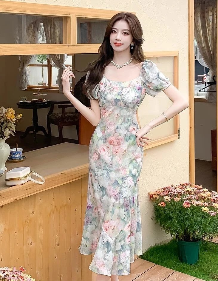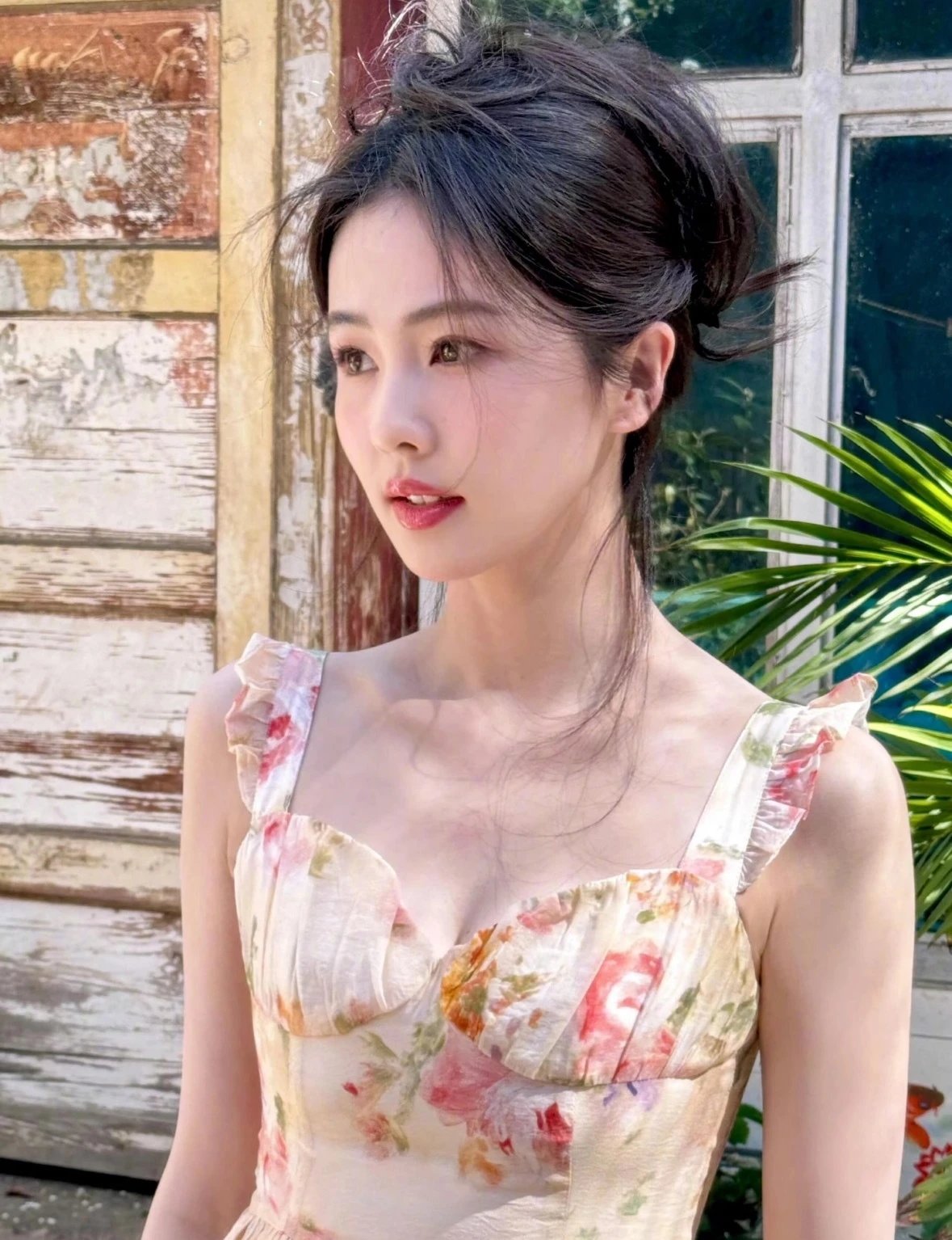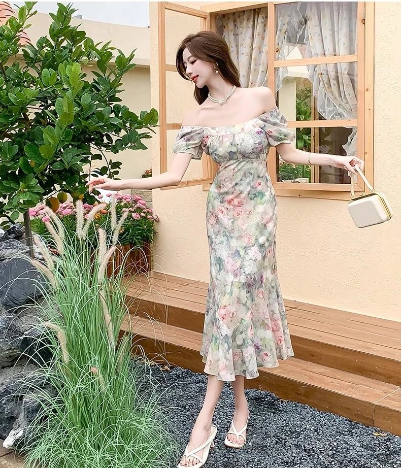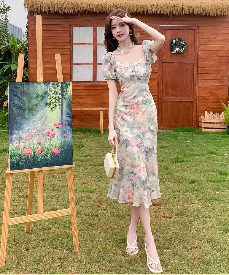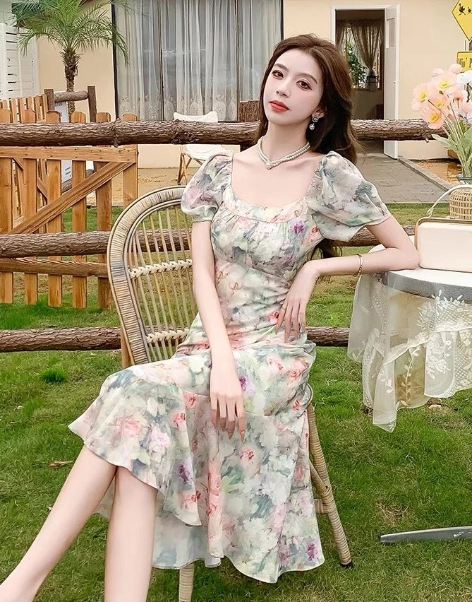 瞧这裙子上的花卉图案,色彩柔和、笔触朦胧