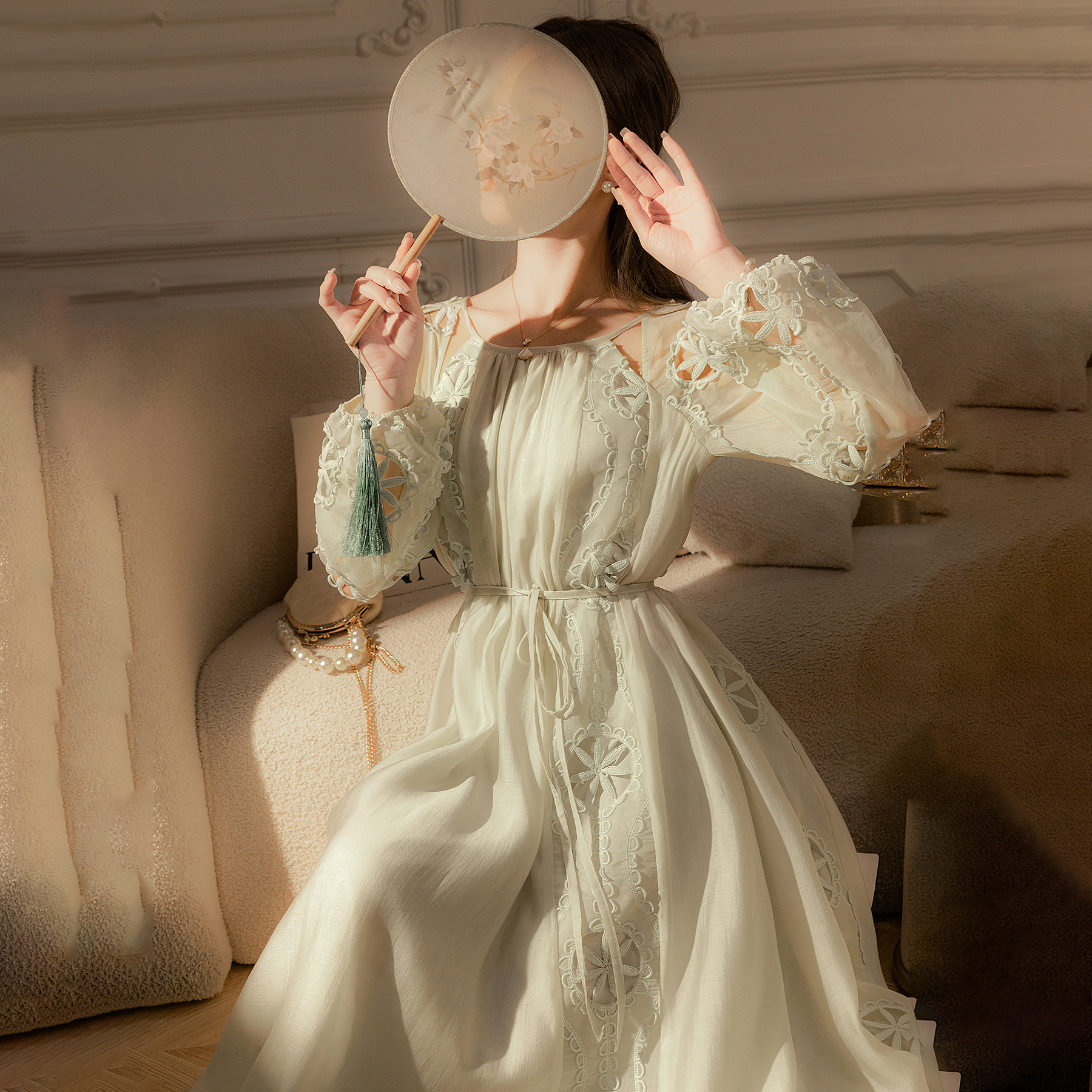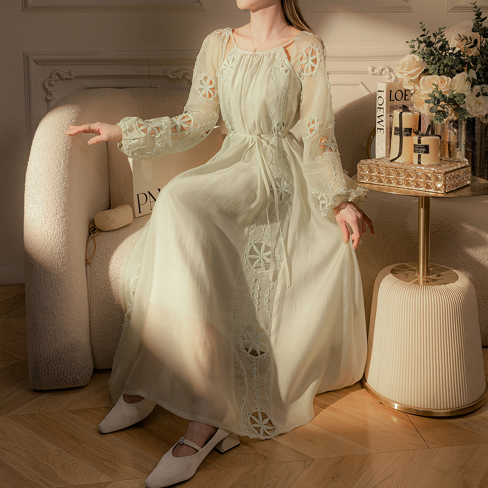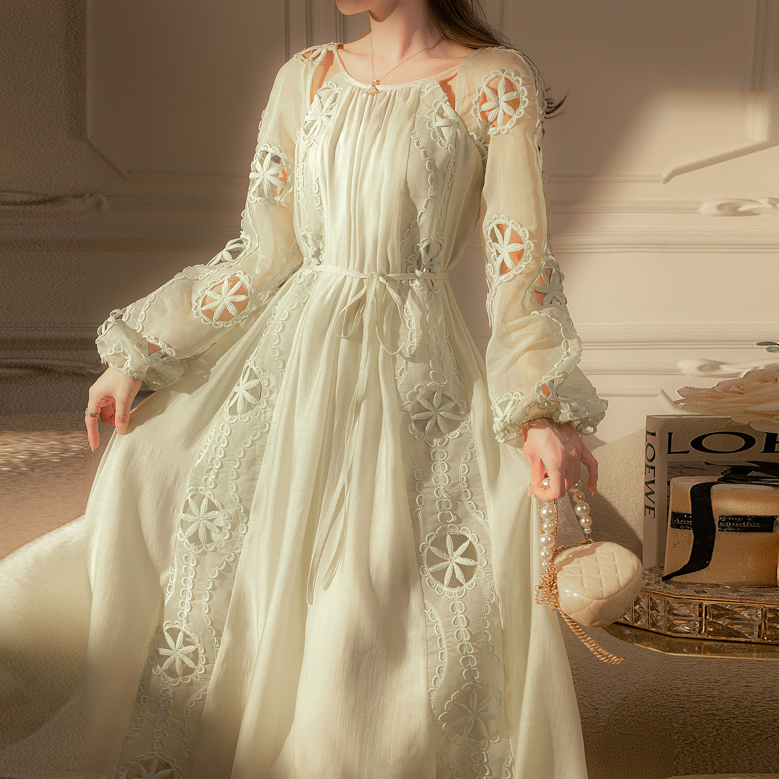 【清仓非质量问题不退换】张心子 【轻盈画艺】法式浪漫立体镂空连衣裙女秋季新款大摆仙女裙 U2308004