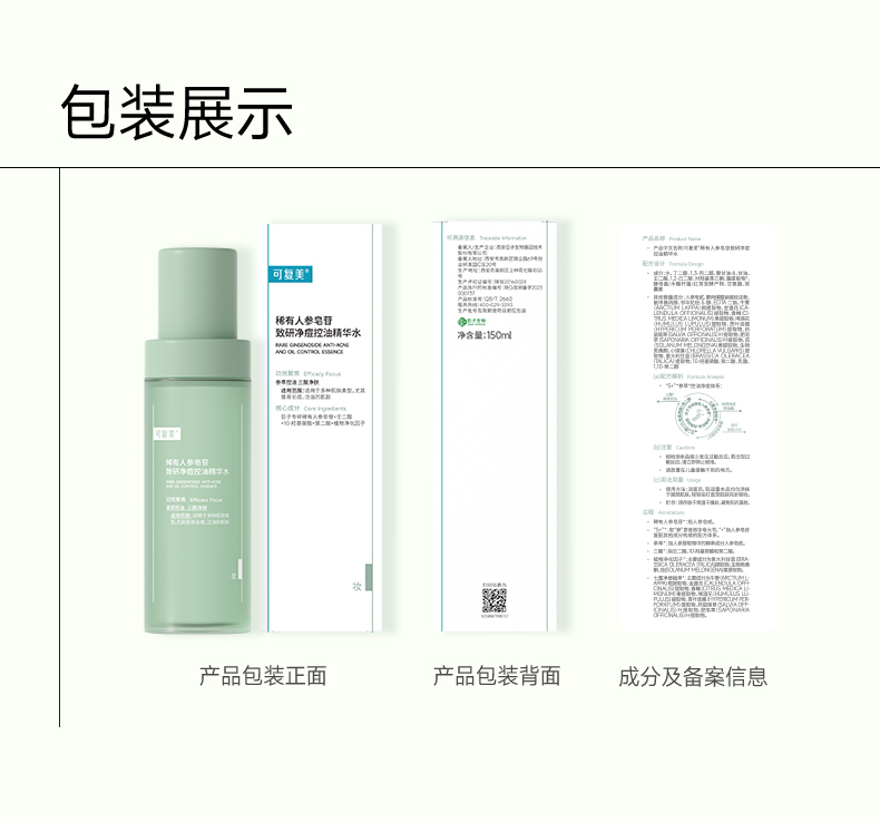 可复美稀有人参皂苷致研净痘控油精华水150ml/瓶(秩序水)