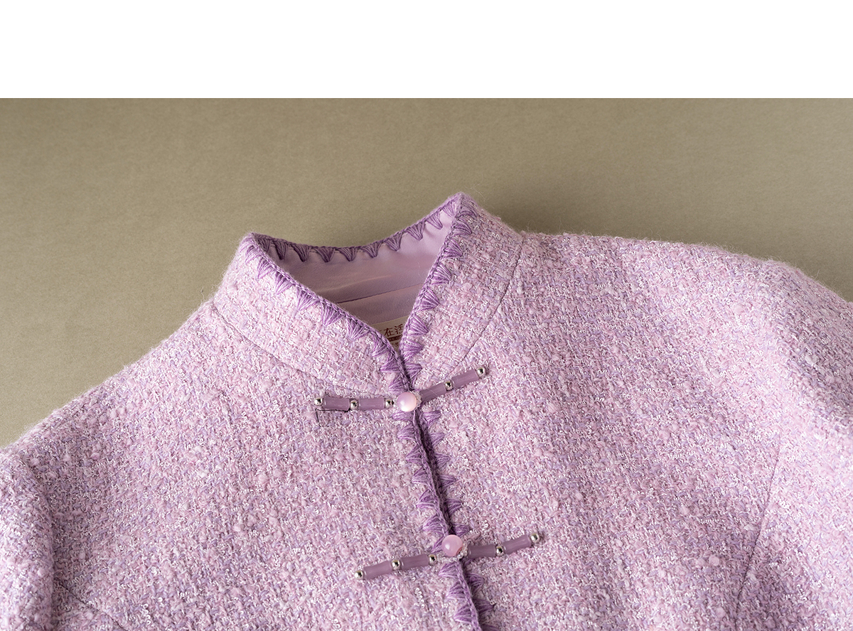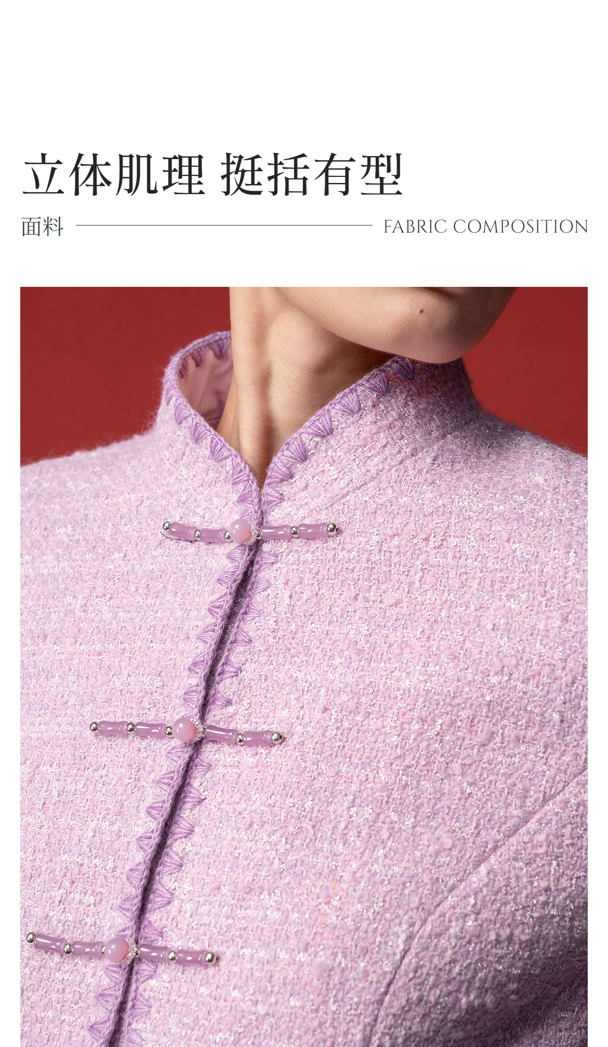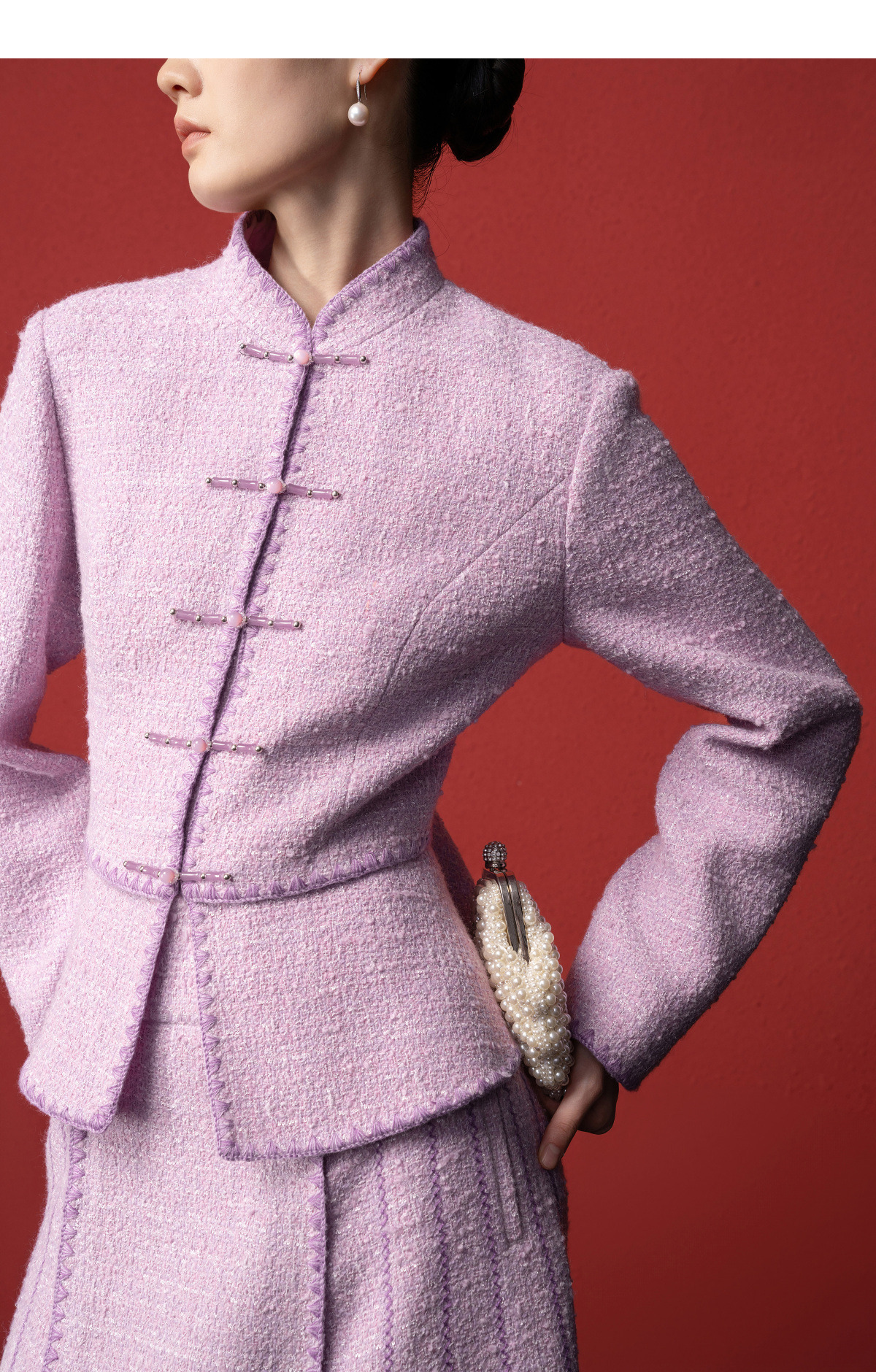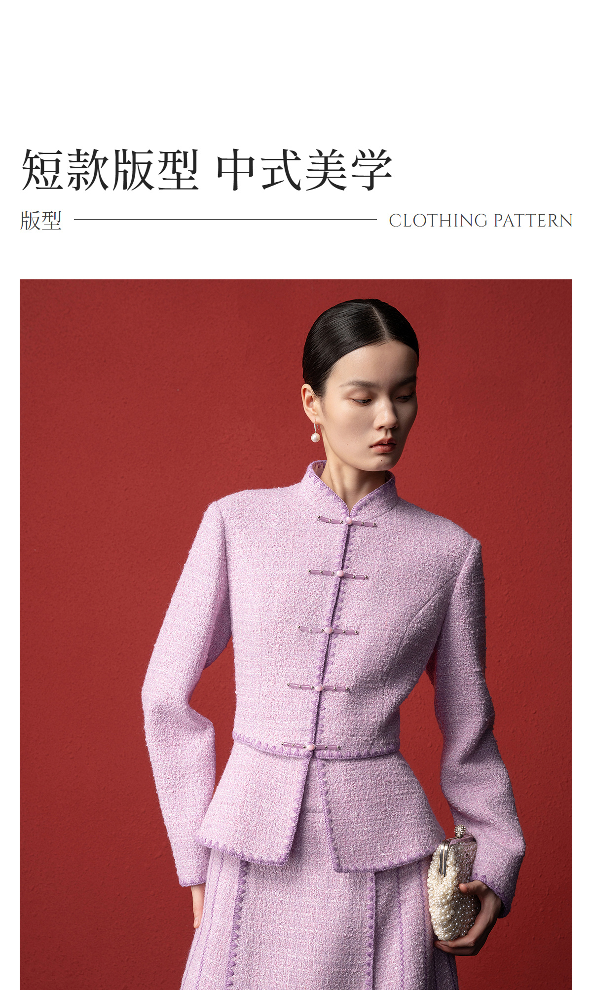 【林栖设计小店】(现货)小香风粉短外套肌理感优雅国风气质2025秋冬新款长袖上衣女T1954147