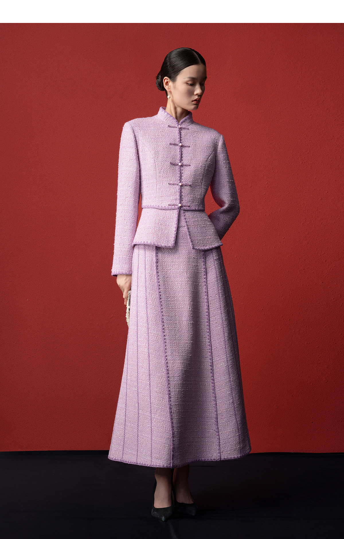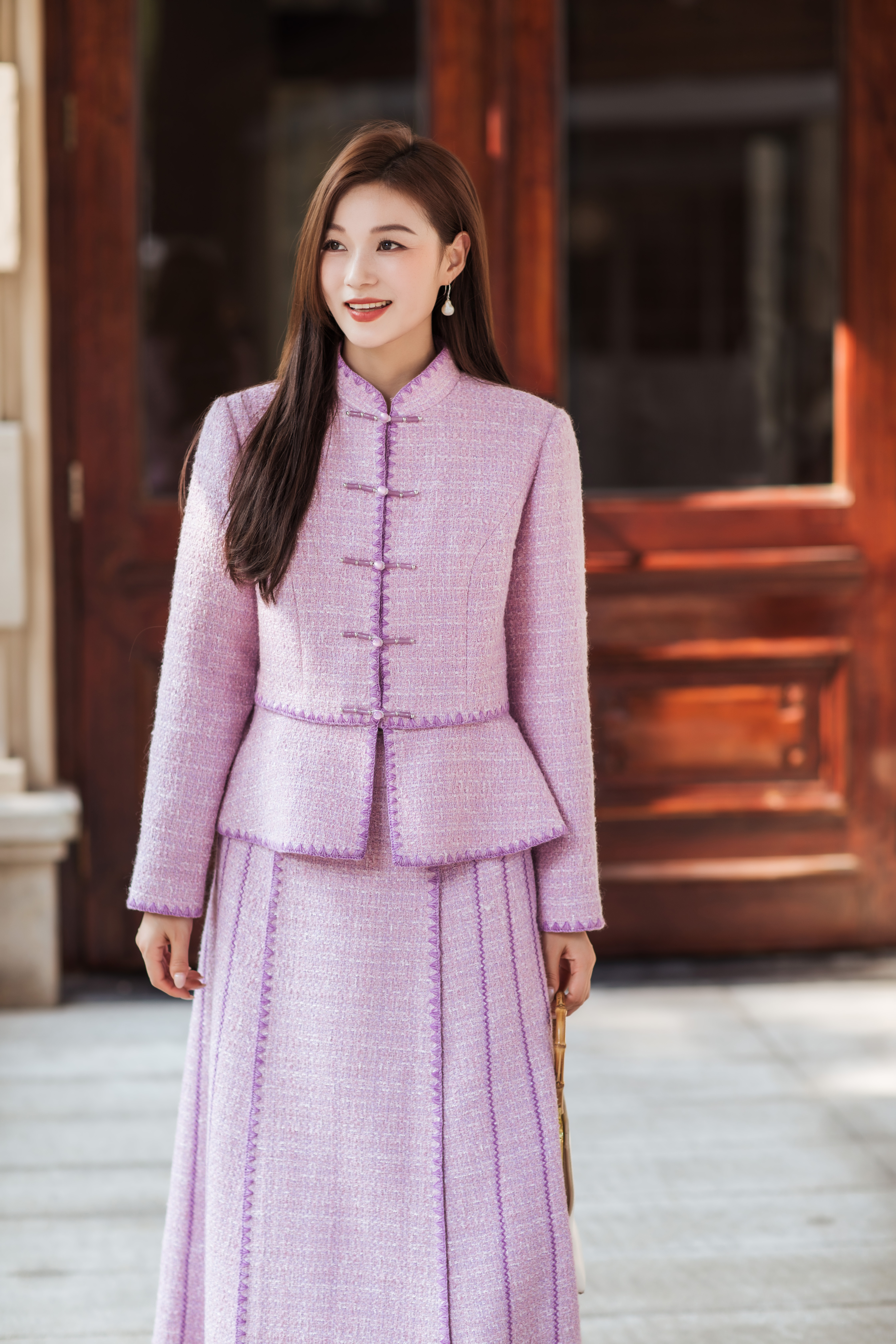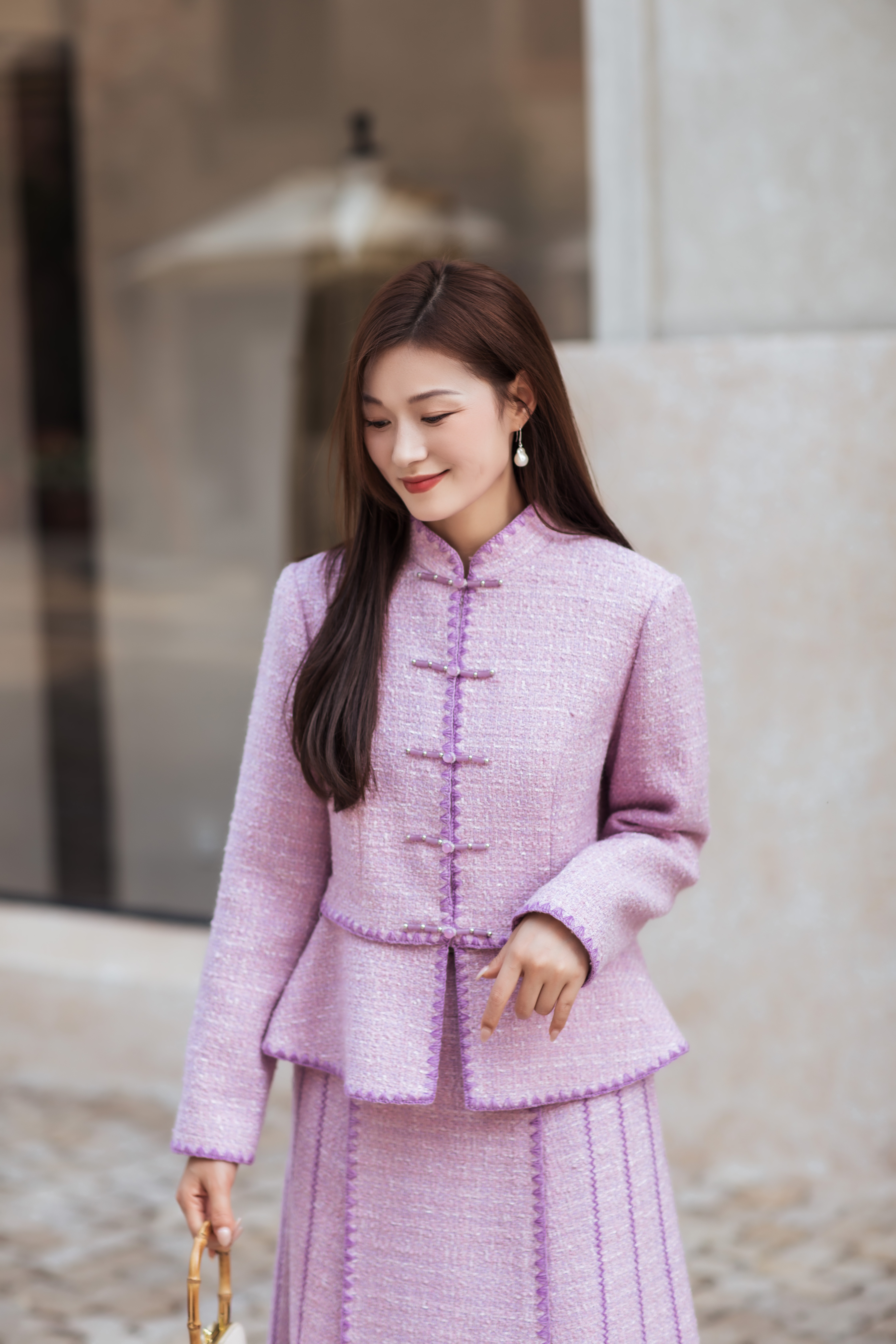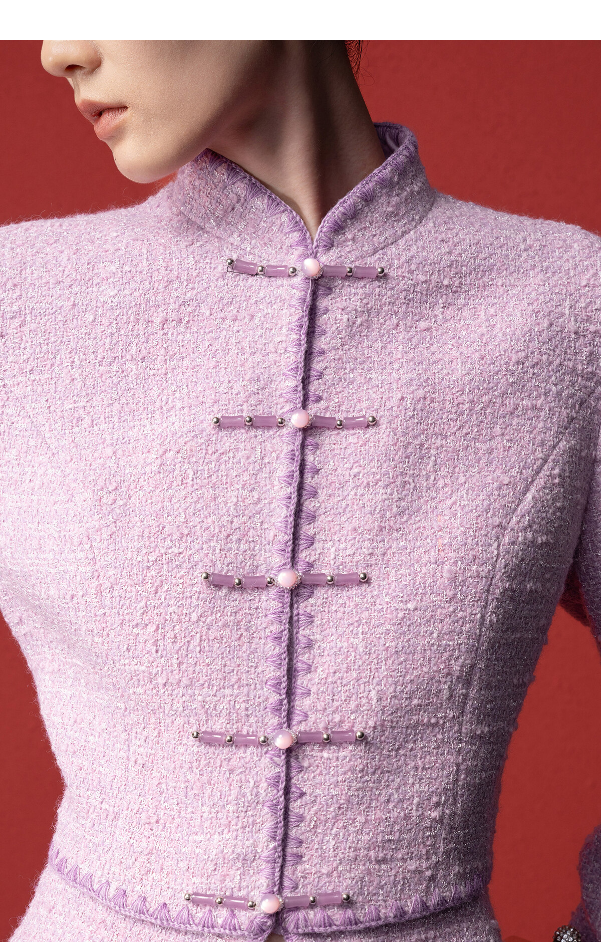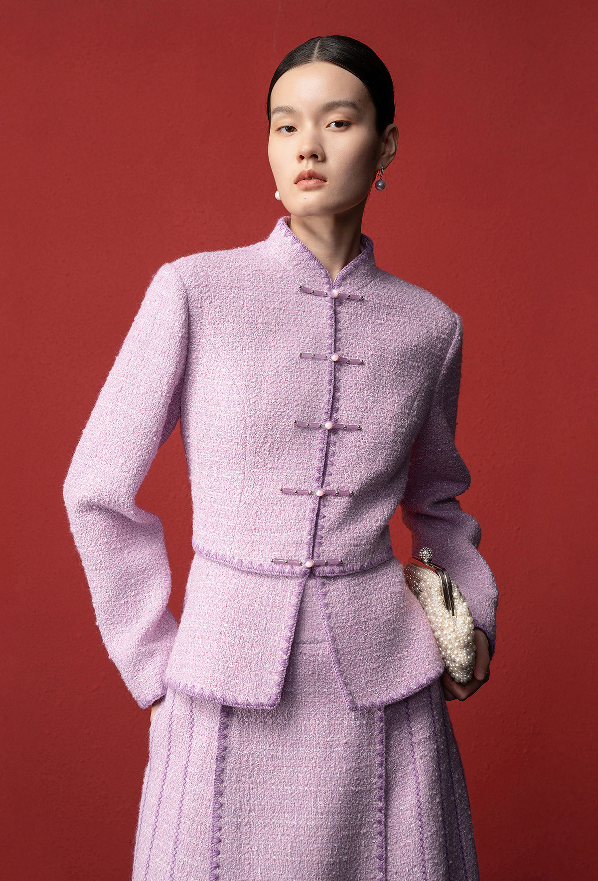 【林栖设计小店】(现货)小香风粉短外套肌理感优雅国风气质2025秋冬新款长袖上衣女T1954147