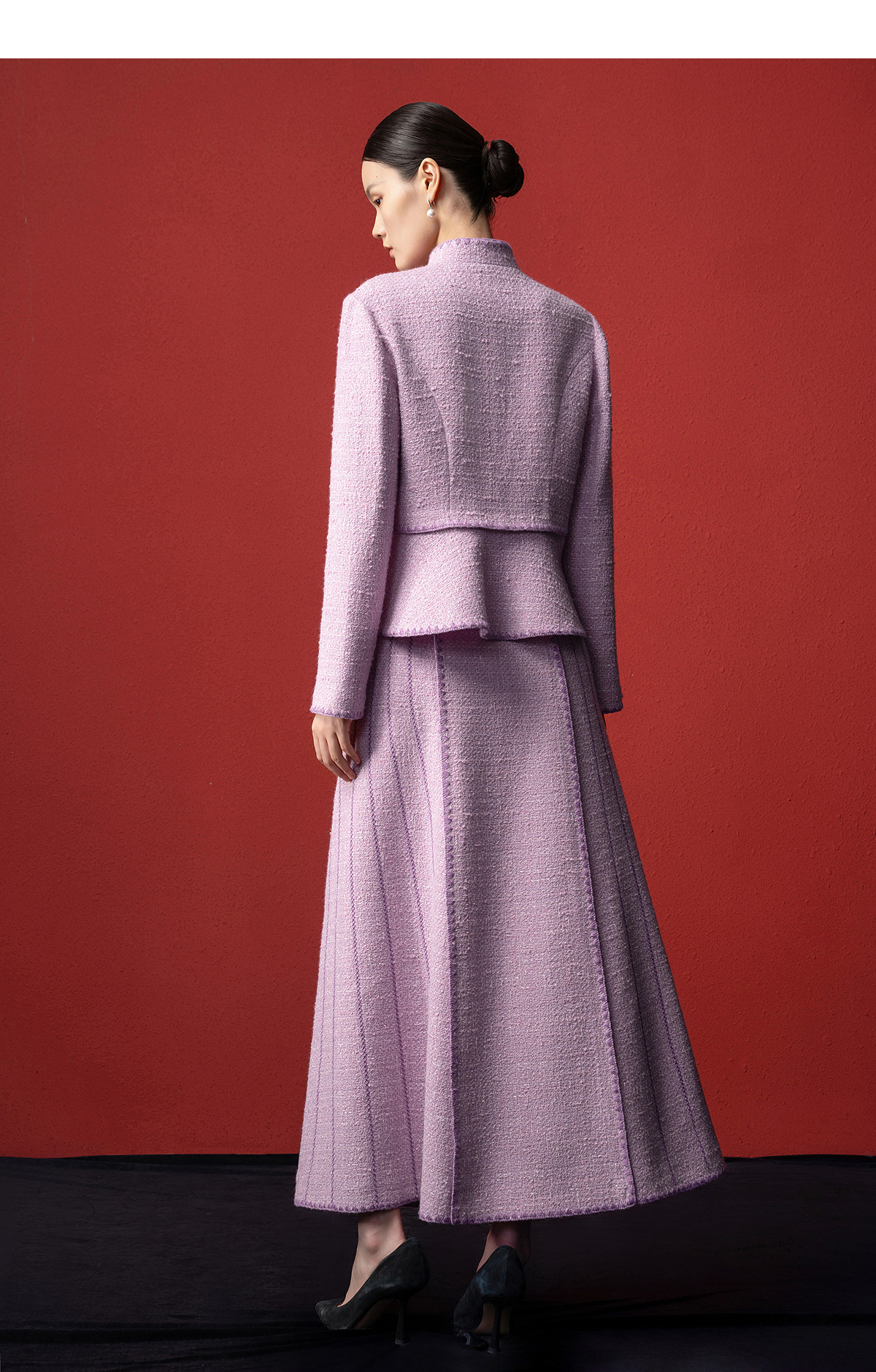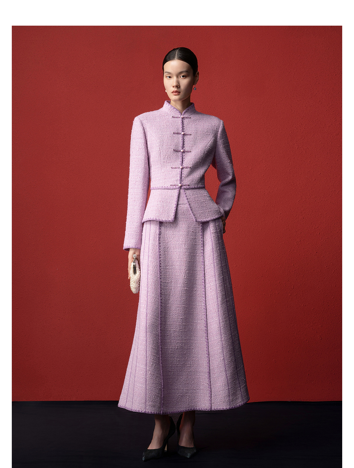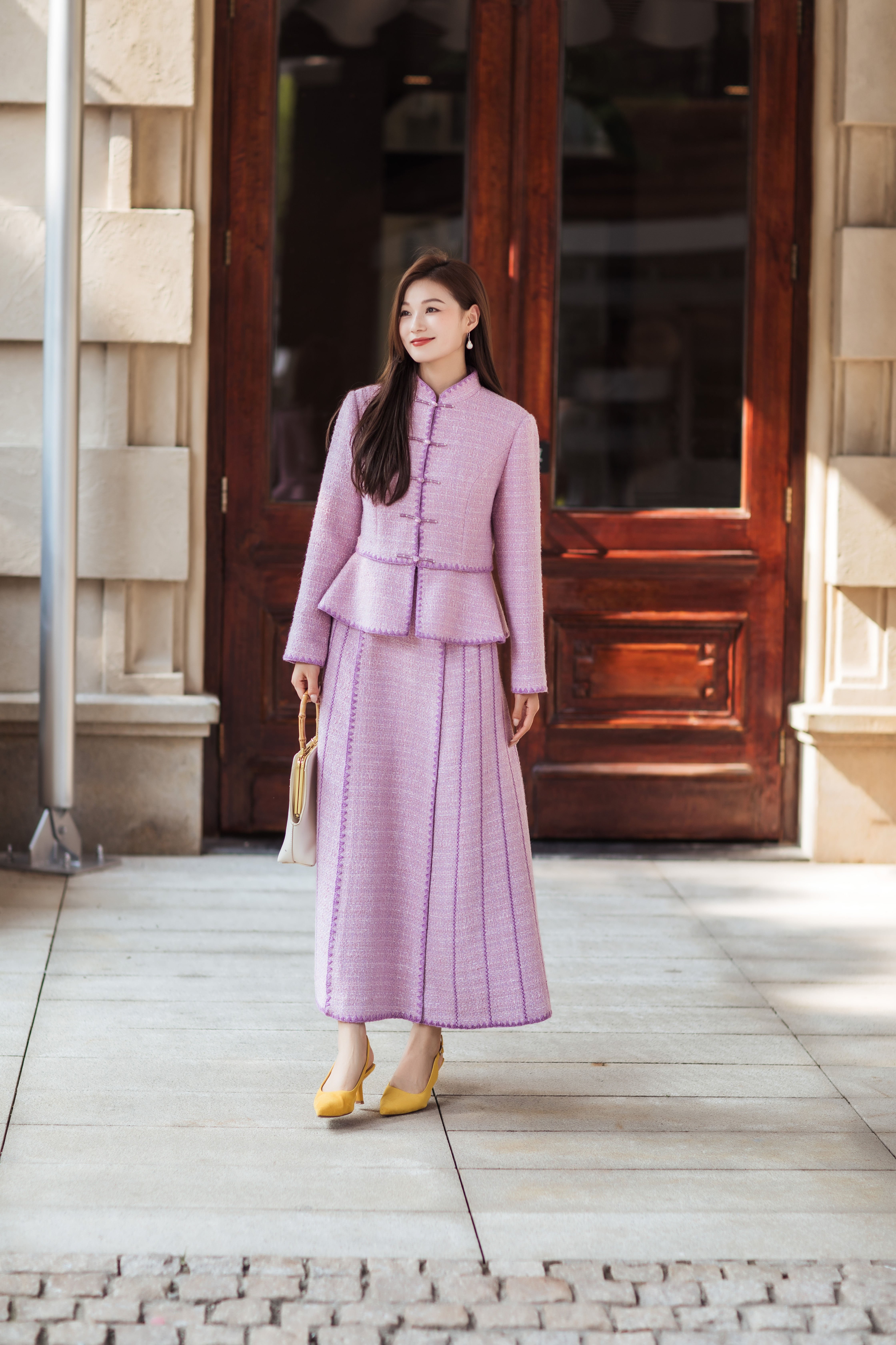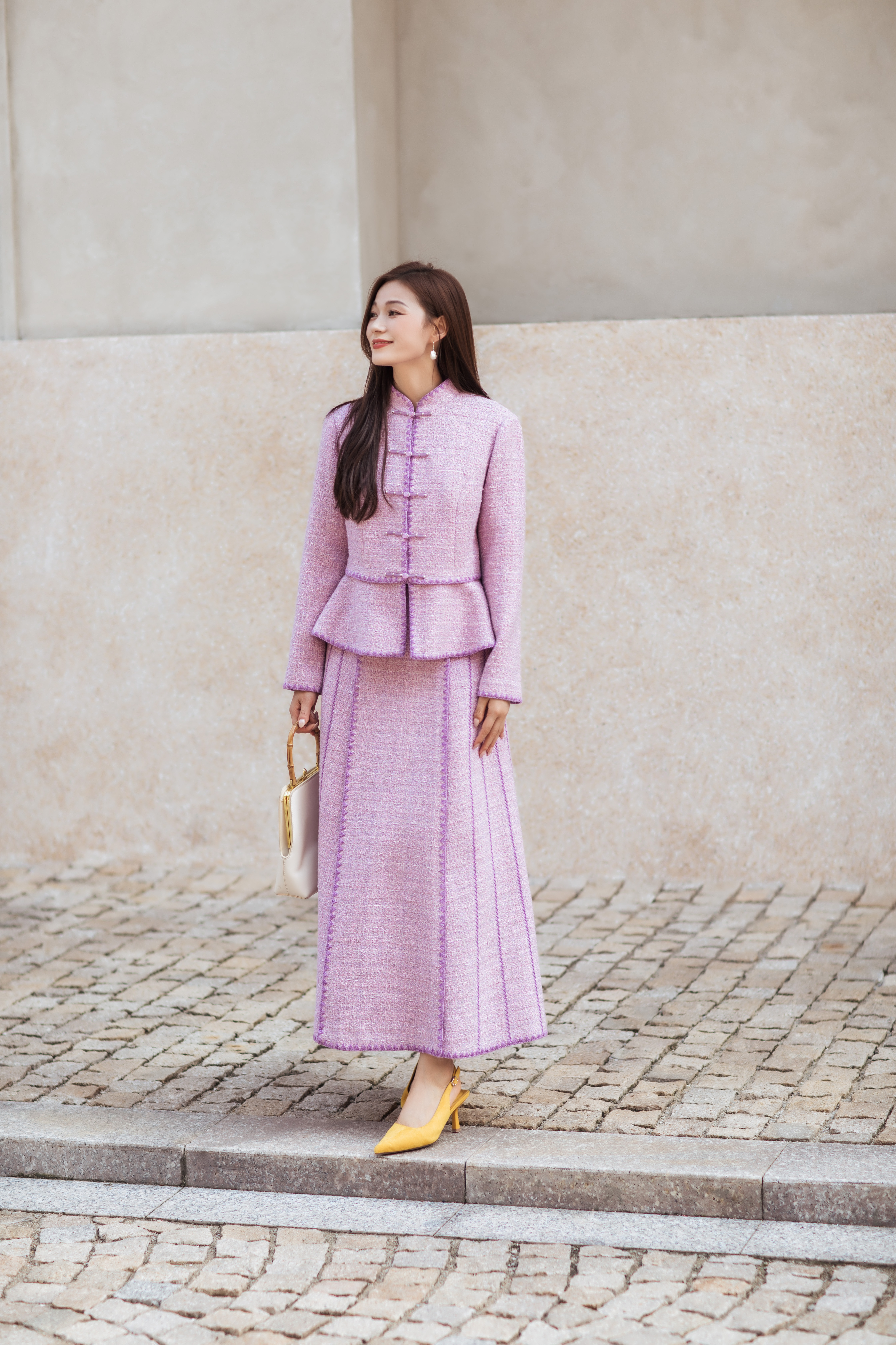 【林栖设计小店】(现货)小香风粉短外套肌理感优雅国风气质2025秋冬新款长袖上衣女T1954147