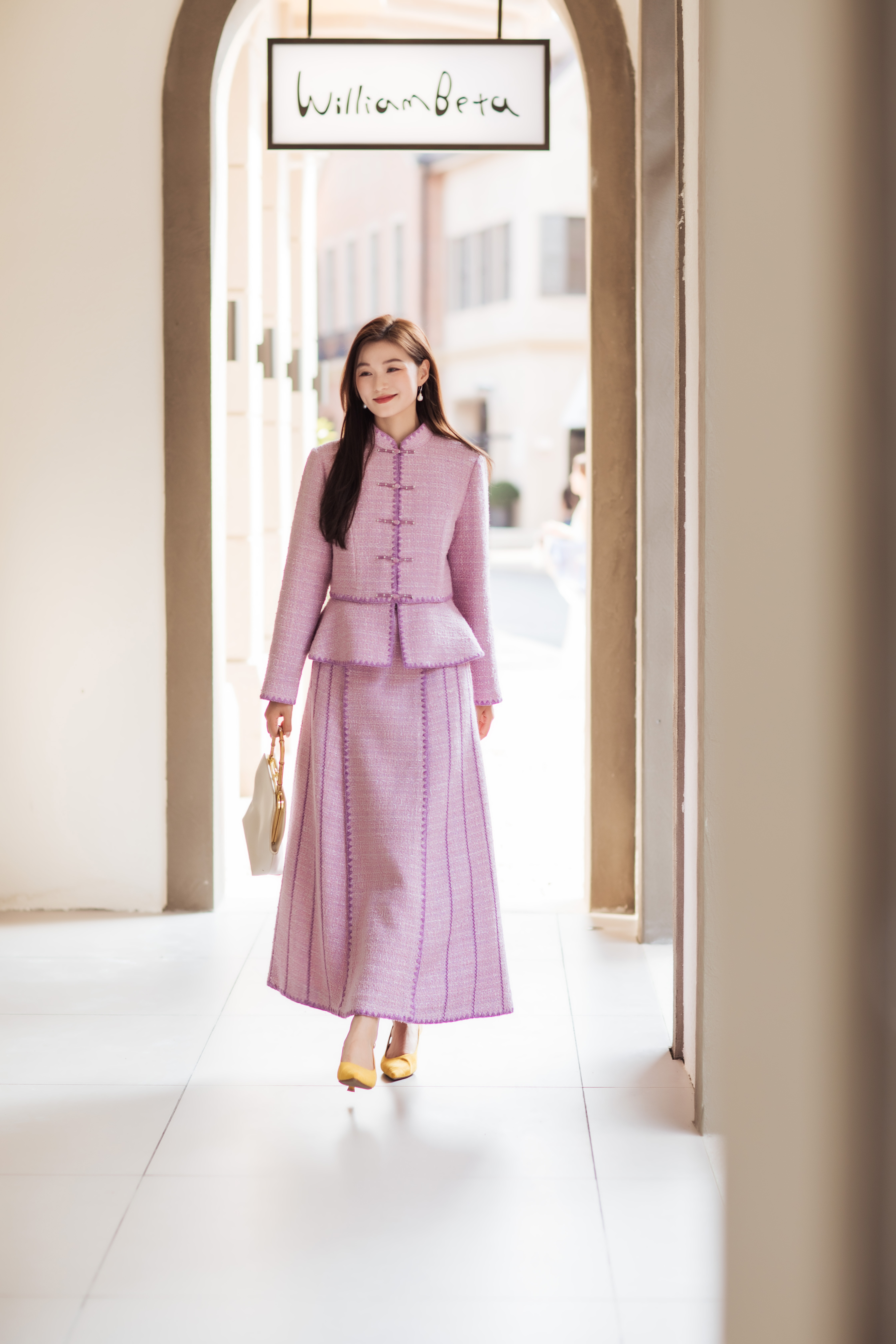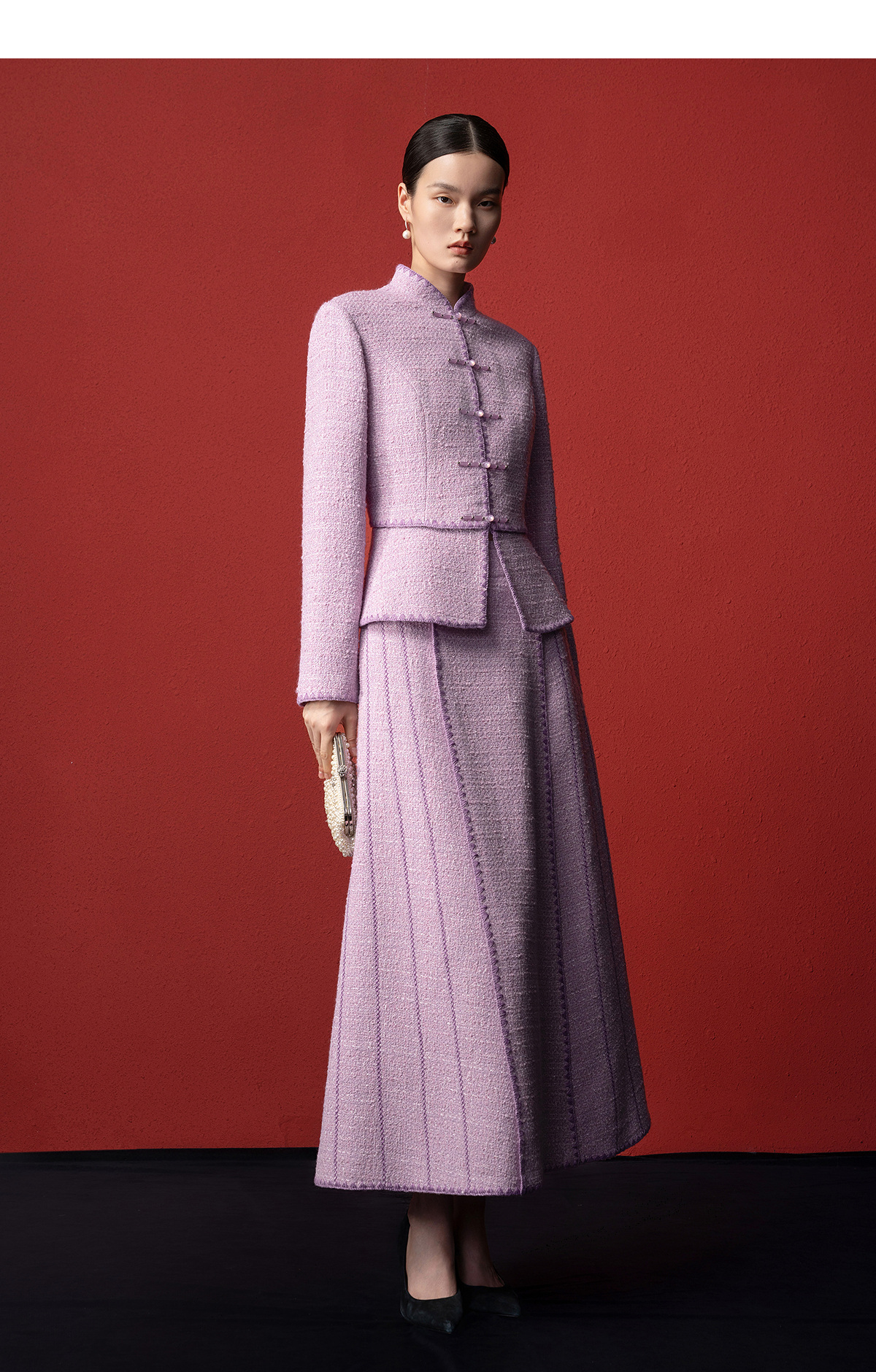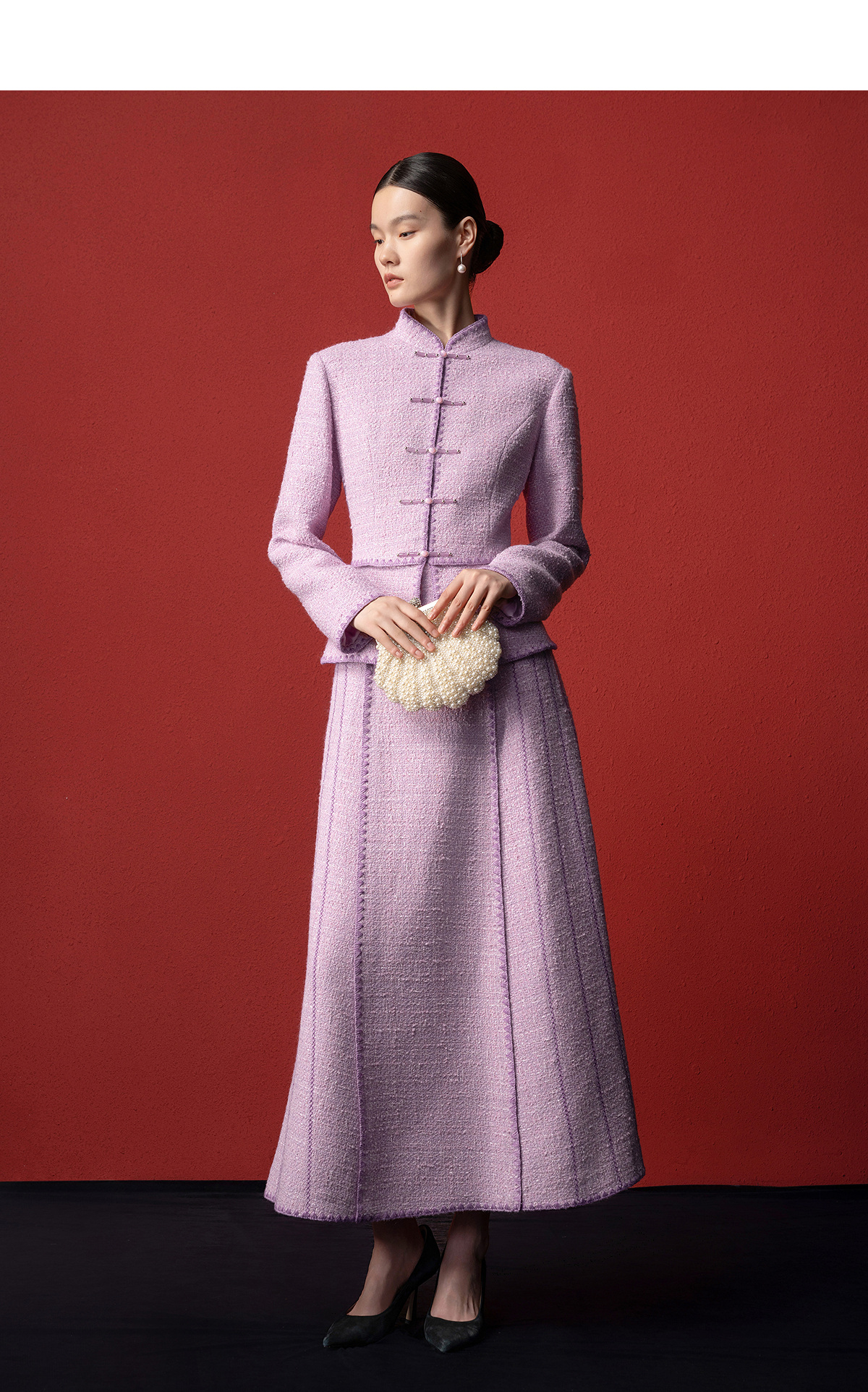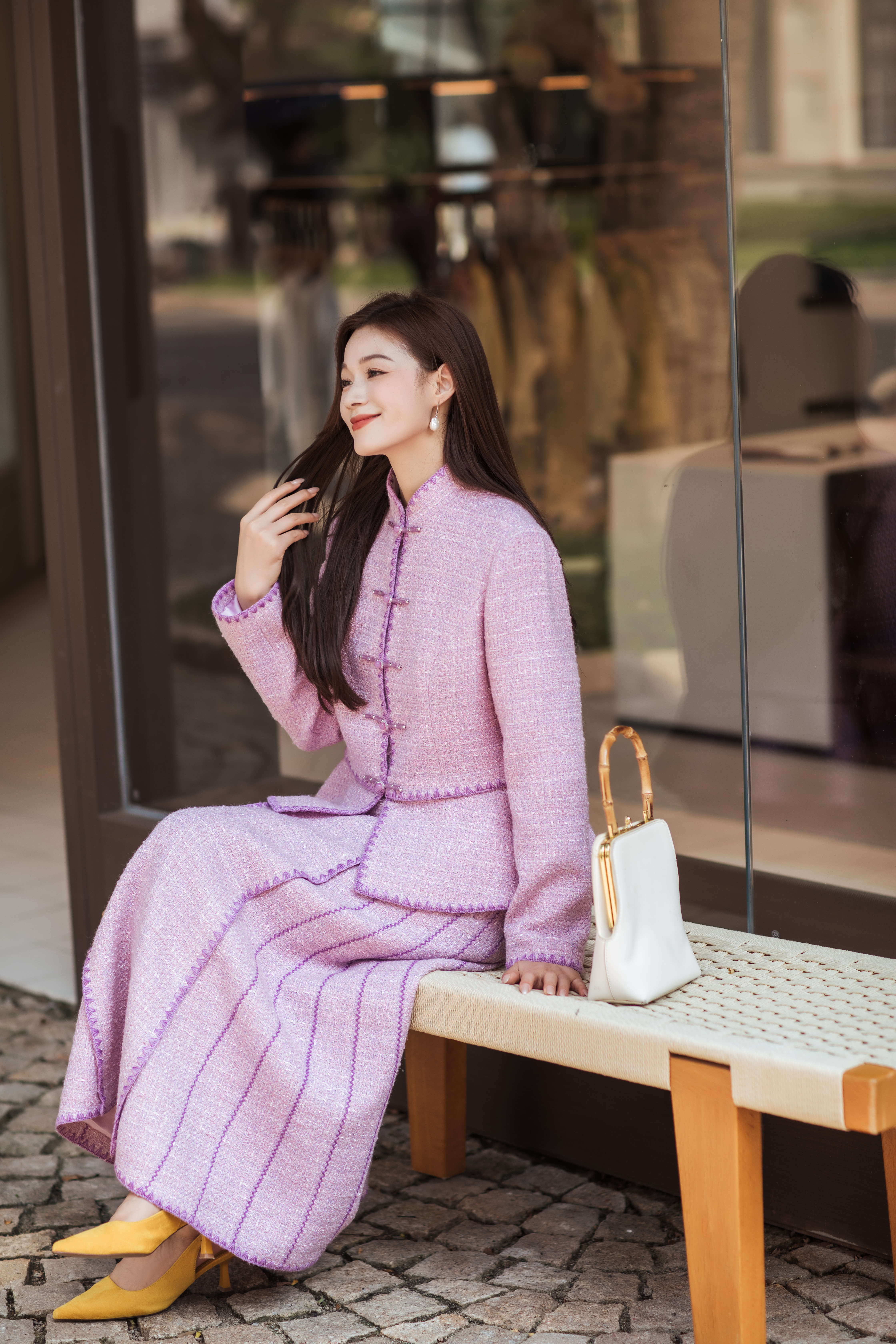 【林栖设计小店】(现货)小香风粉短外套肌理感优雅国风气质2025秋冬新款长袖上衣女T1954147