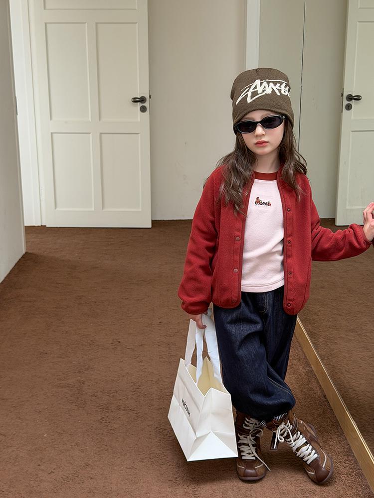 艾摩贝贝男女童双面细绒贴肤不扎立领防风不卡脖保暖毛绒外套潮【自发热】
