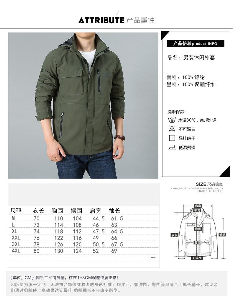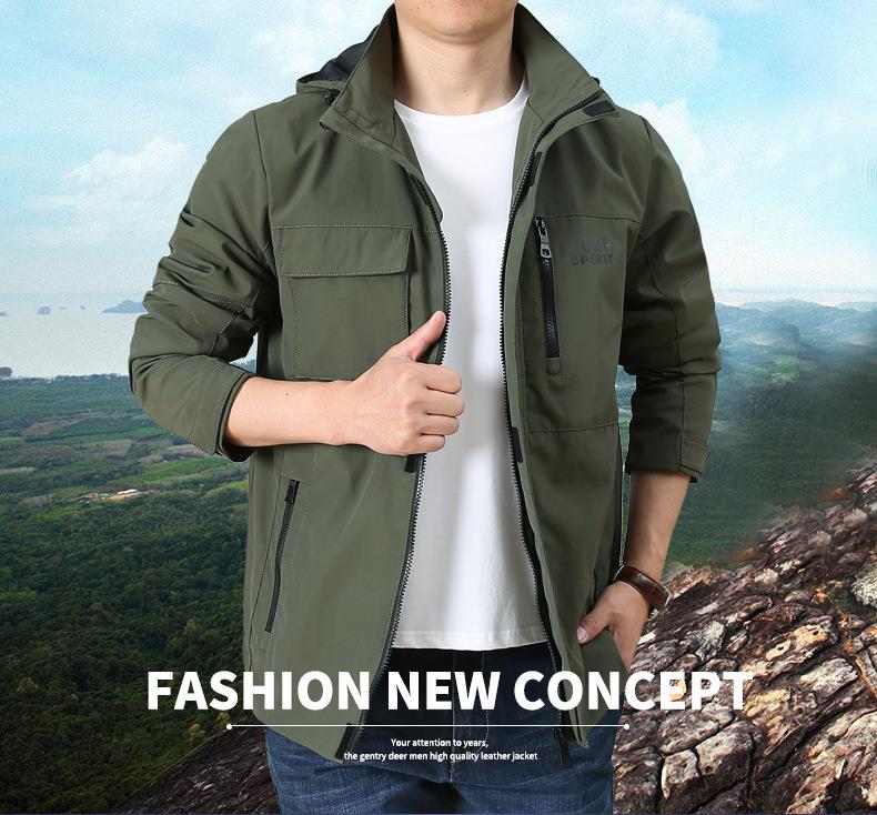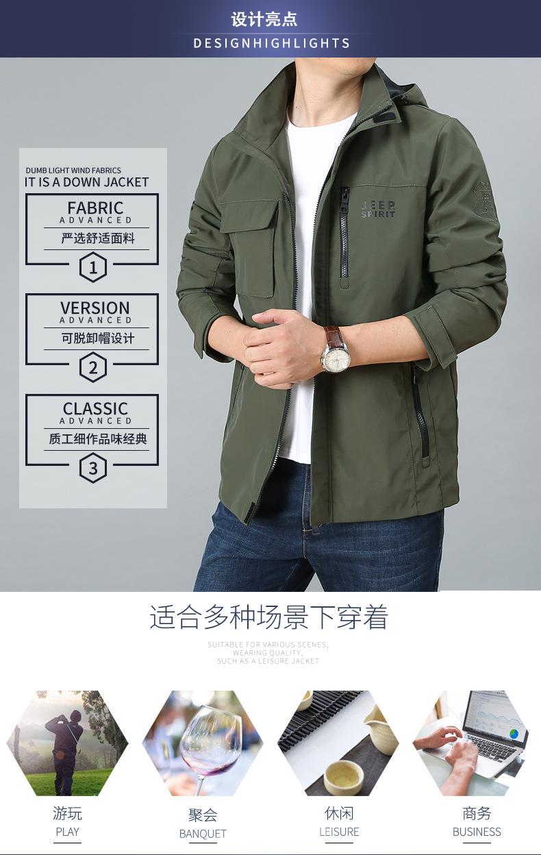 JEEP SPIRIT秋季夹克户外薄款休闲冲锋衣宽松外套男HL8111A