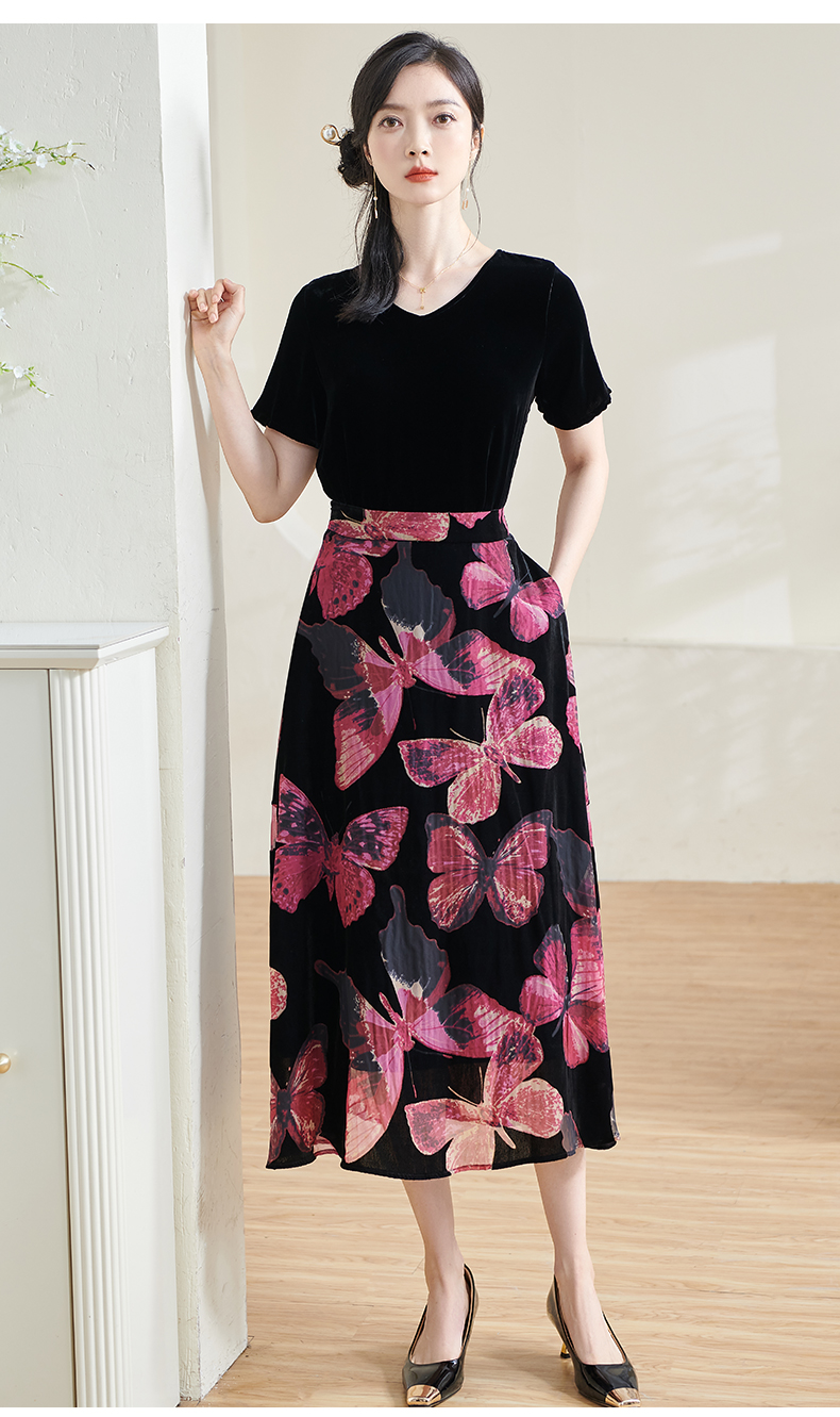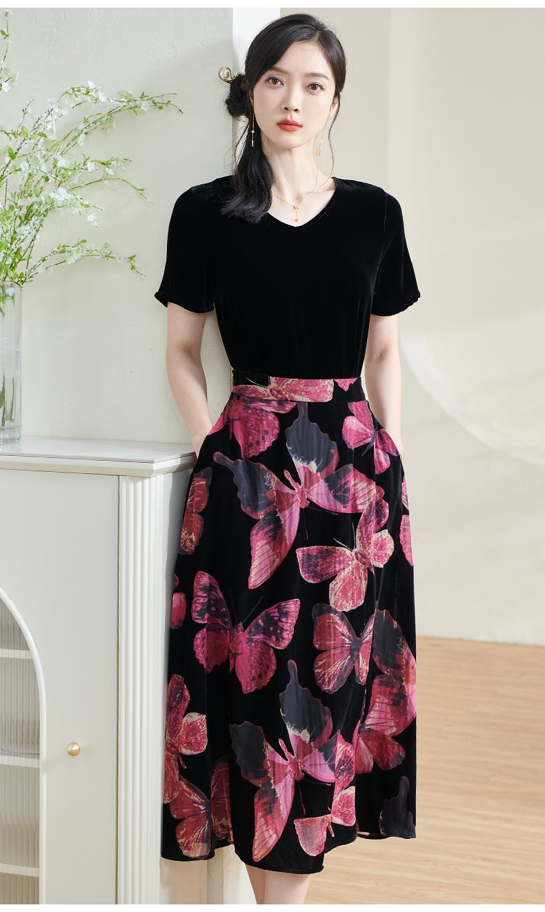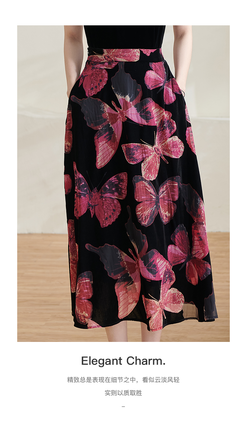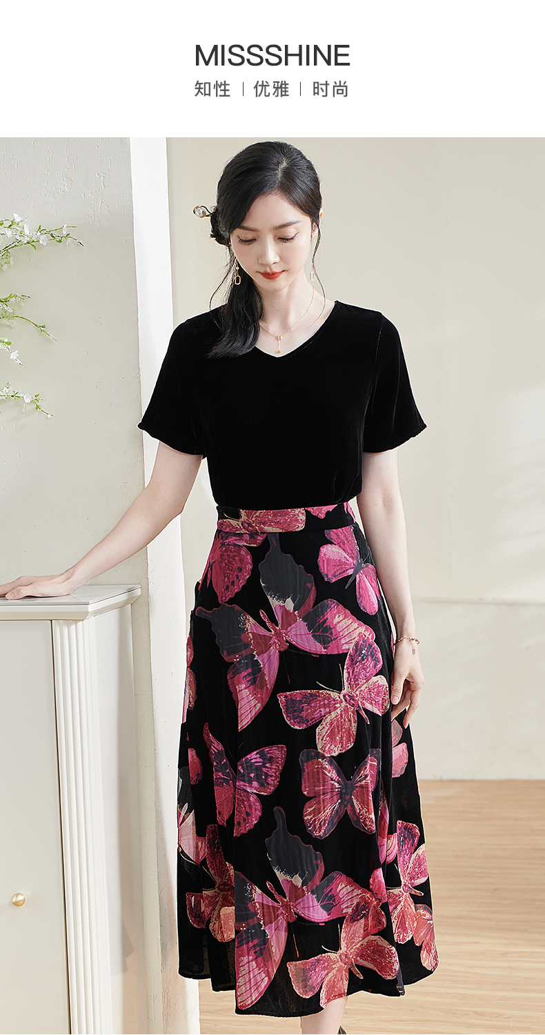 米思阳2025夏季新款国风优雅气质半身裙高级感丝绒立领A字裙1713