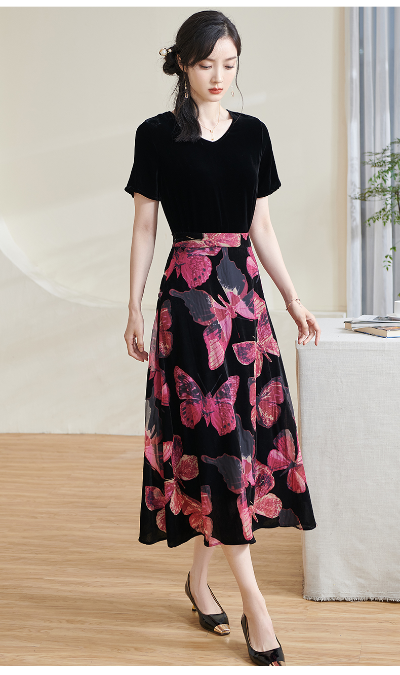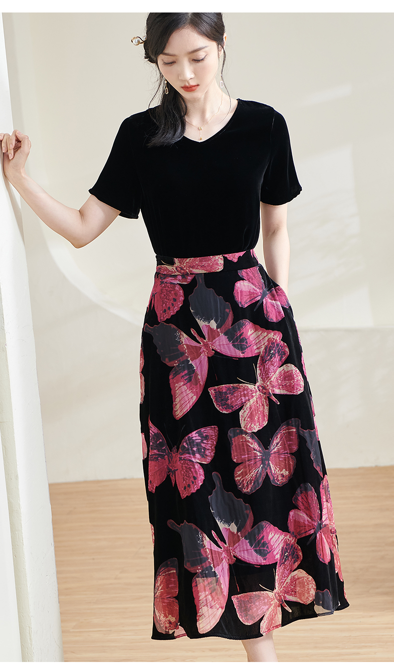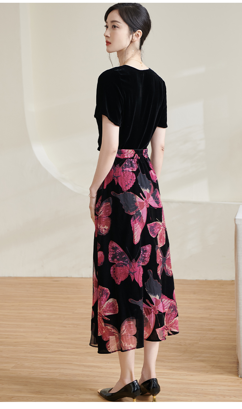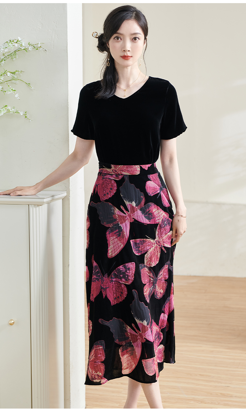 米思阳2025夏季新款国风优雅气质半身裙高级感丝绒立领A字裙1713