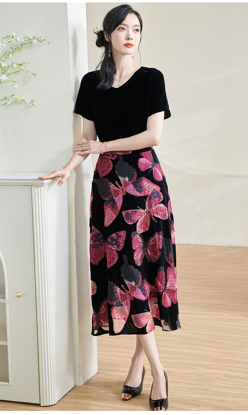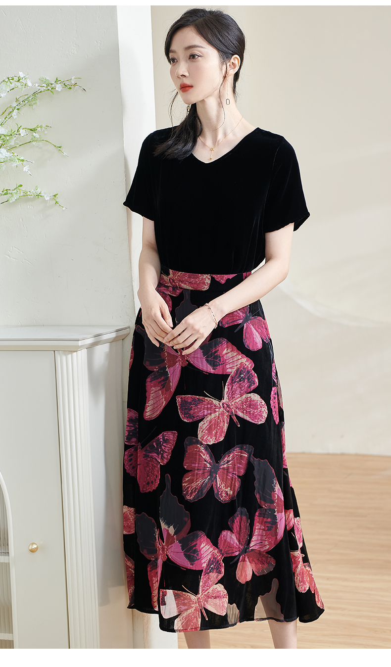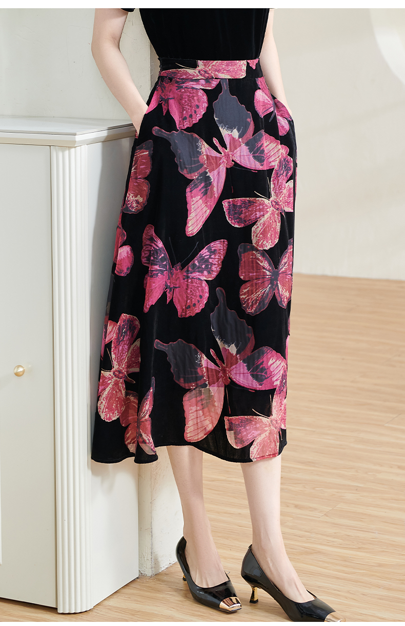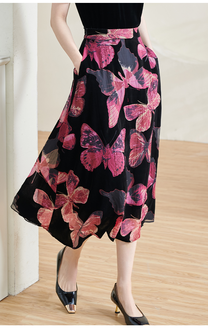 米思阳2025夏季新款国风优雅气质半身裙高级感丝绒立领A字裙1713