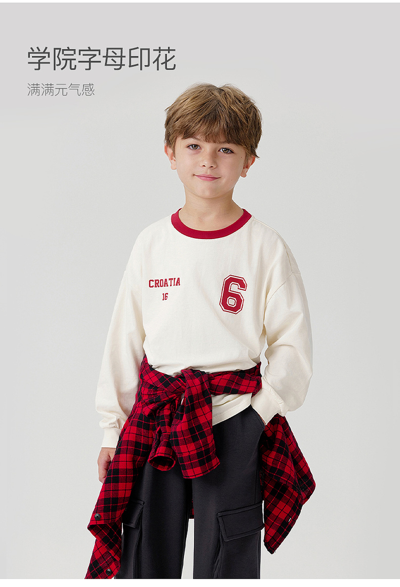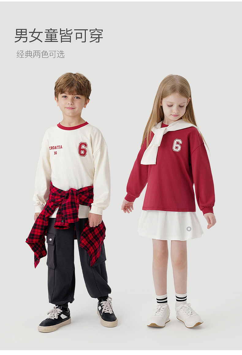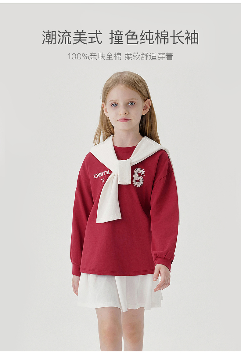 马克珍妮男女童美式学院撞色长袖T恤儿童上衣2024秋装新款241006