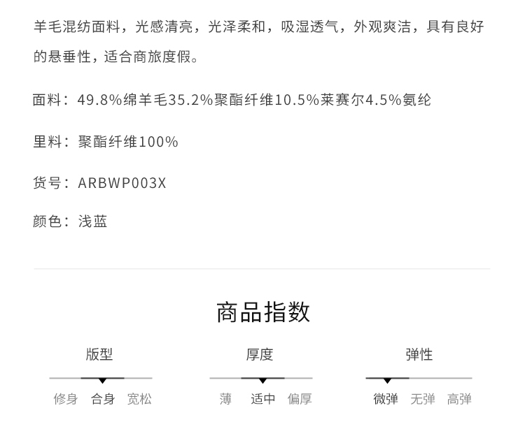 callisto浅蓝绵羊毛混纺西裤ARBWP003C