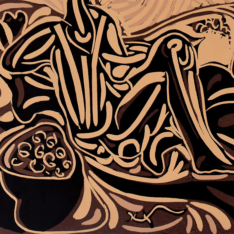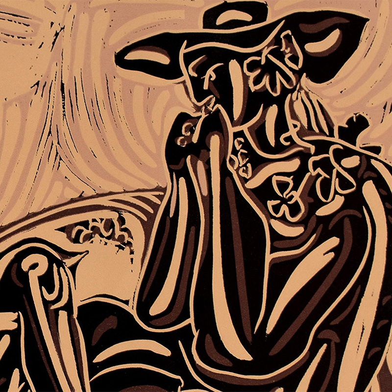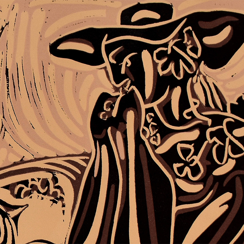 【已售】独角鹿西洋古董 1959年法国出品西班牙艺术家签名创作彩色油印版画「 Les Vendangeurs 收获葡萄的人 」