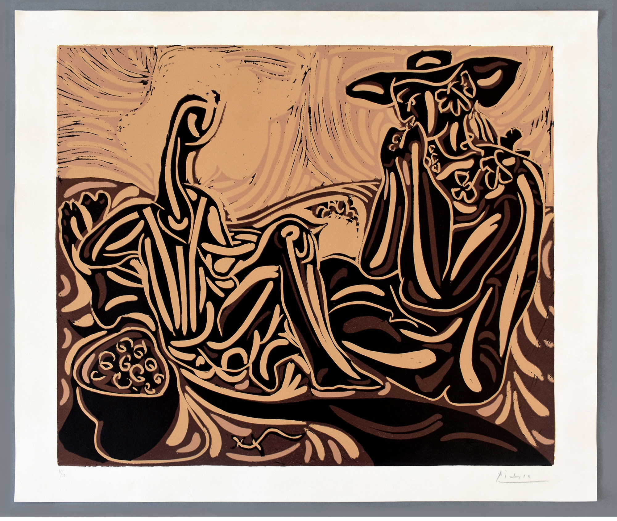 1959年法国出品西班牙艺术家签名创作彩色油印版画「 Les Vendangeurs 收获葡萄的人 」