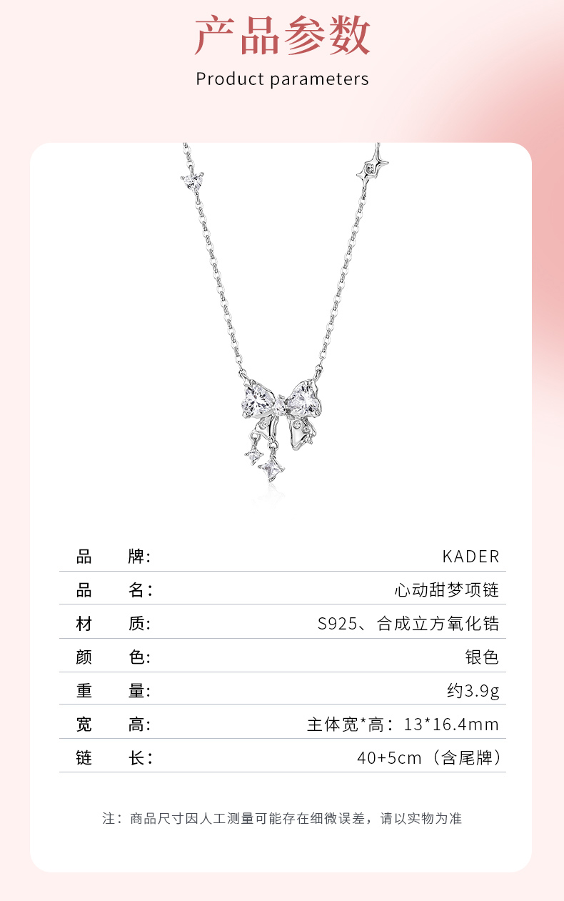 KADER卡蒂罗 心动甜梦项链女 925银轻奢小众2023新款夏锁骨链高级感配饰 送女友 送闺蜜 送礼