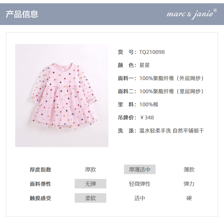 【打折】马克珍妮夏装 女童彩色星星网纱连衣裙 宝宝裙子210098