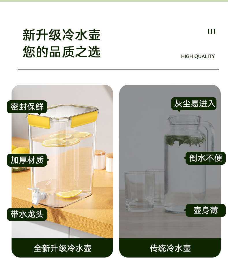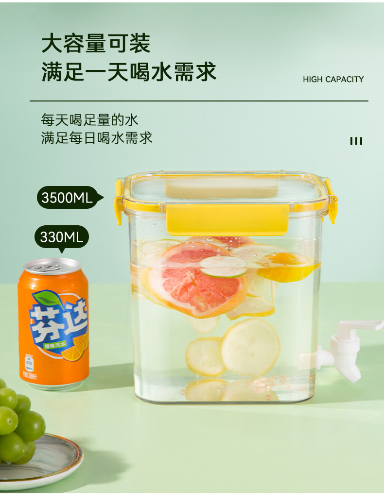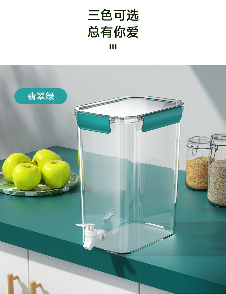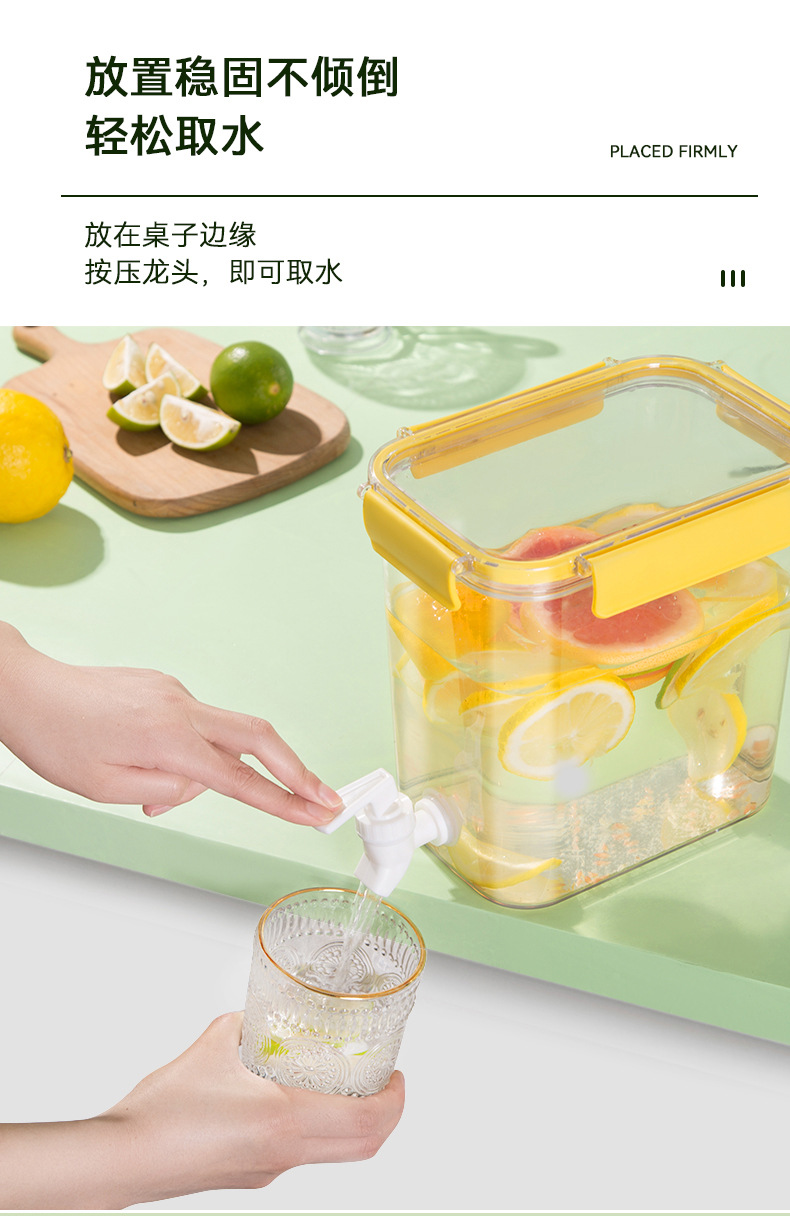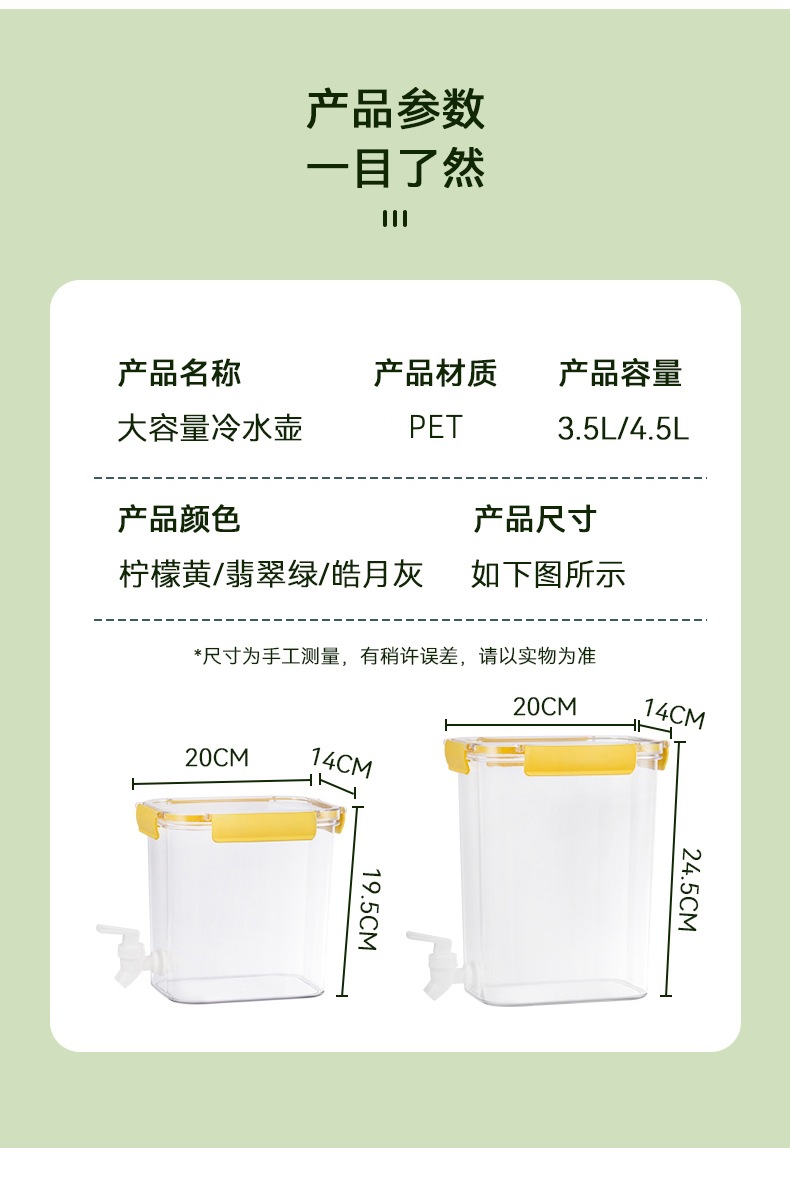 「4.5L大容量!三款配色」冷水壶带龙头 居家日用PET大容量透明塑料桶密封保鲜冰箱果汁罐