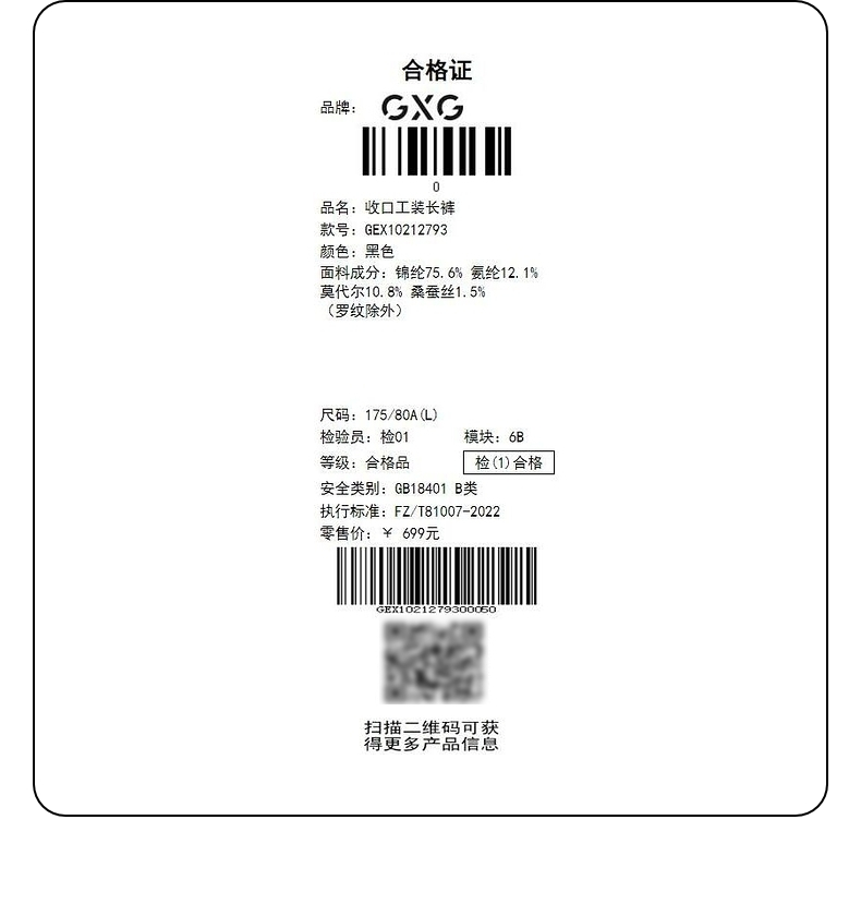 GXG男装 黑色束脚工装裤休闲裤大口袋潮流 爆款休闲裤GEX10212793