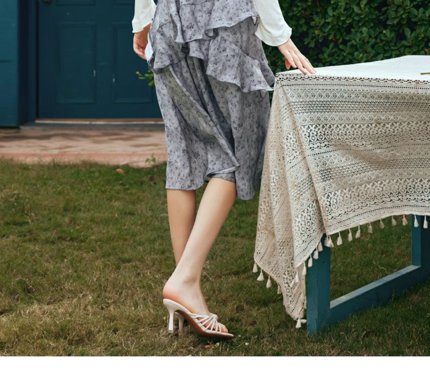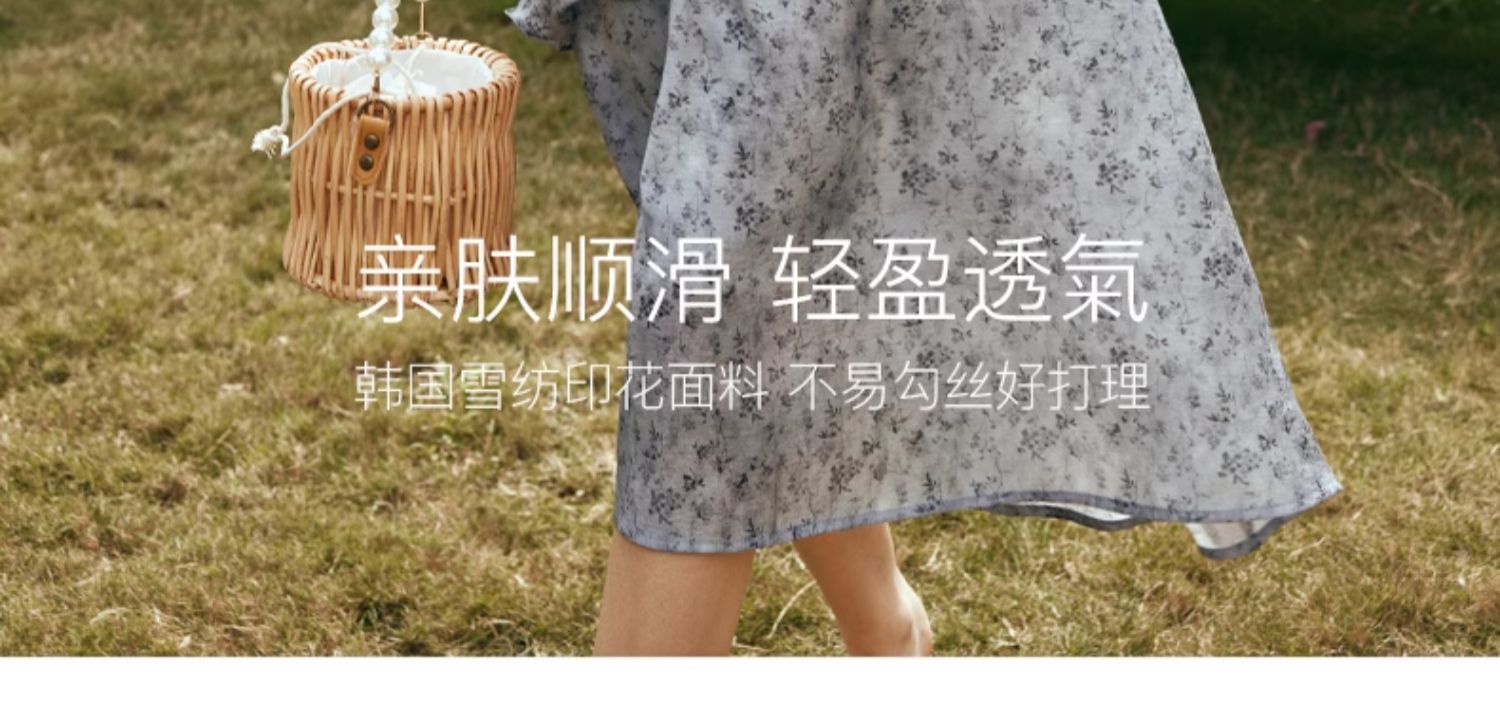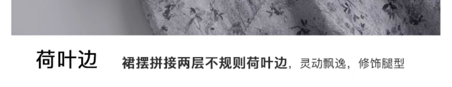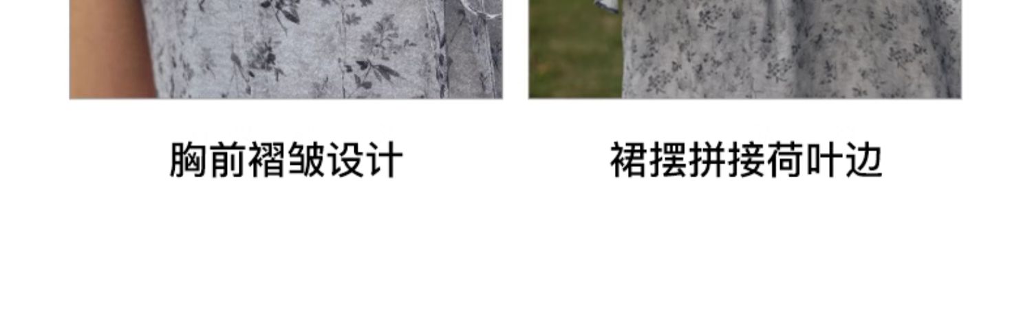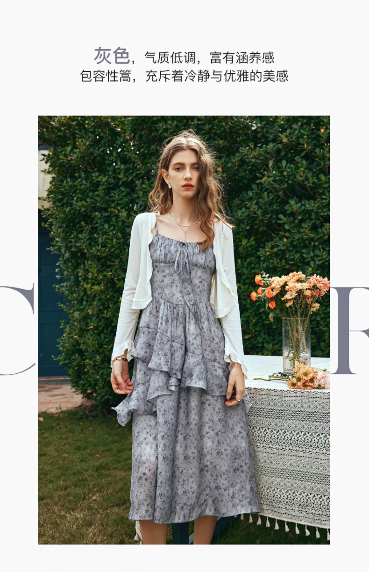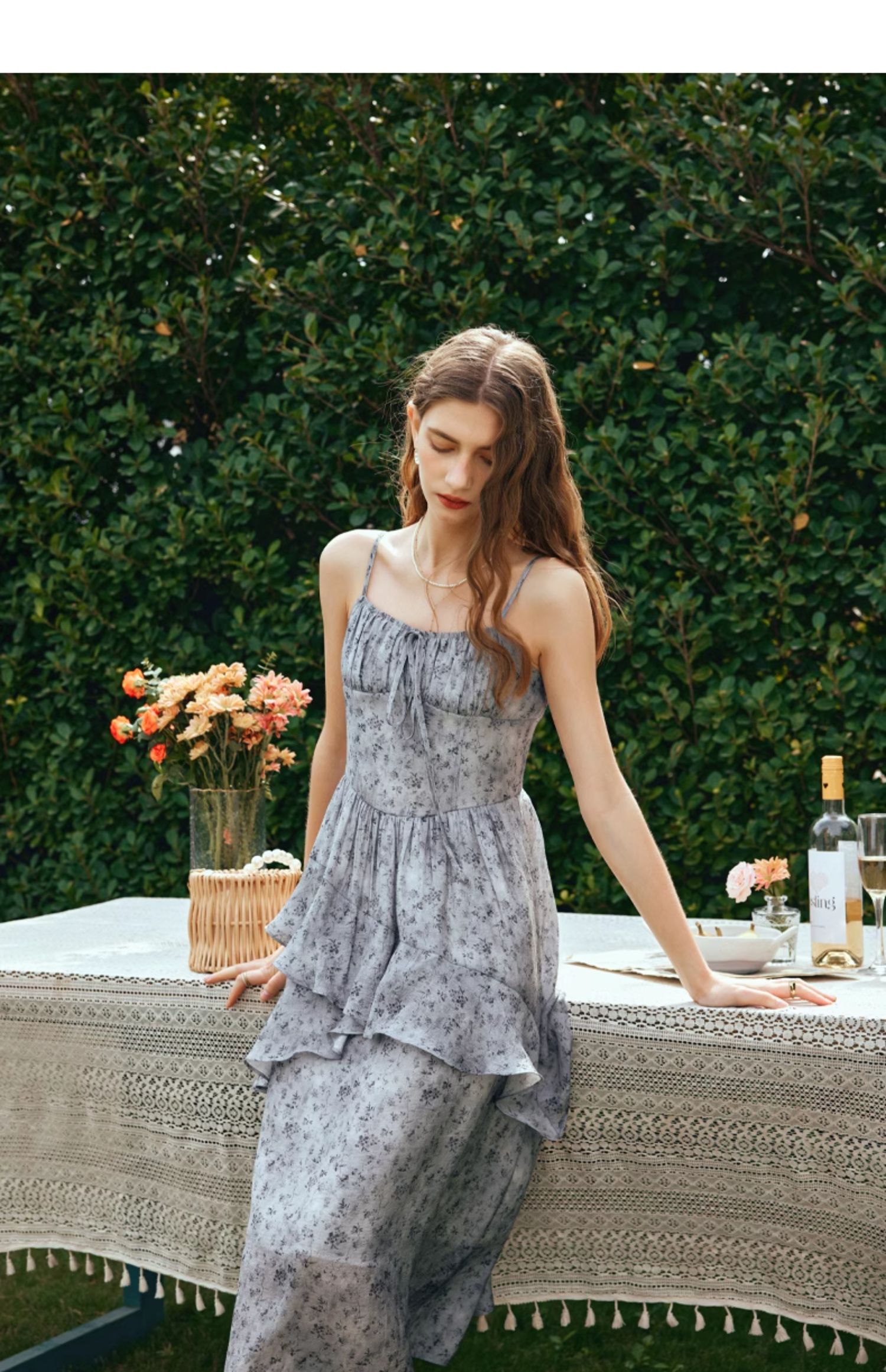 OLrain欧芮儿法式碎花吊带连衣裙女夏季2024年新款拼接荷叶边长裙