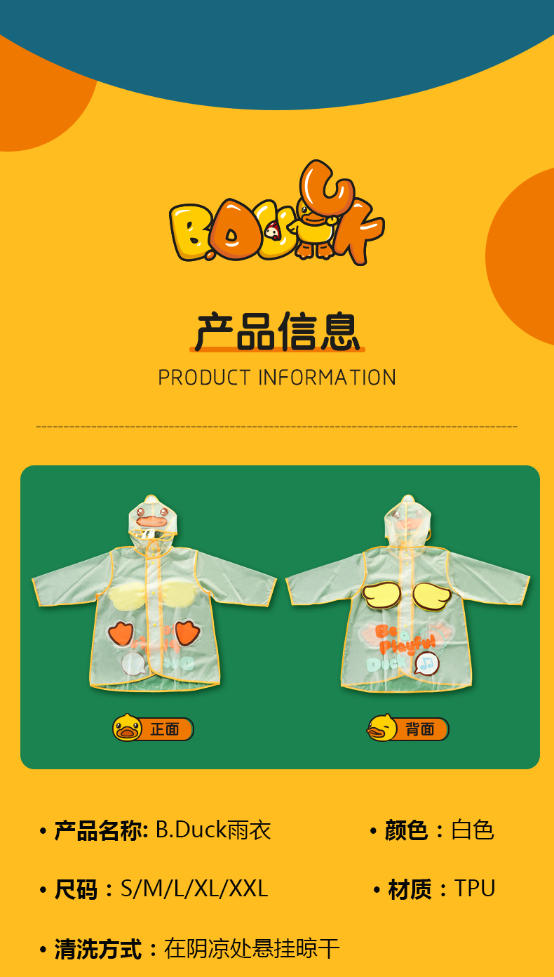 【专柜同款精品】B.Duck儿童雨衣(S-2XL)