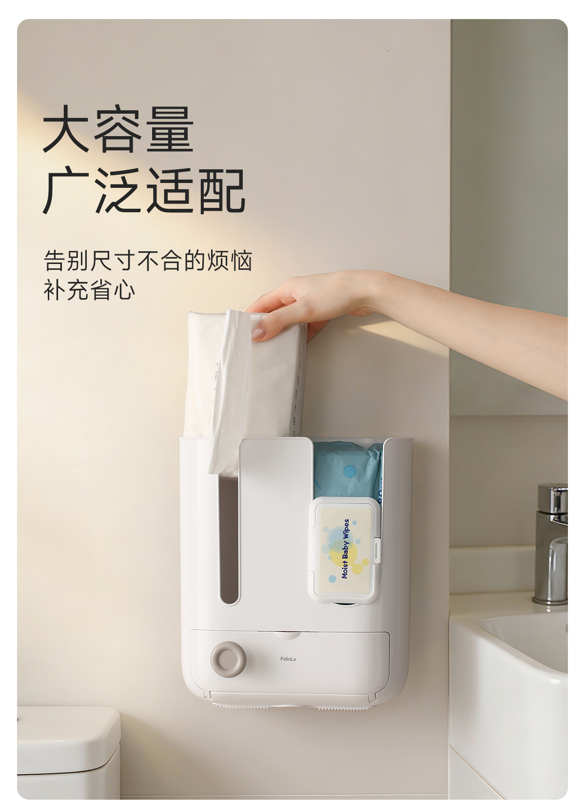 FaSoLa卫生间纸巾盒浴室厕纸置物架壁挂免打孔收纳家用抽纸卷纸筒