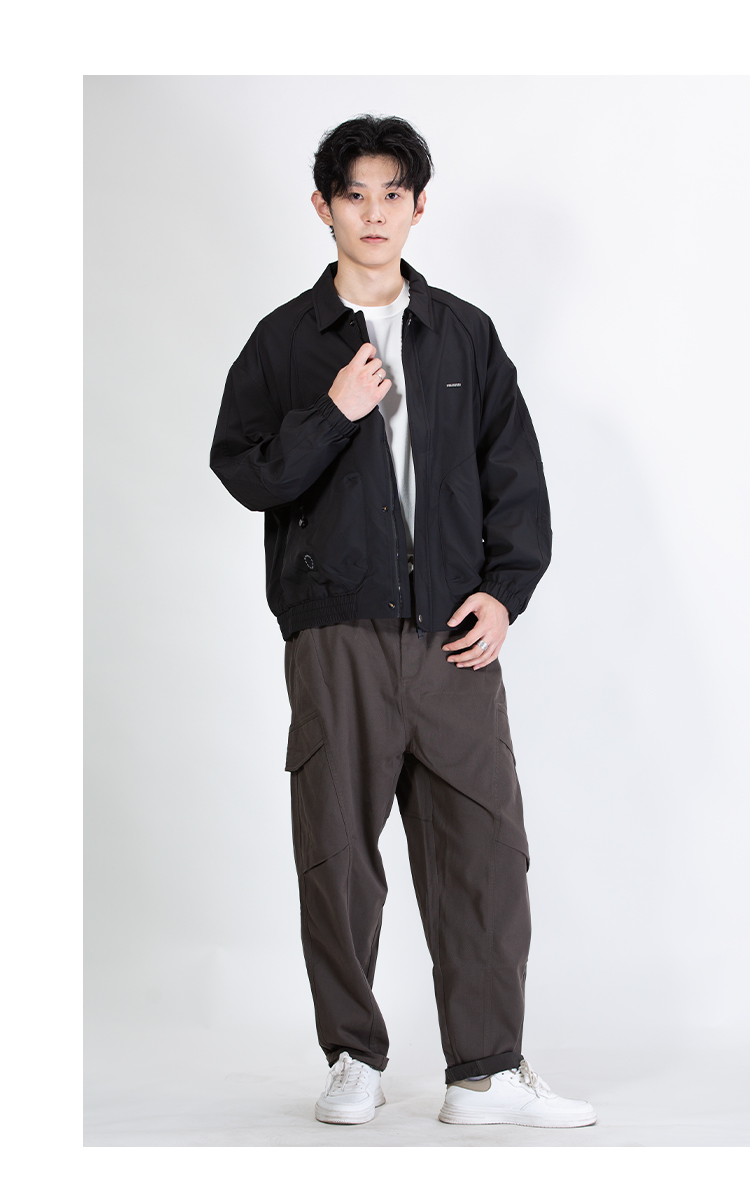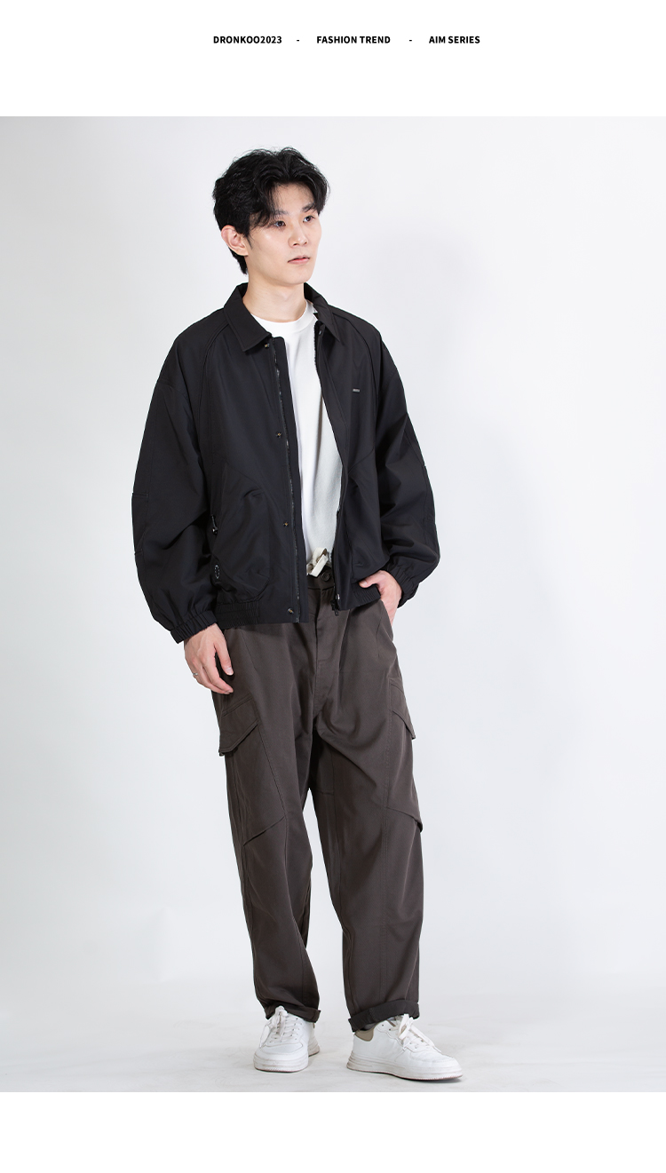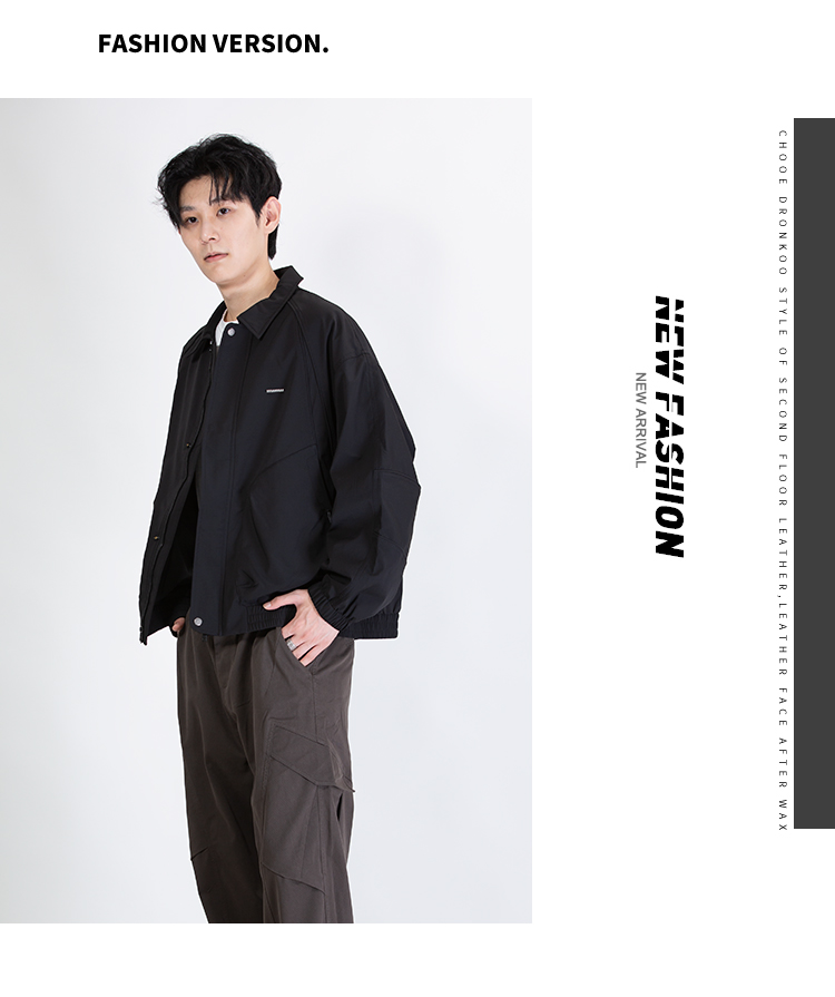 DRONKOO 2025 翻领左金属标口袋弹力绳下摆橡筋微阔中厚夹克