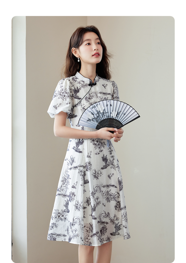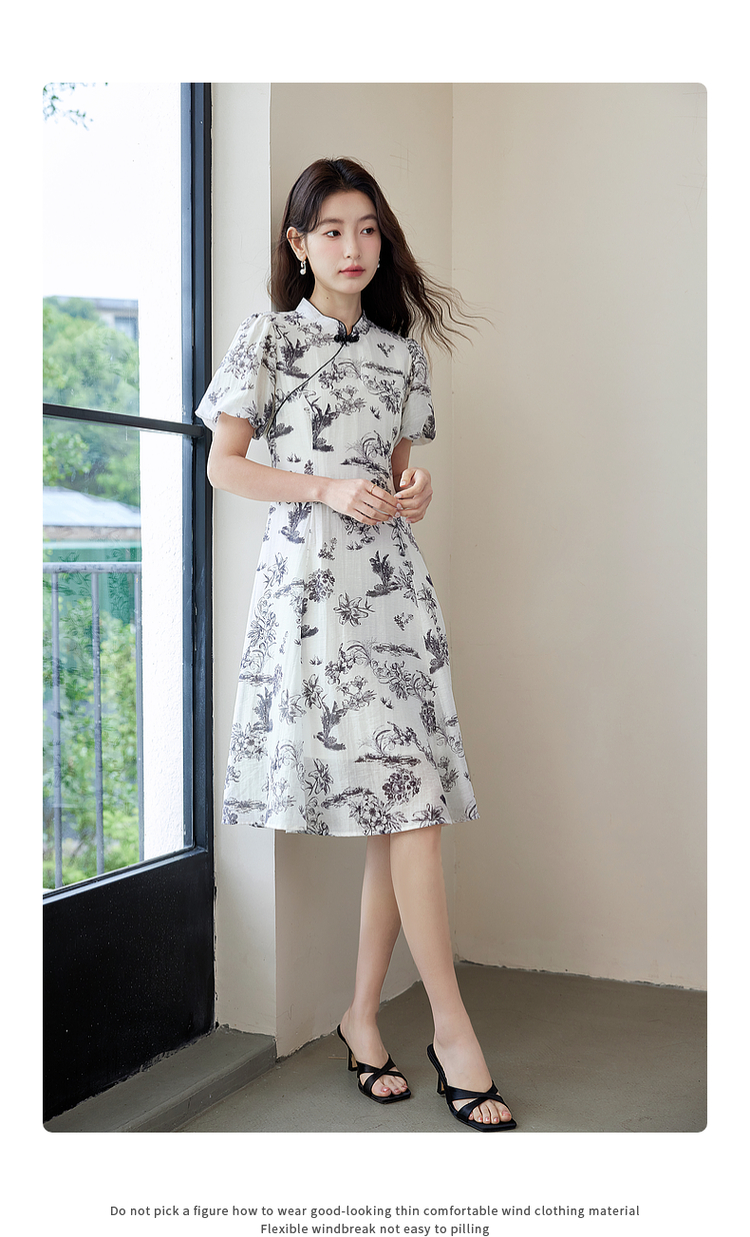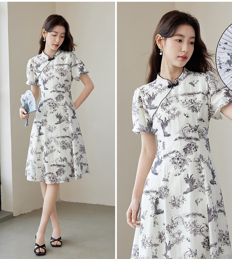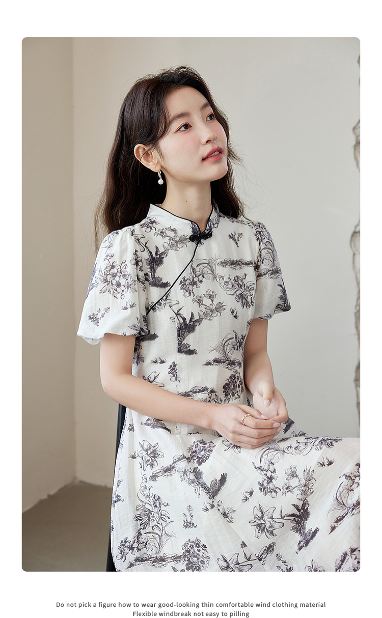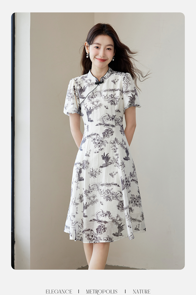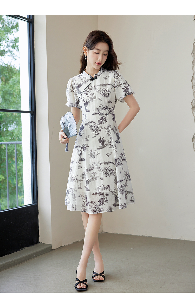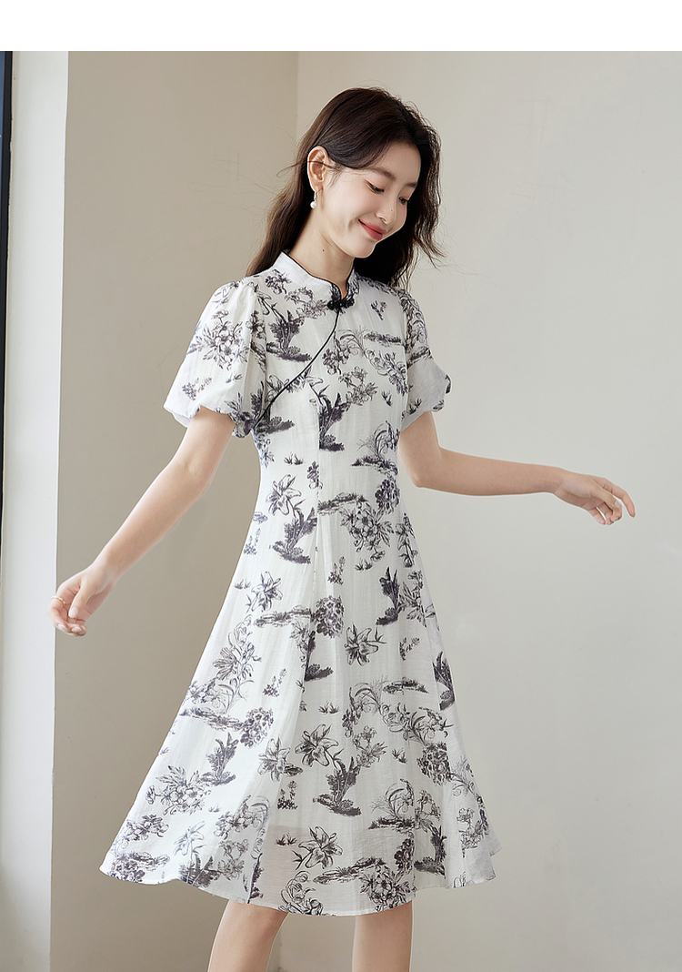 【专属特价】熙世界国风花卉水墨画旗袍裙2025夏季新款气质复古新中式连衣裙