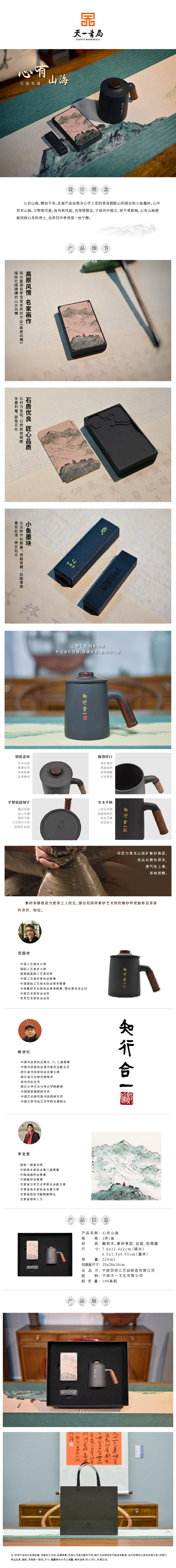 羽诗制造出品 心有山海将军杯宣砚松烟墨块礼盒套装