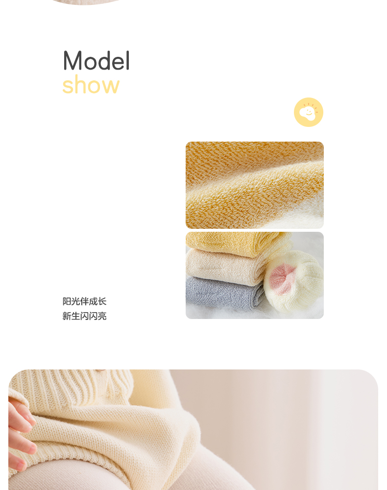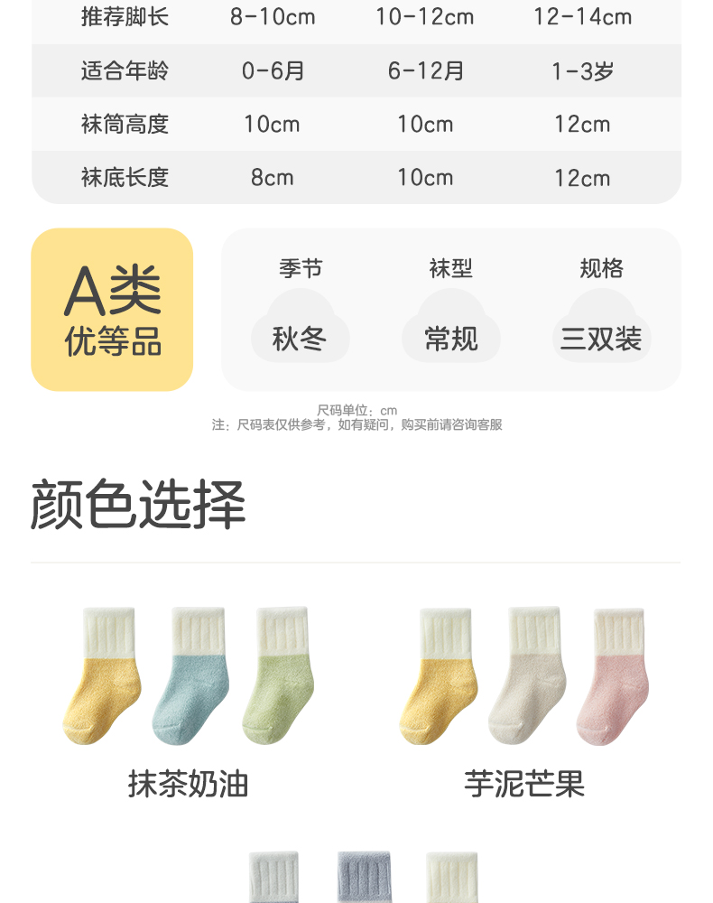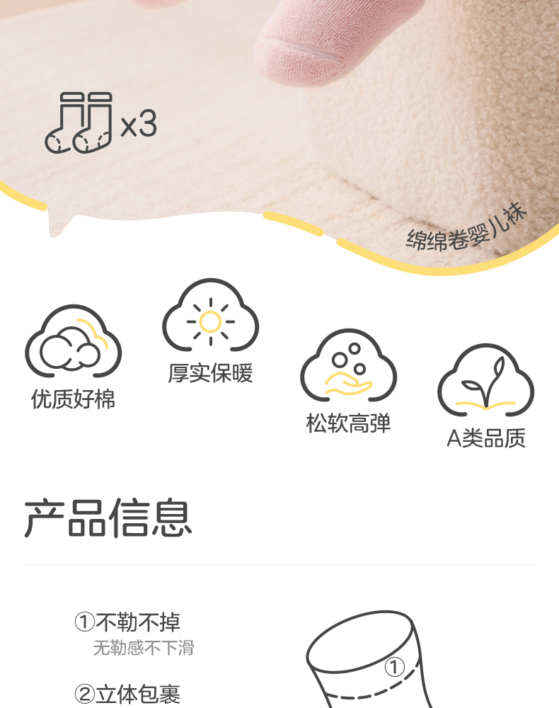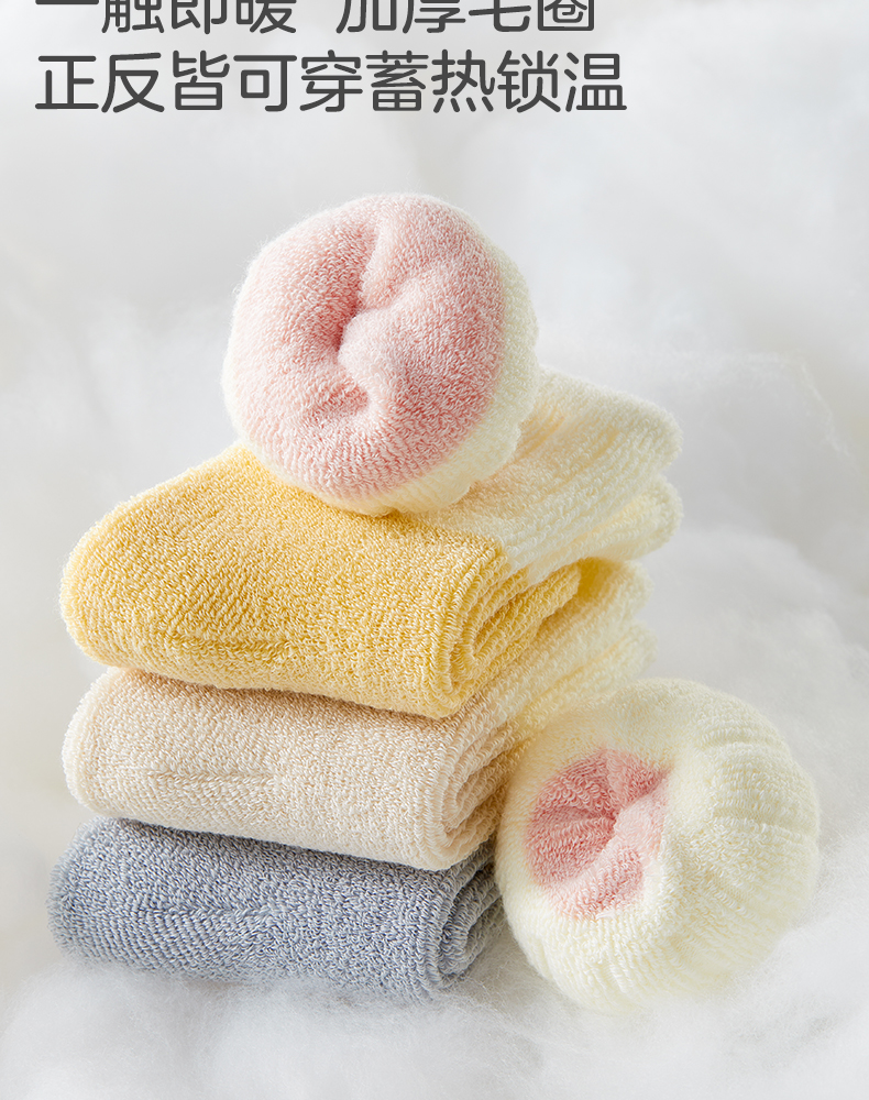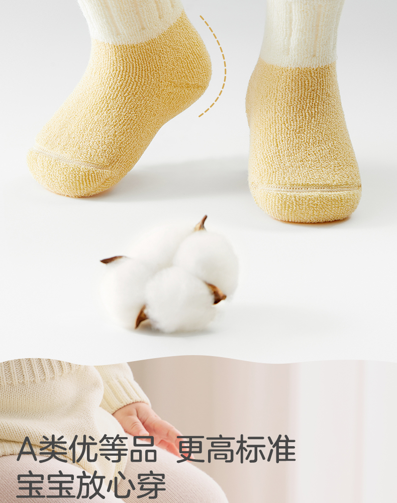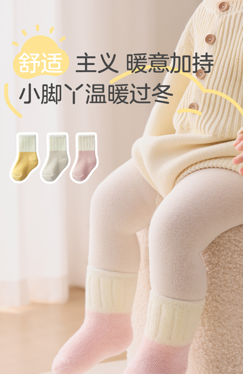 粒粒阳光儿童袜子纯棉宝宝新生秋冬中筒袜加厚保暖婴儿袜