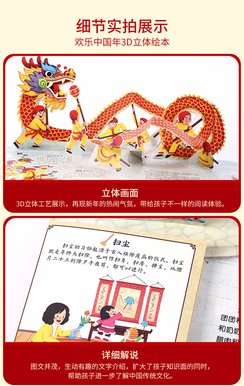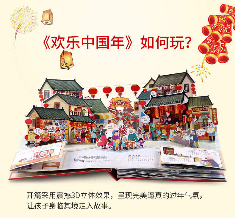 穿越古代过春节 过年啦 过大年 3d立体书 小活字·大春联 非遗手工 春节绘本 0-3-6岁儿童新年礼物马年场景翻翻书 互动机关体验年俗文化中国传统节日故事图画书
