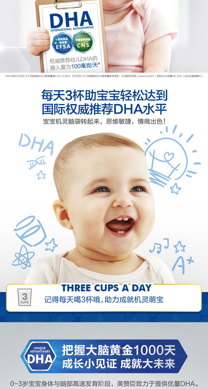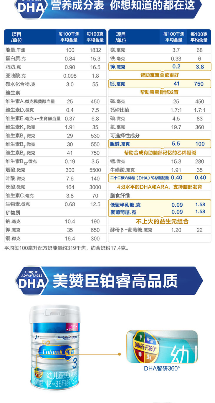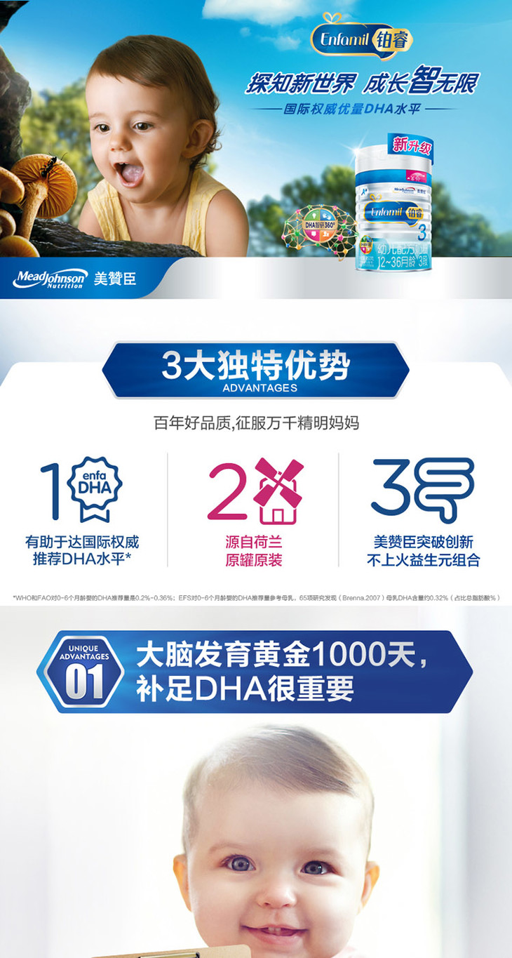 美赞臣铂睿幼儿配方奶粉(12-36月龄.3段)850克罐6罐装