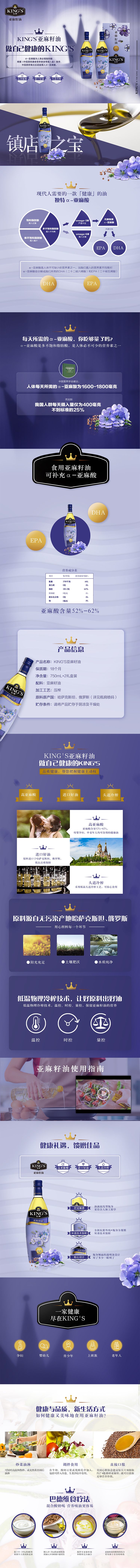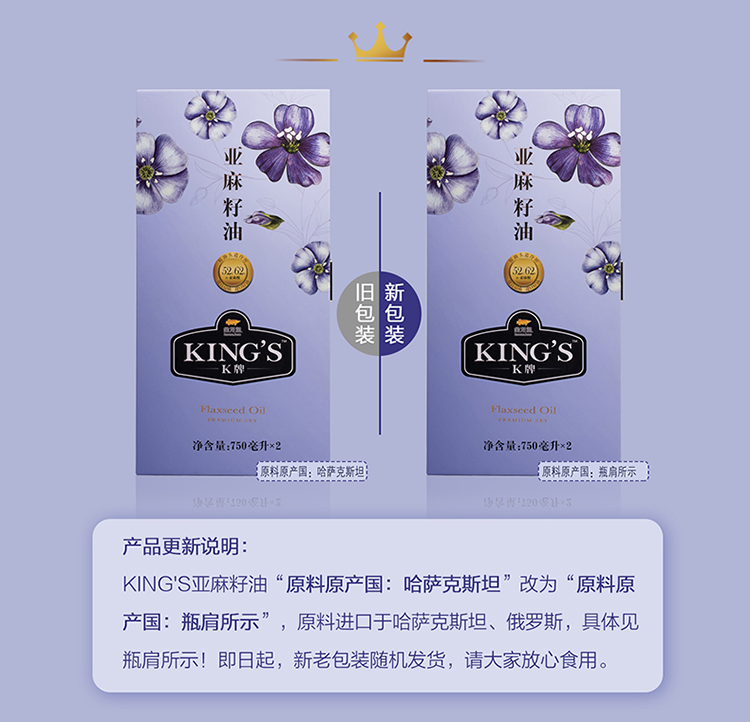 【疫情管控地区停发】金龙鱼King's 亚麻籽油(简装礼盒)750ML*2瓶