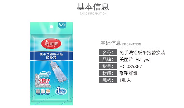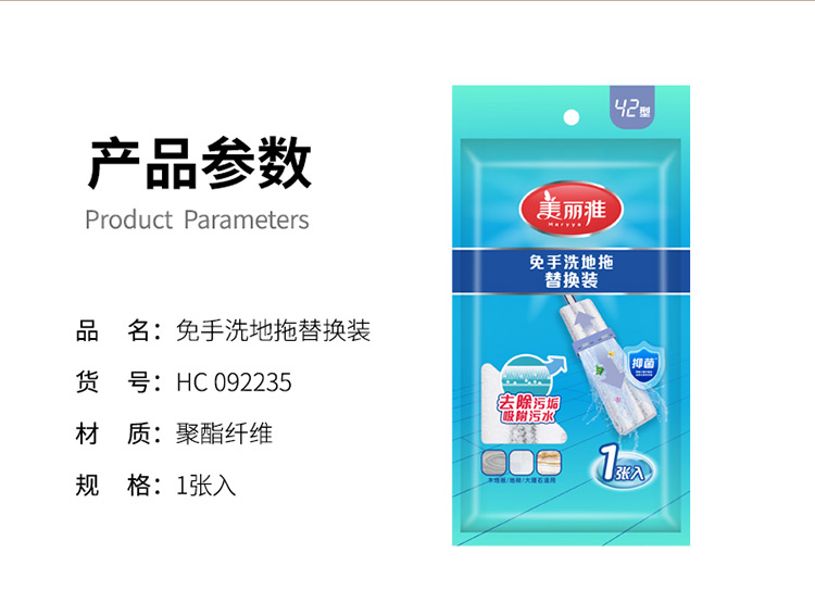 【平板拖备件】美丽雅平板拖把替换布备件免手洗推水平板拖把墩布38型42型