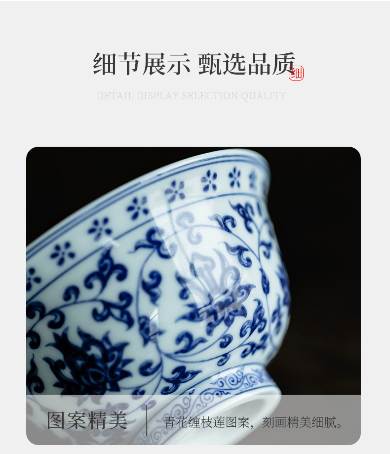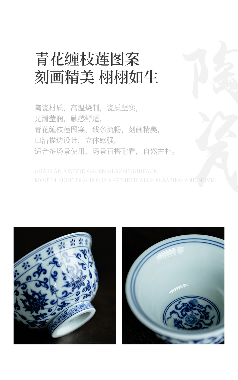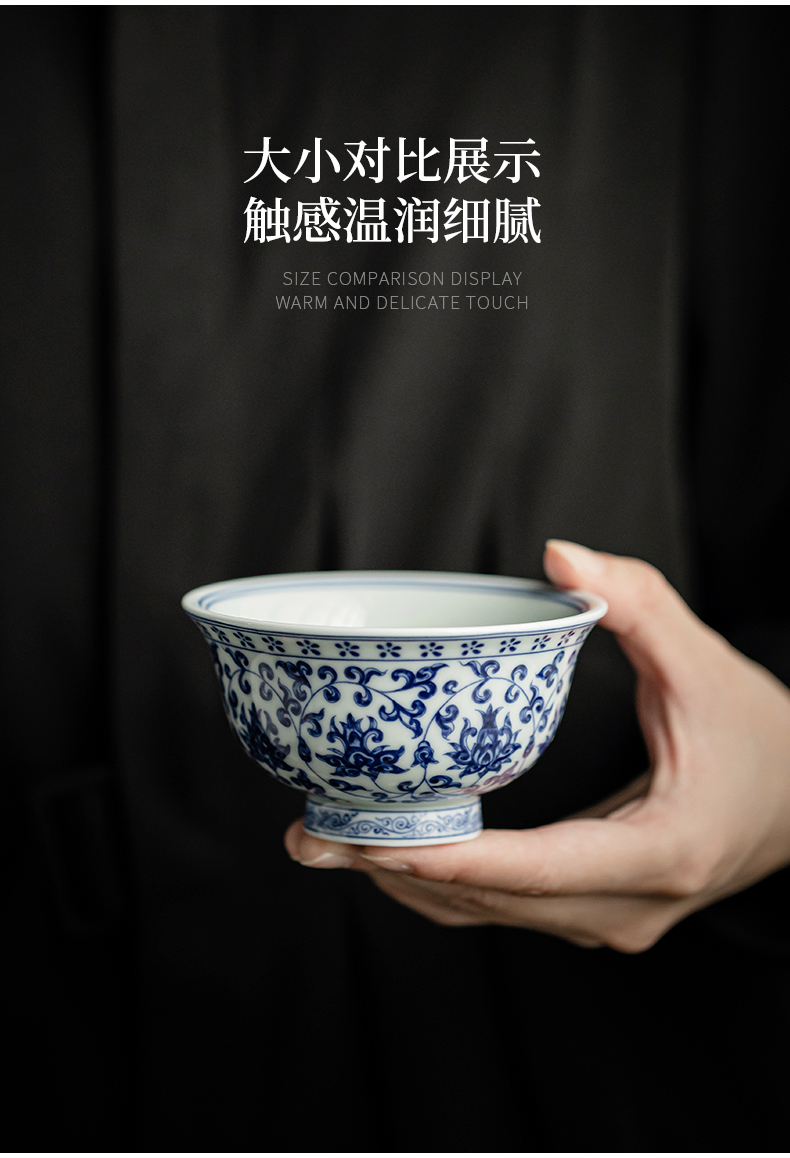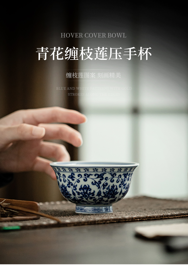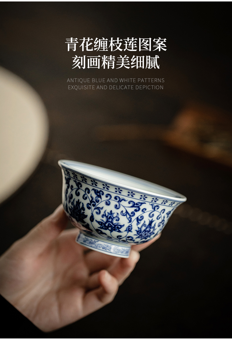 永乐缠枝莲小压手杯/青花陶瓷主人杯品茗杯中式水杯男女泡茶茶具