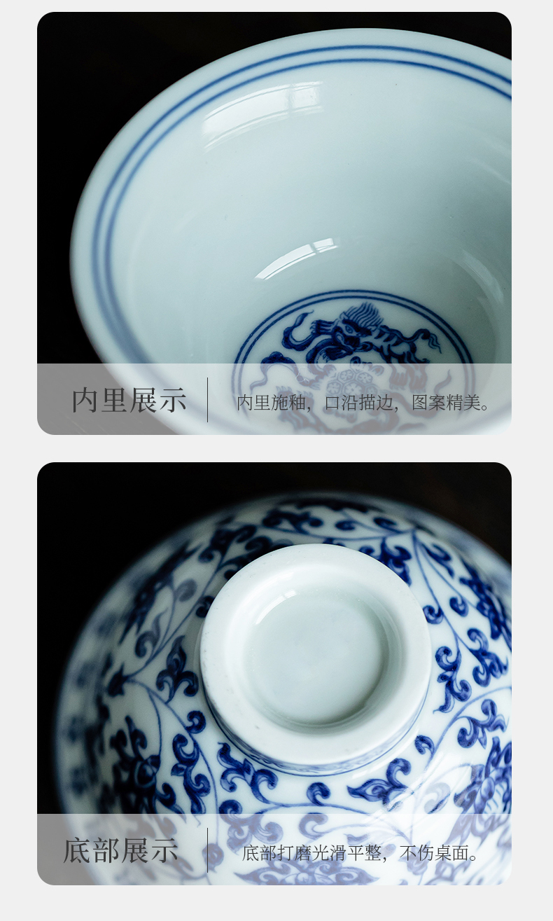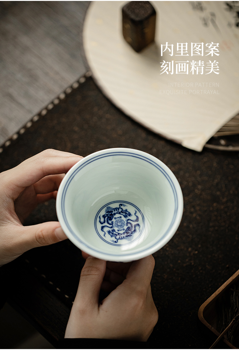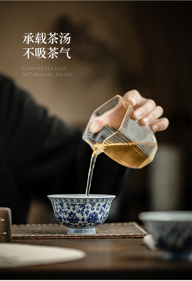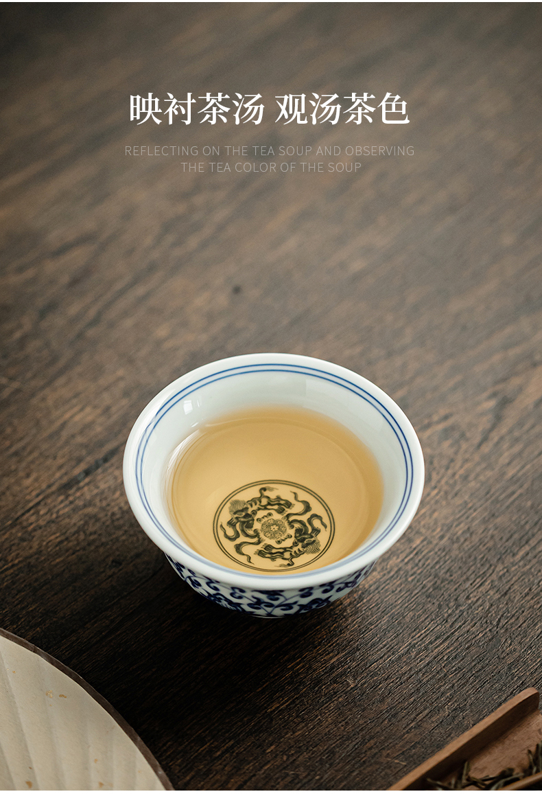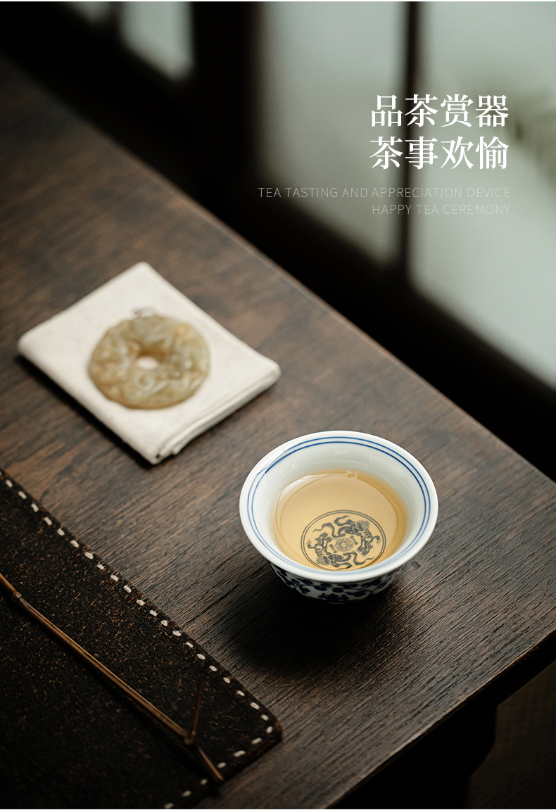 永乐缠枝莲小压手杯/青花陶瓷主人杯品茗杯中式水杯男女泡茶茶具