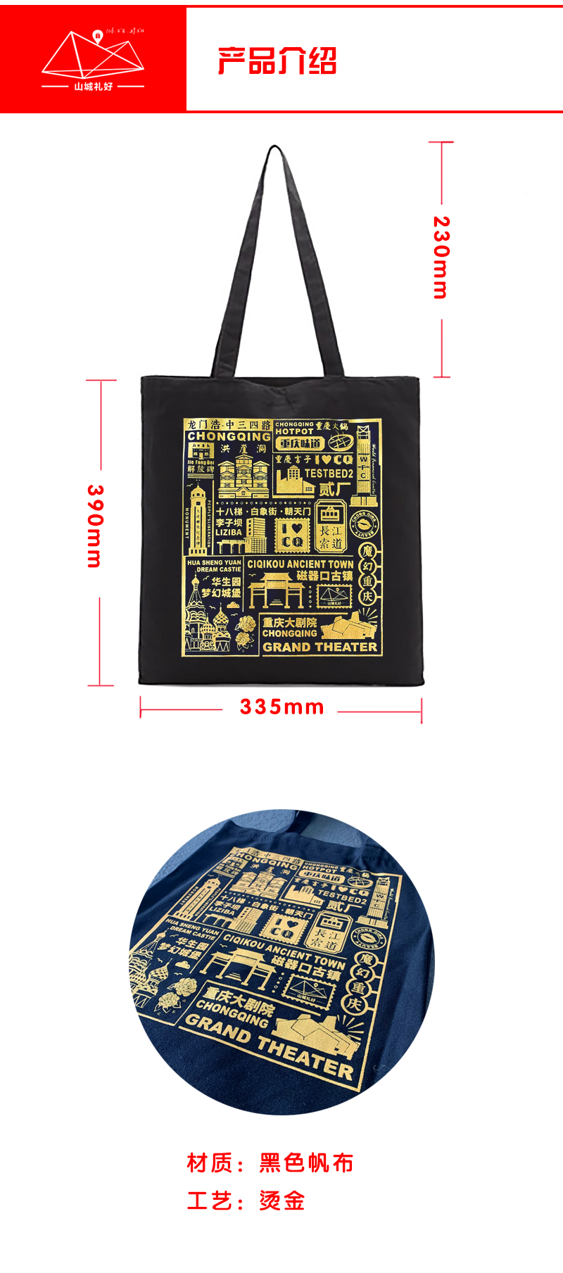 山城礼好烫金帆布袋/创意包/重庆原创伴手礼/旅游纪念品
